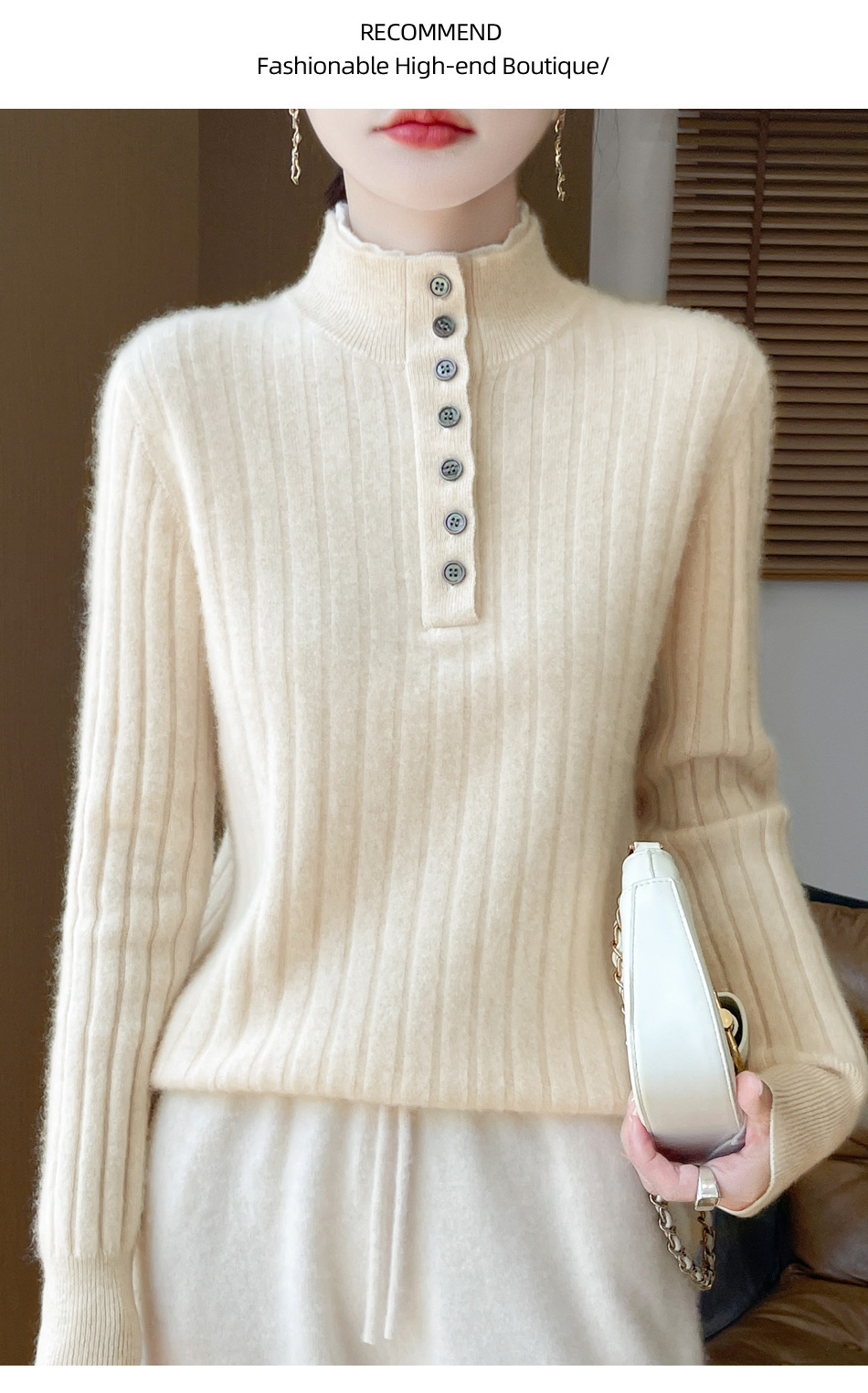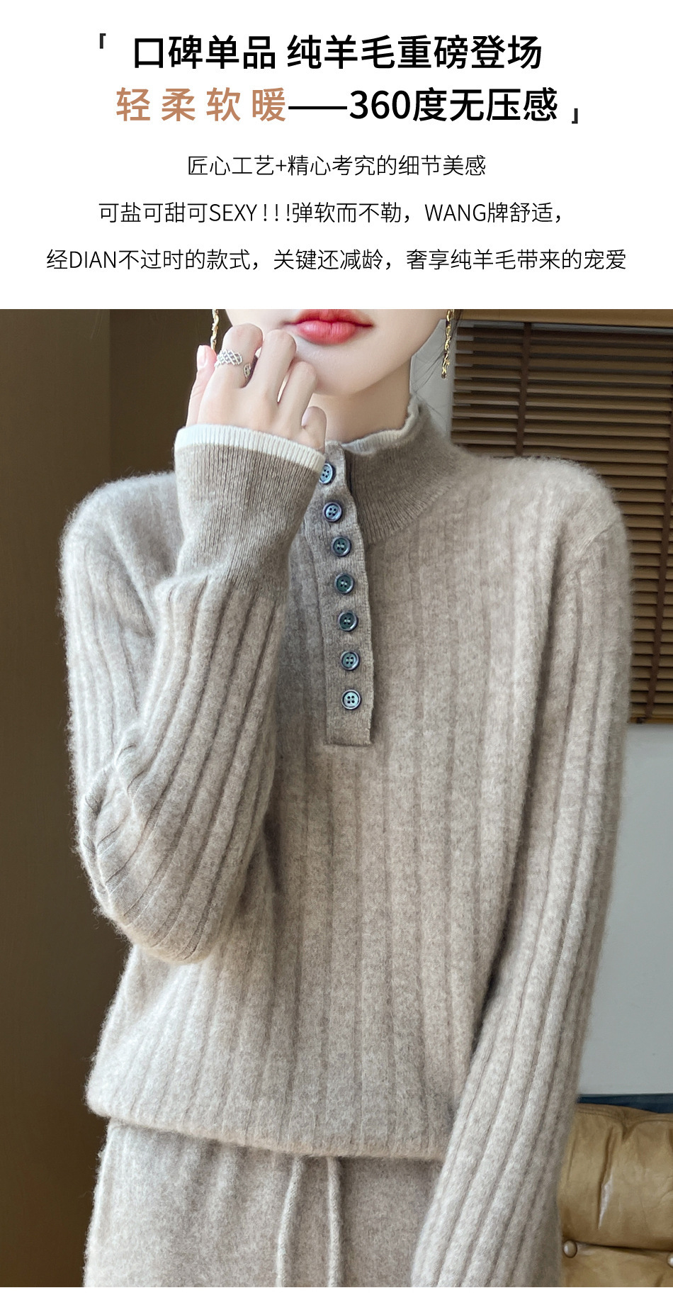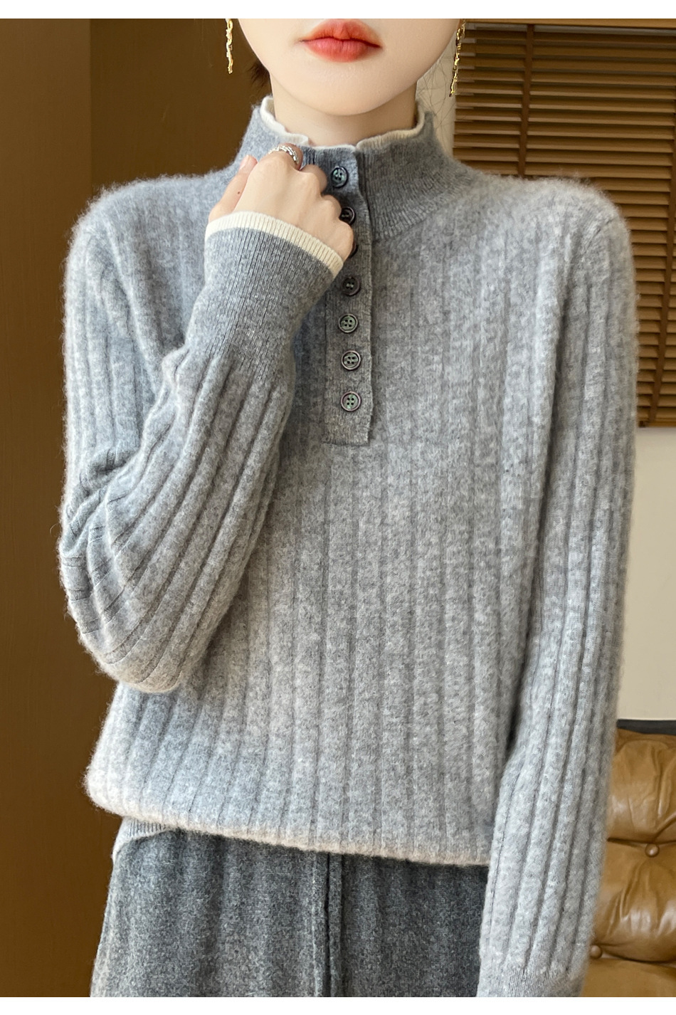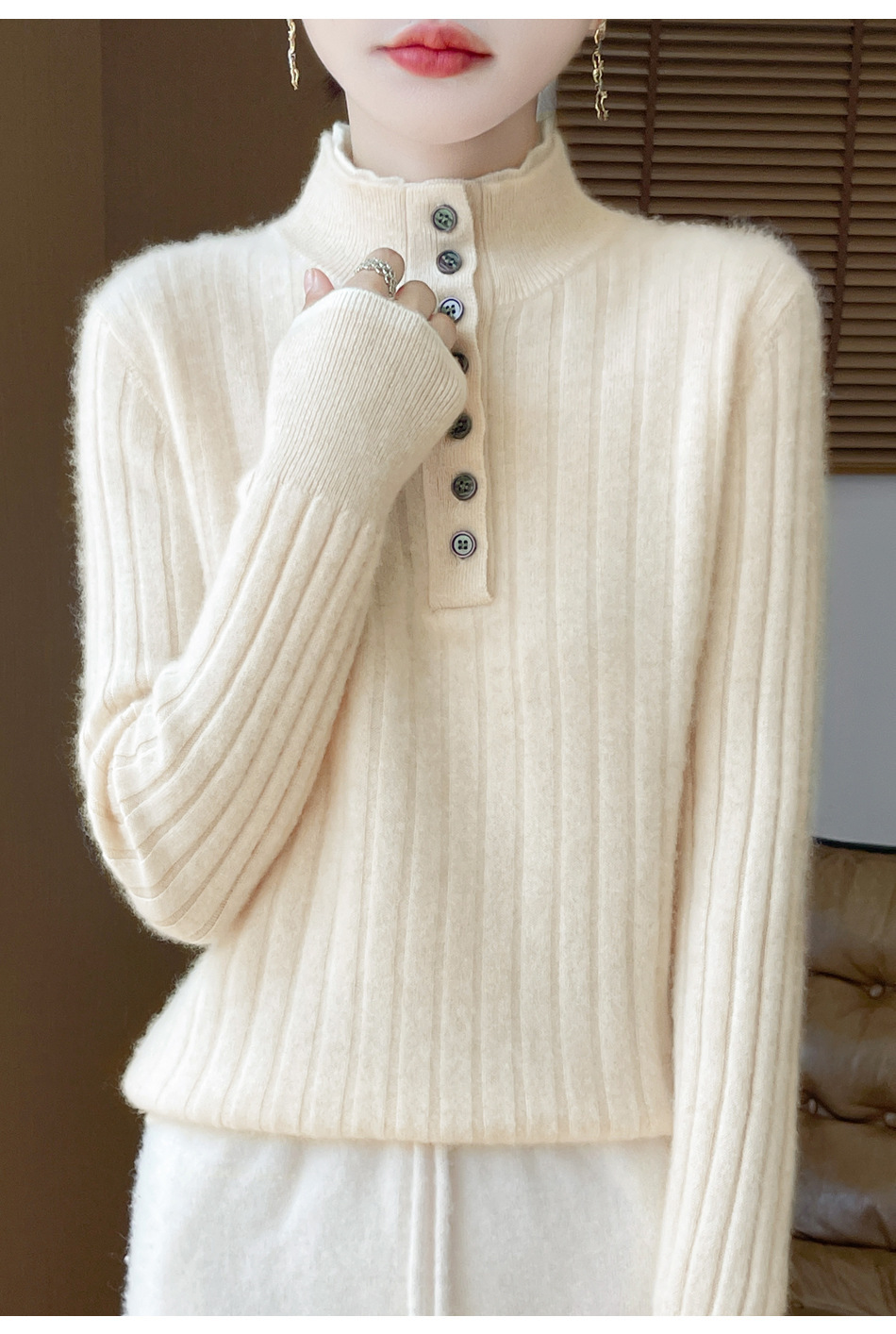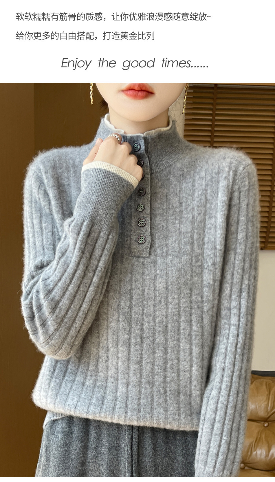 丁摩 秋冬新款羊毛衫女双层半开立领套头内搭坑条上衣针织打底衫5ZF-46656