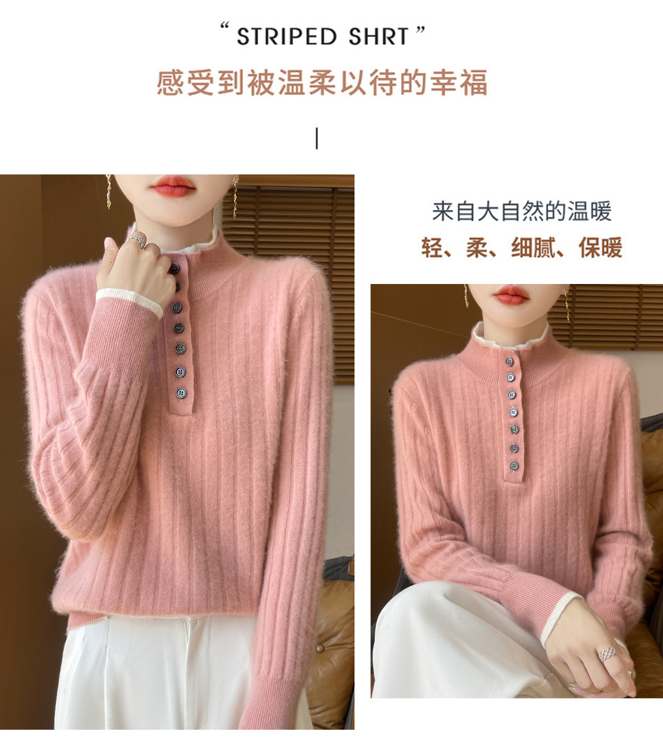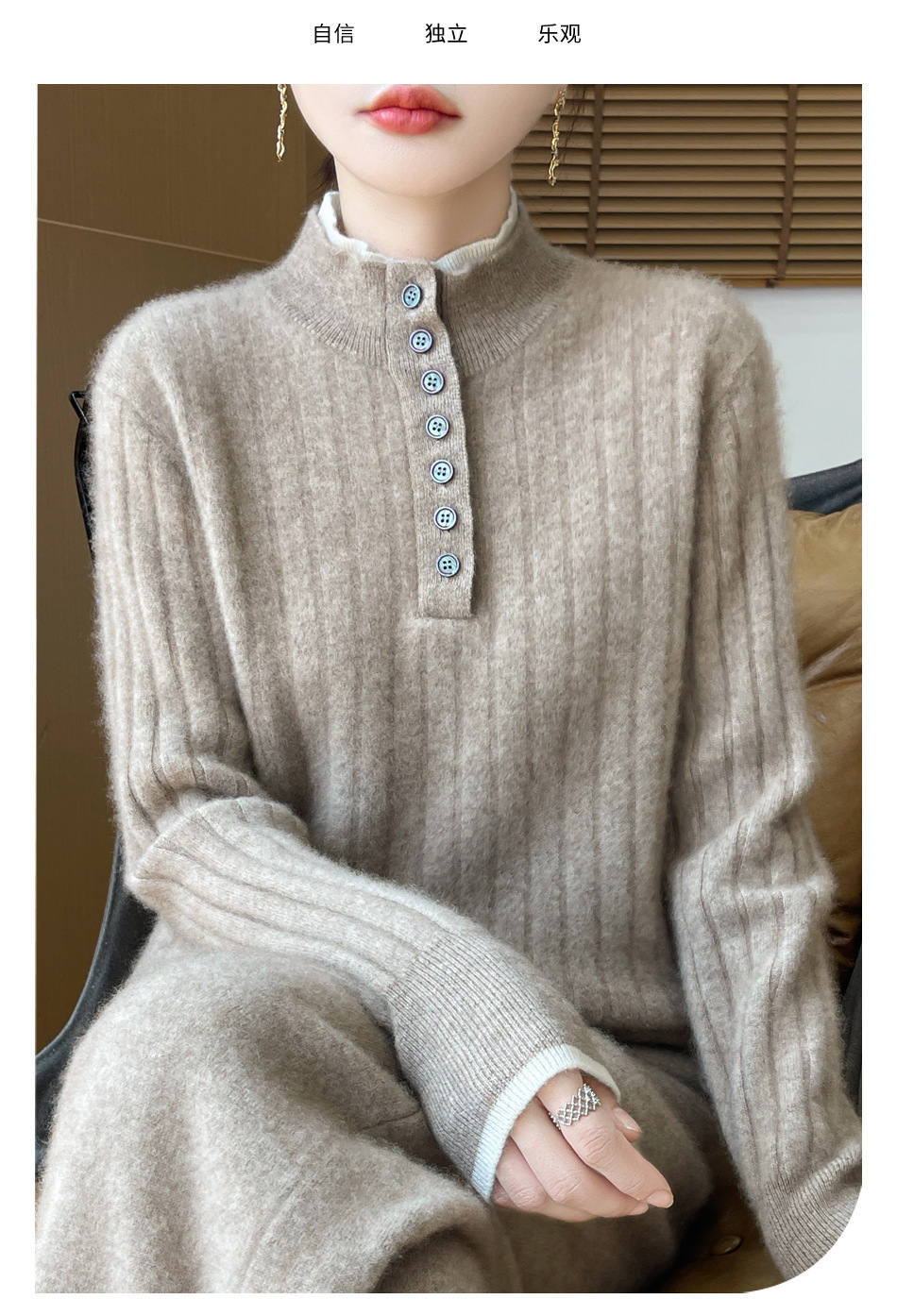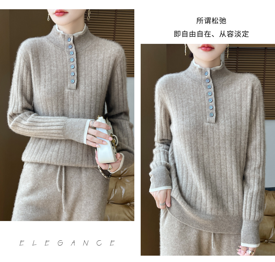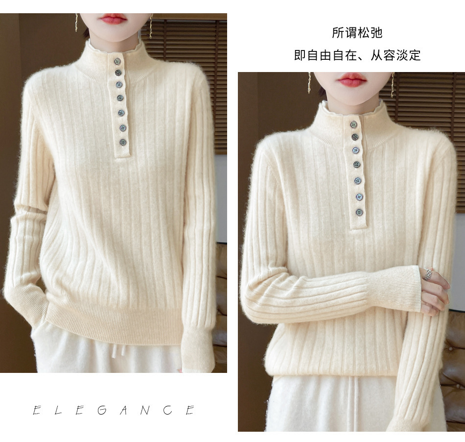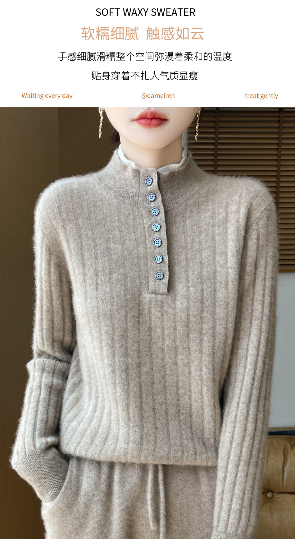丁摩 秋冬新款羊毛衫女双层半开立领套头内搭坑条上衣针织打底衫5ZF-46656