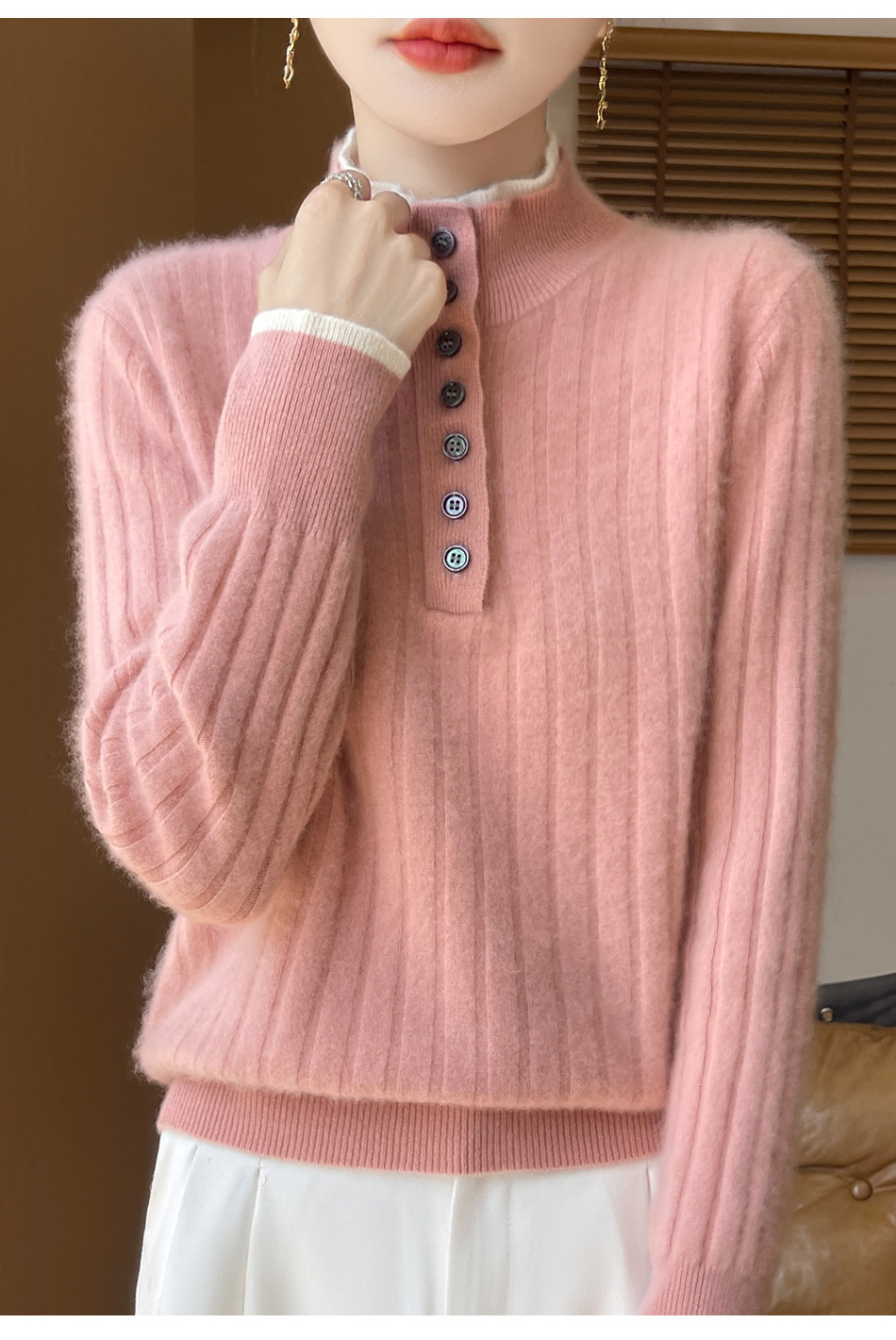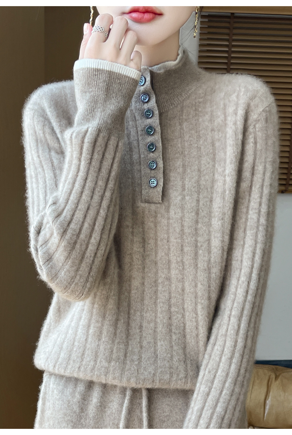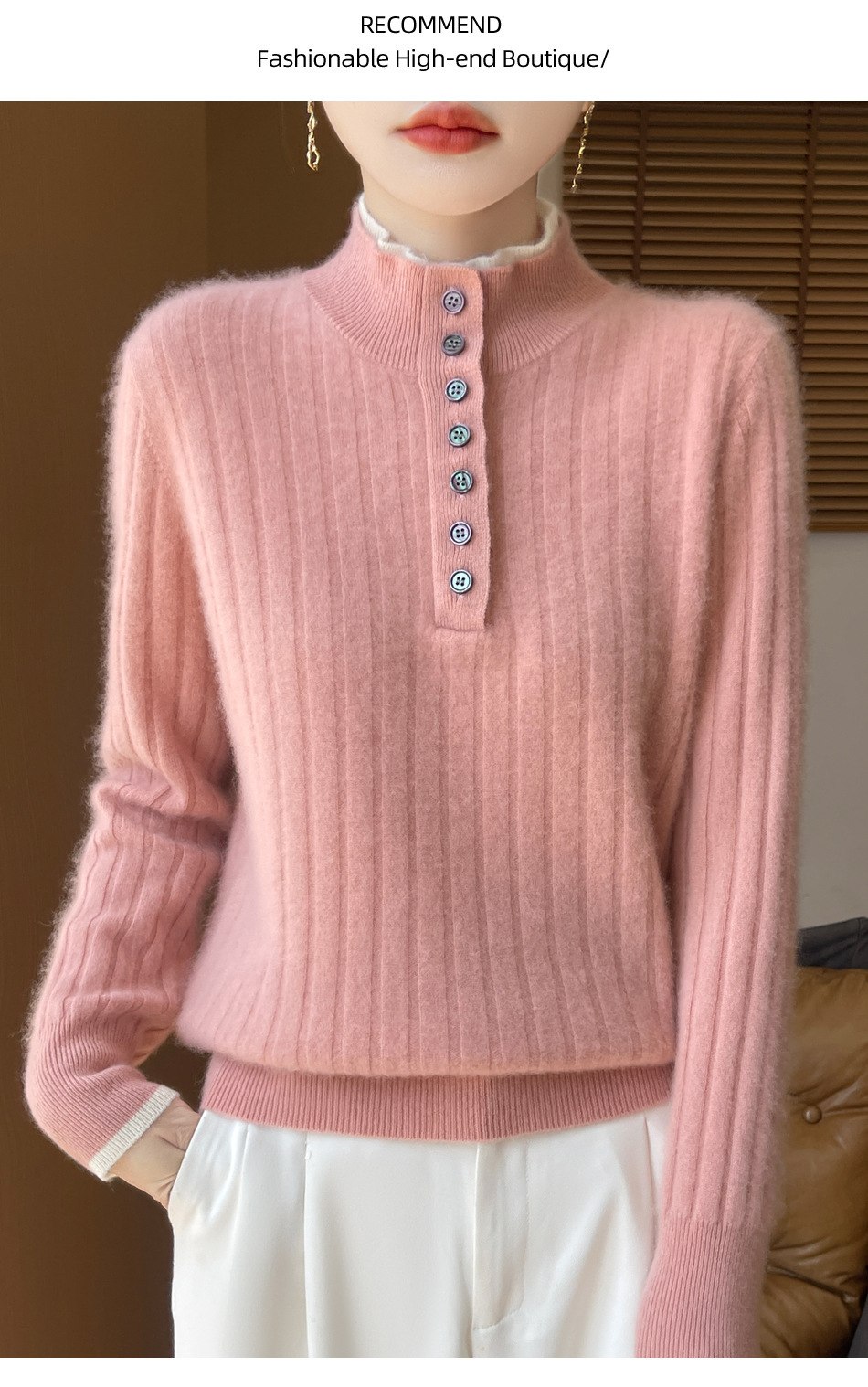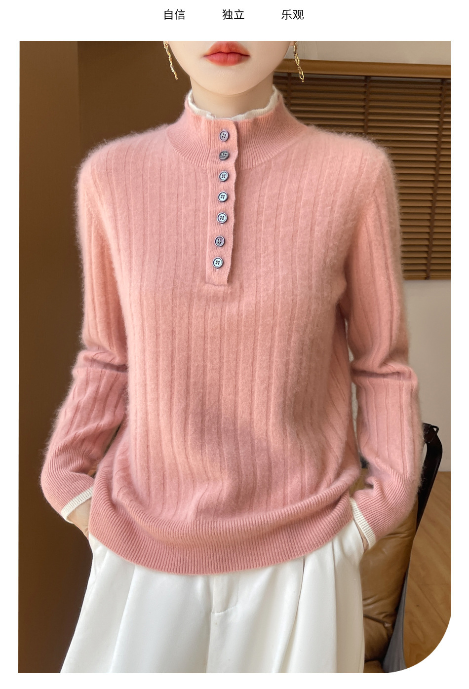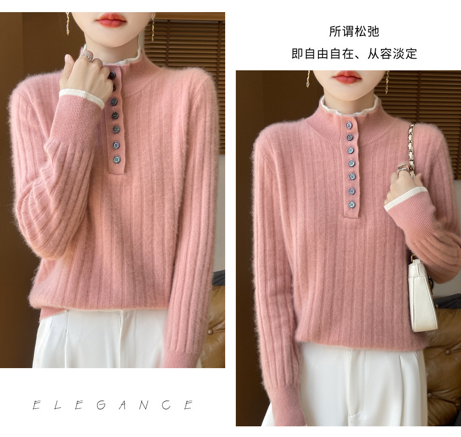丁摩 秋冬新款羊毛衫女双层半开立领套头内搭坑条上衣针织打底衫5ZF-46656