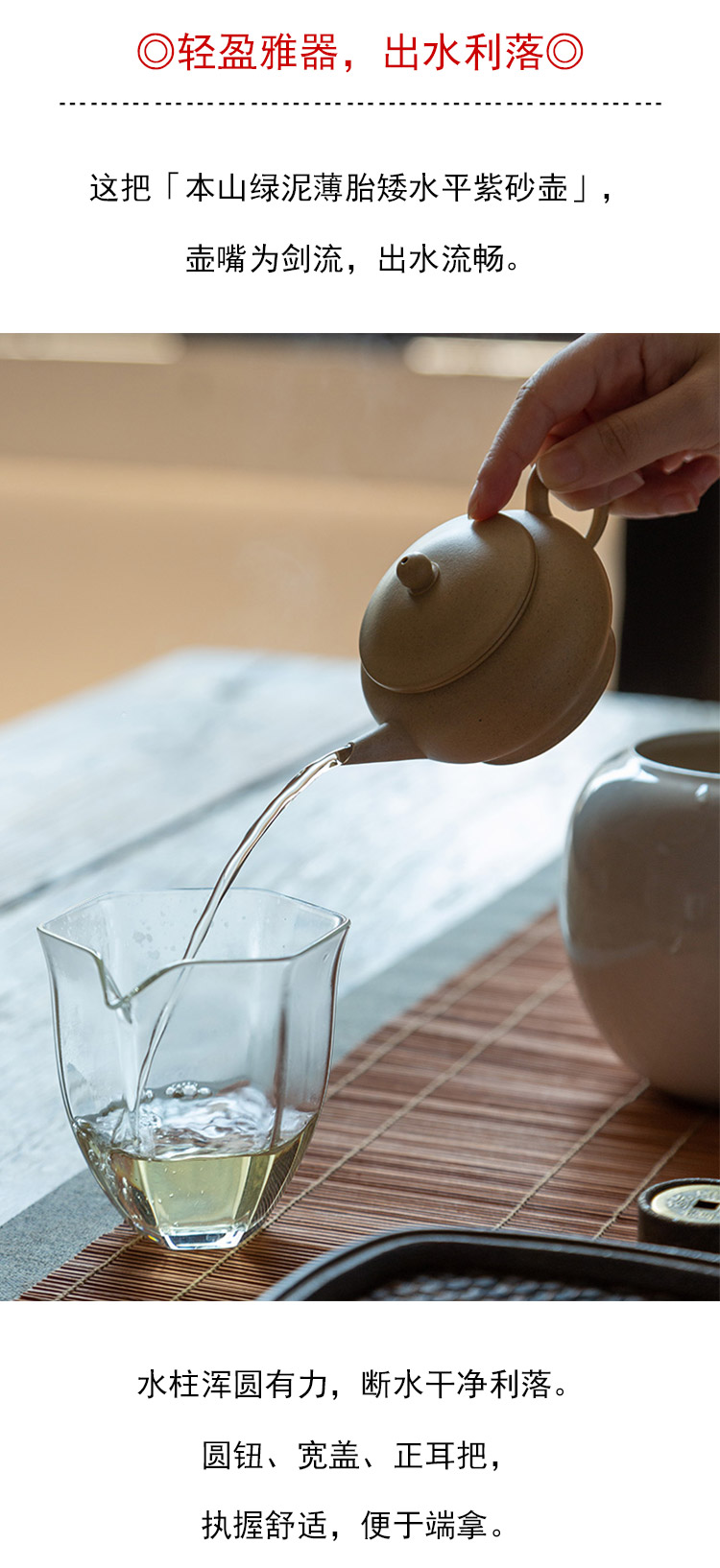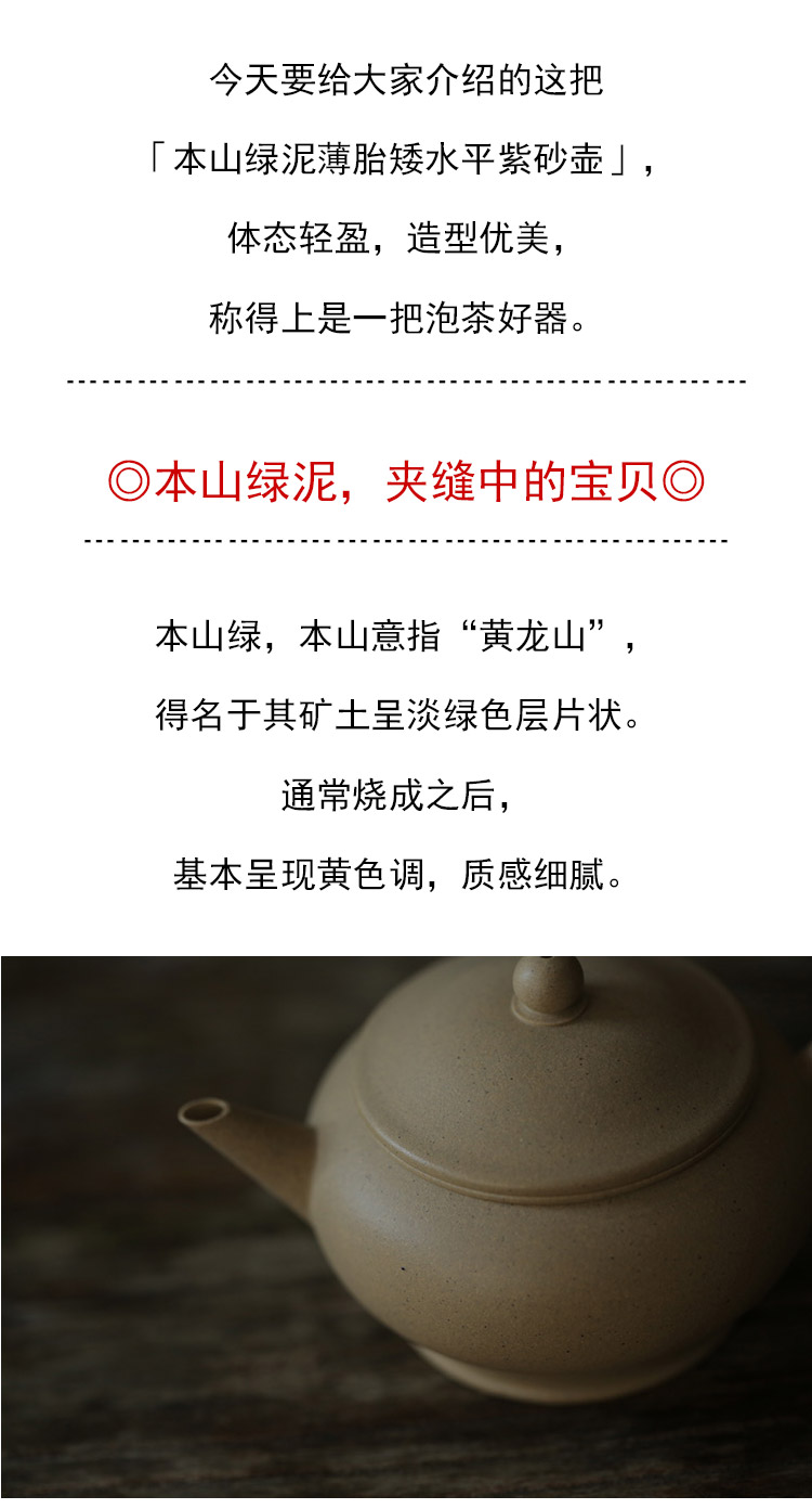 茶香记 本山绿泥薄胎矮水平紫砂壶 本山绿泥 轻薄方便 出水利落