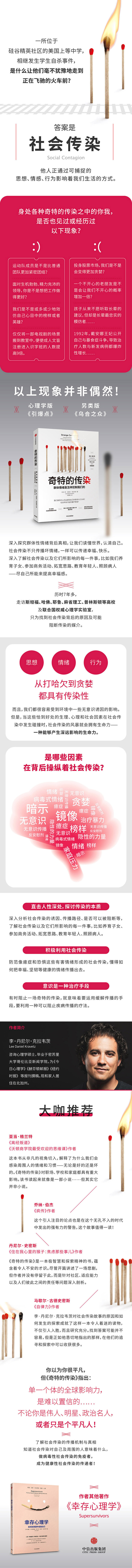 《奇特的传染》是我读过的关于社会传染的更好、更引人入胜的书,也是每一位想要有益思想和行为、减少有害思想和行为传播的家长、教师、领导和决策者的不二之选。