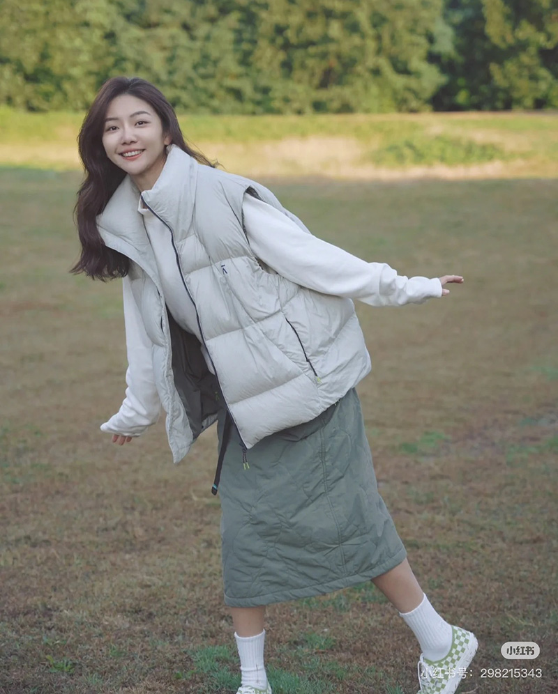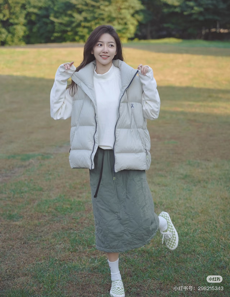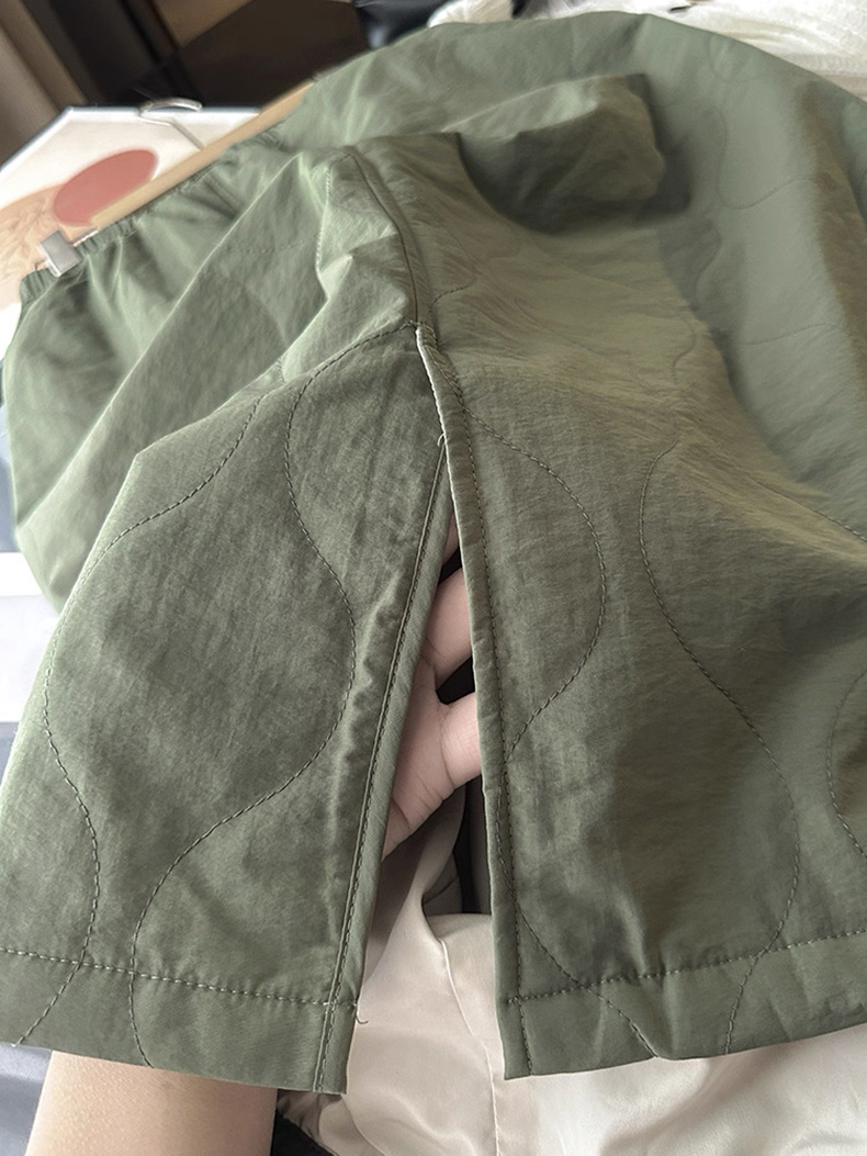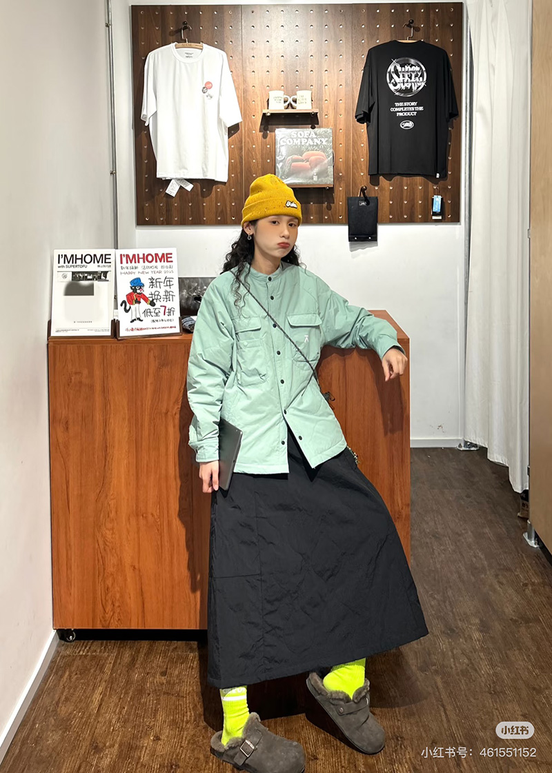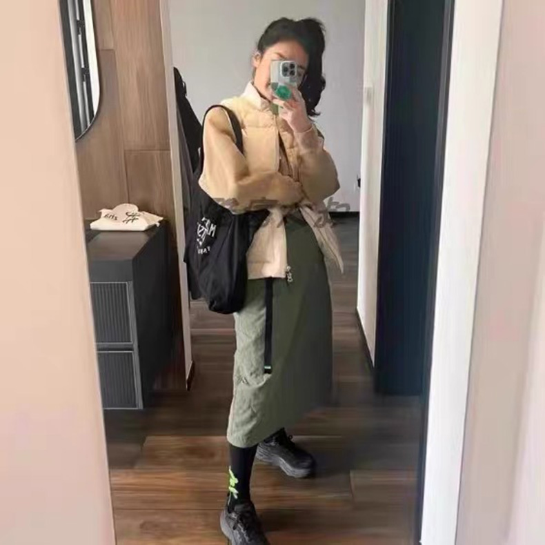 设计本身就带有松弛感,一体式腰部织带调节,方便穿脱,A字版后开叉更加的时髦有范!