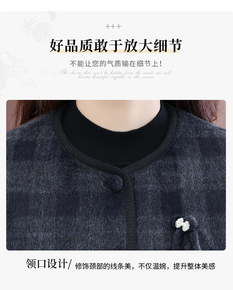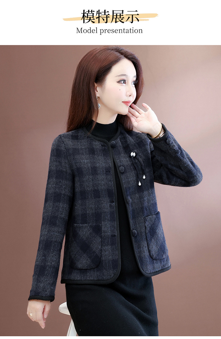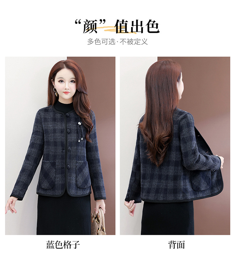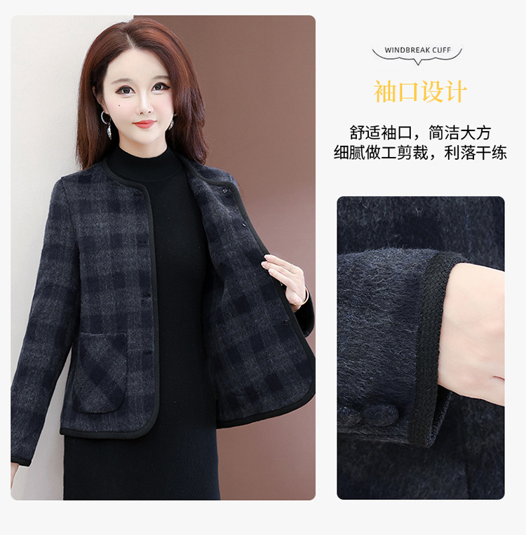 QYM 25ZB923-Y双面毛呢短款外套复古格子呢子大衣 商品图4