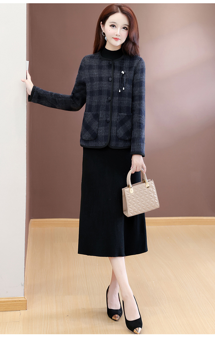 QYM 25ZB923-Y双面毛呢短款外套复古格子呢子大衣 商品图3