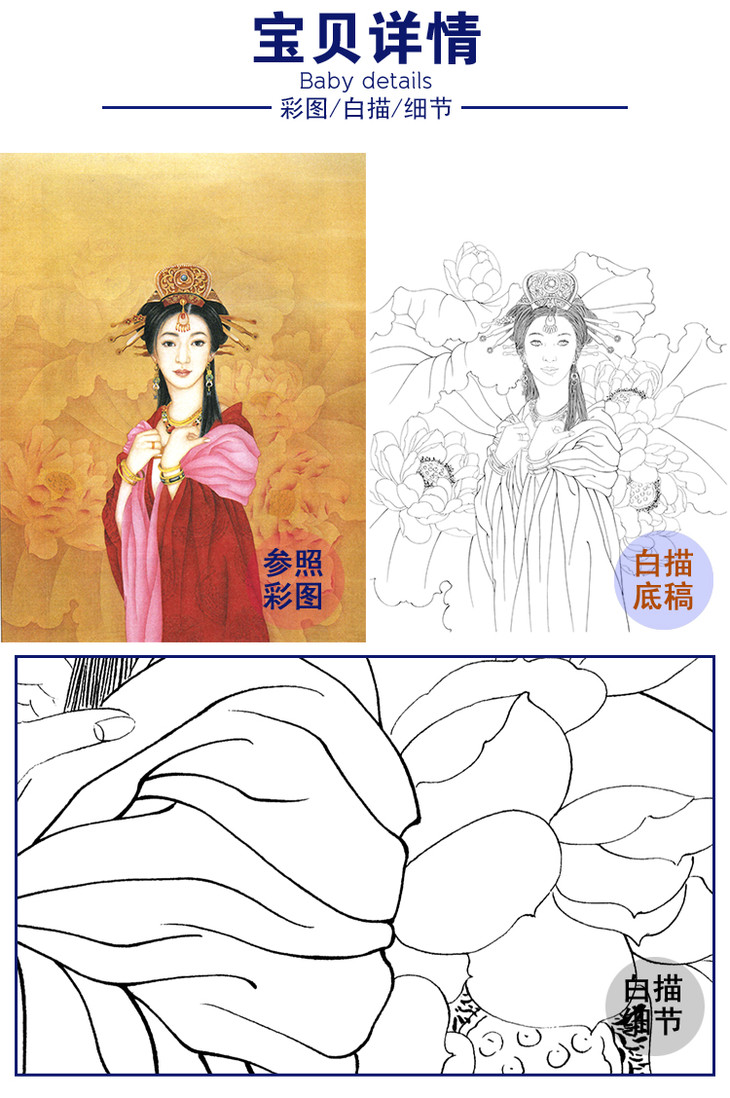 【有步骤、大彩图】李晓明竖幅工笔花鸟画白描底稿《牡丹鹦鹉图》多种白描尺寸可选KG16