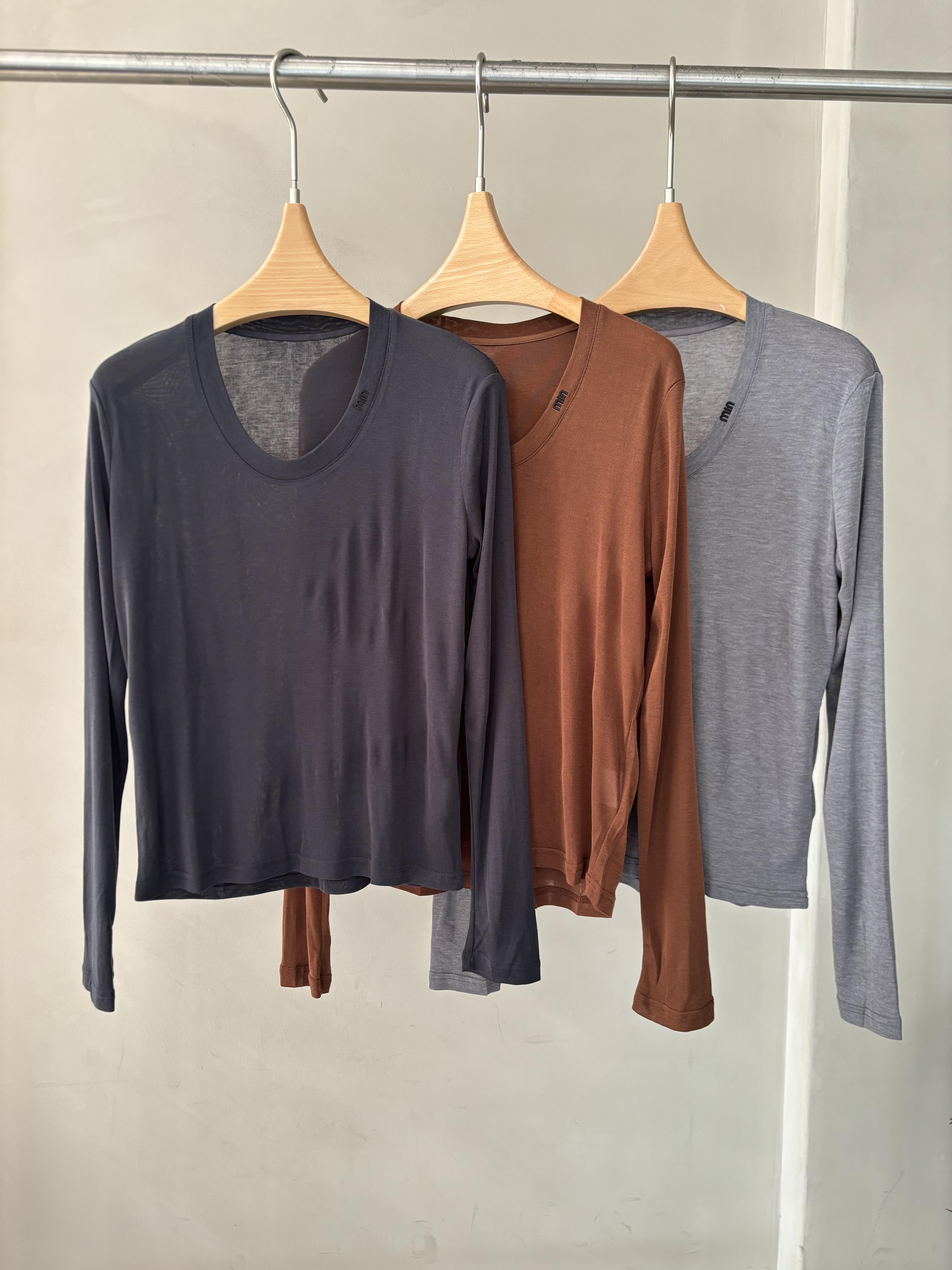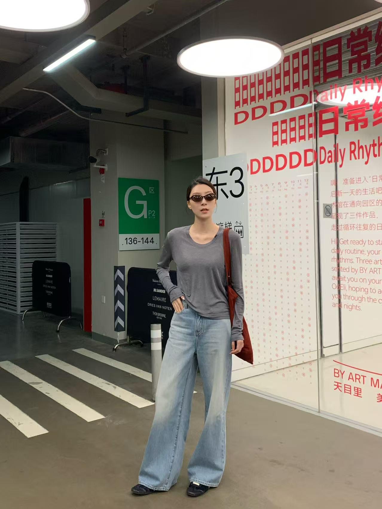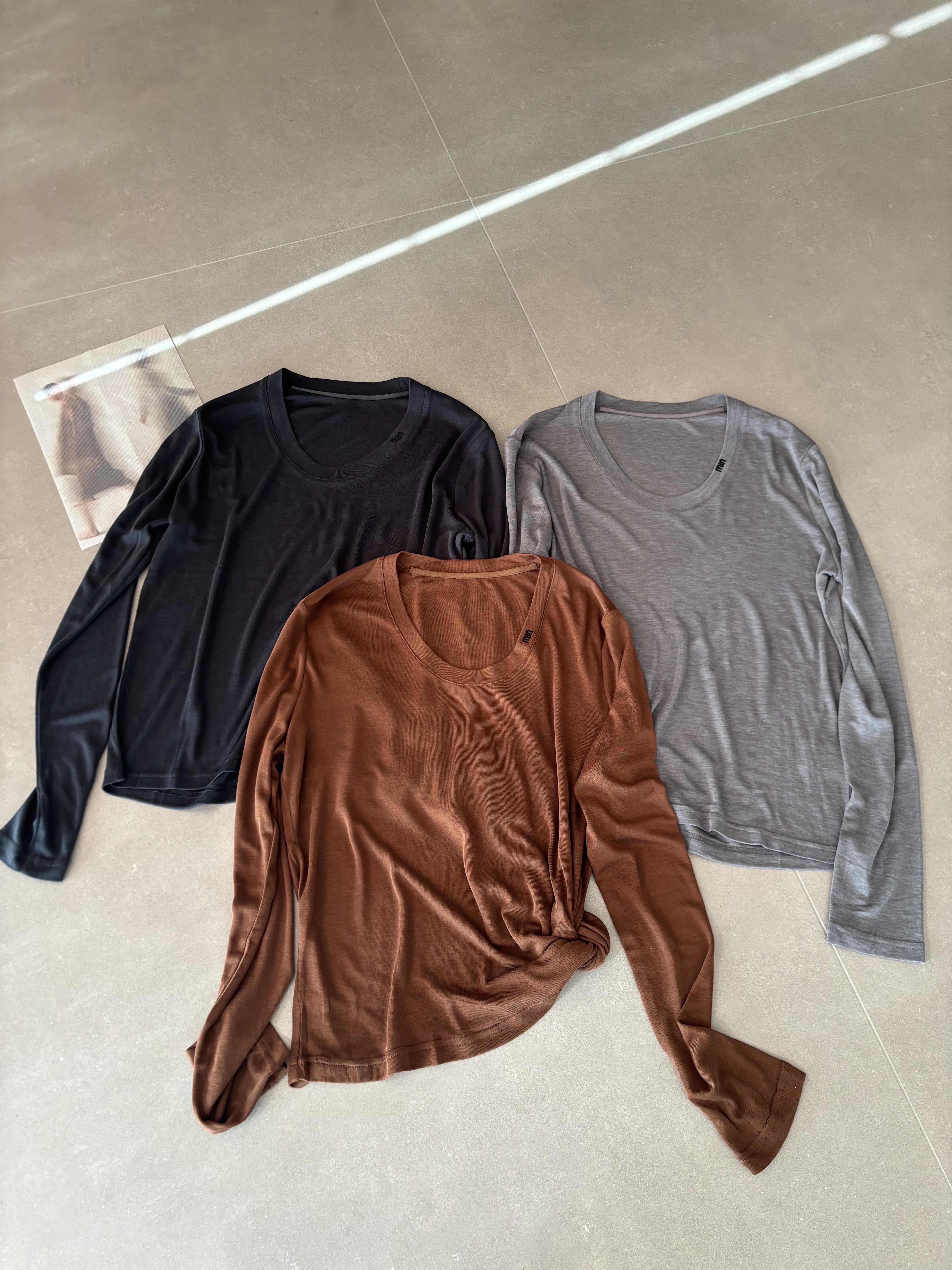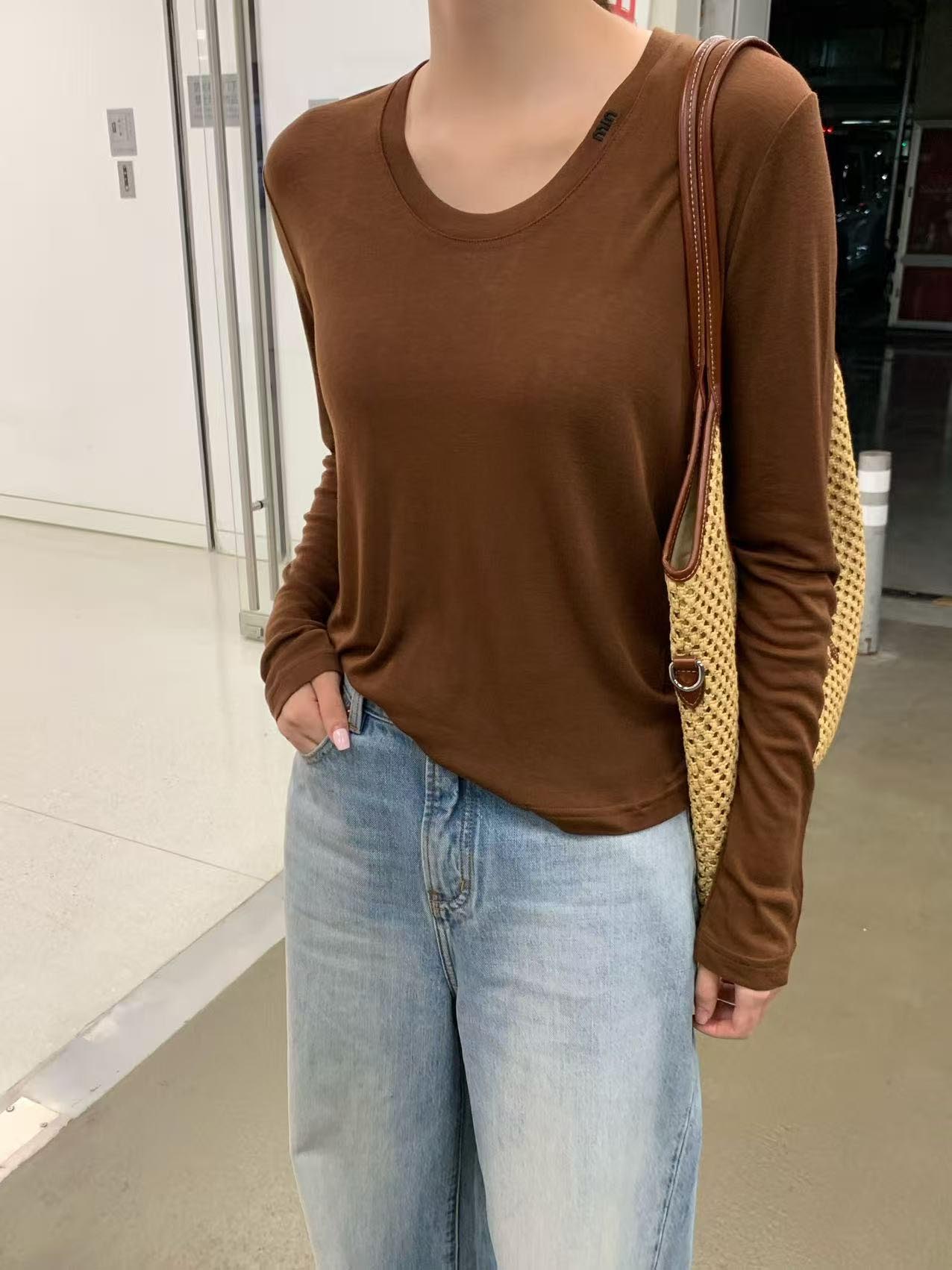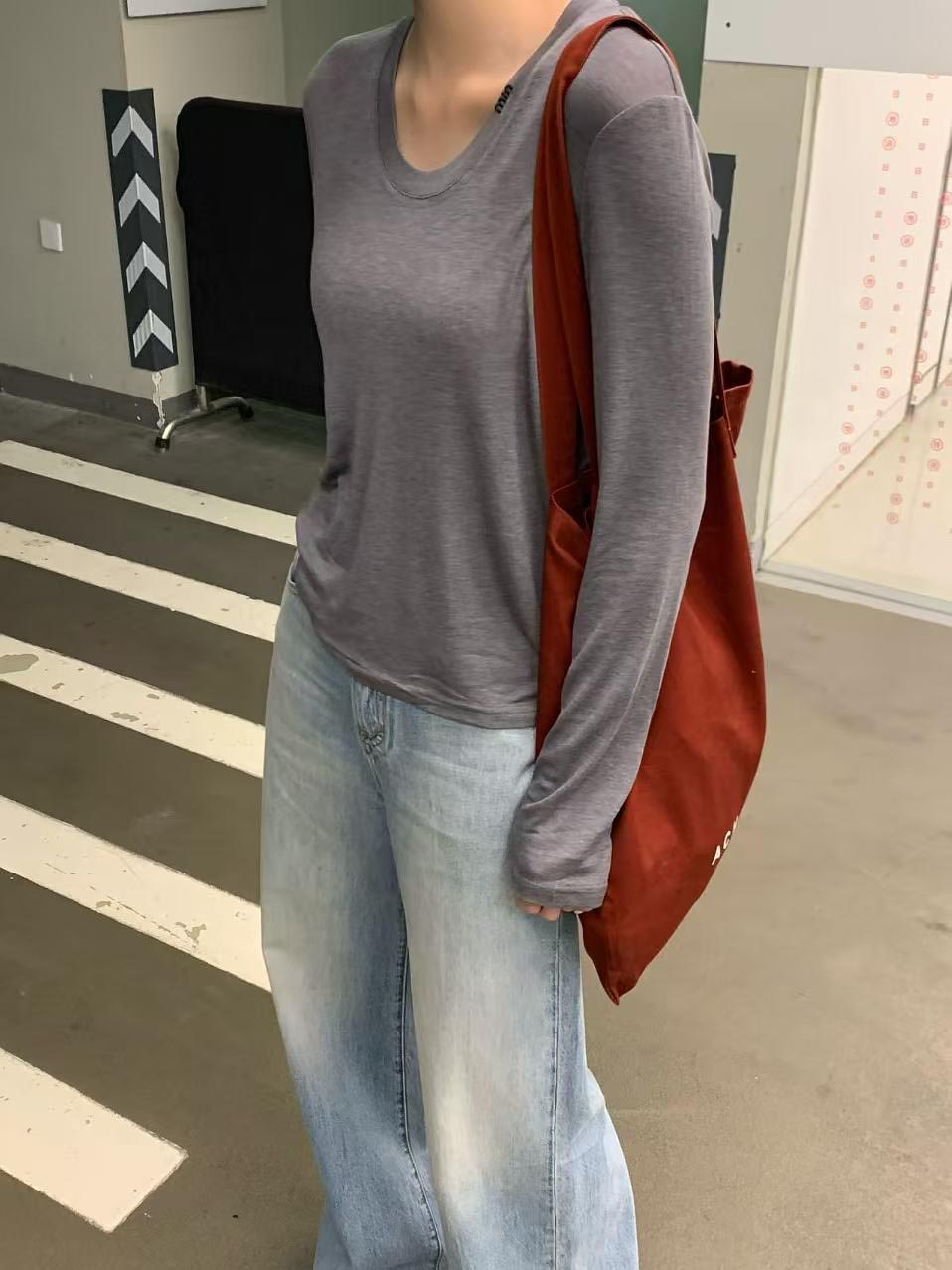 洛诗琳14224春季2025新款天丝羊毛U领T恤女显瘦百搭打底上衣61613