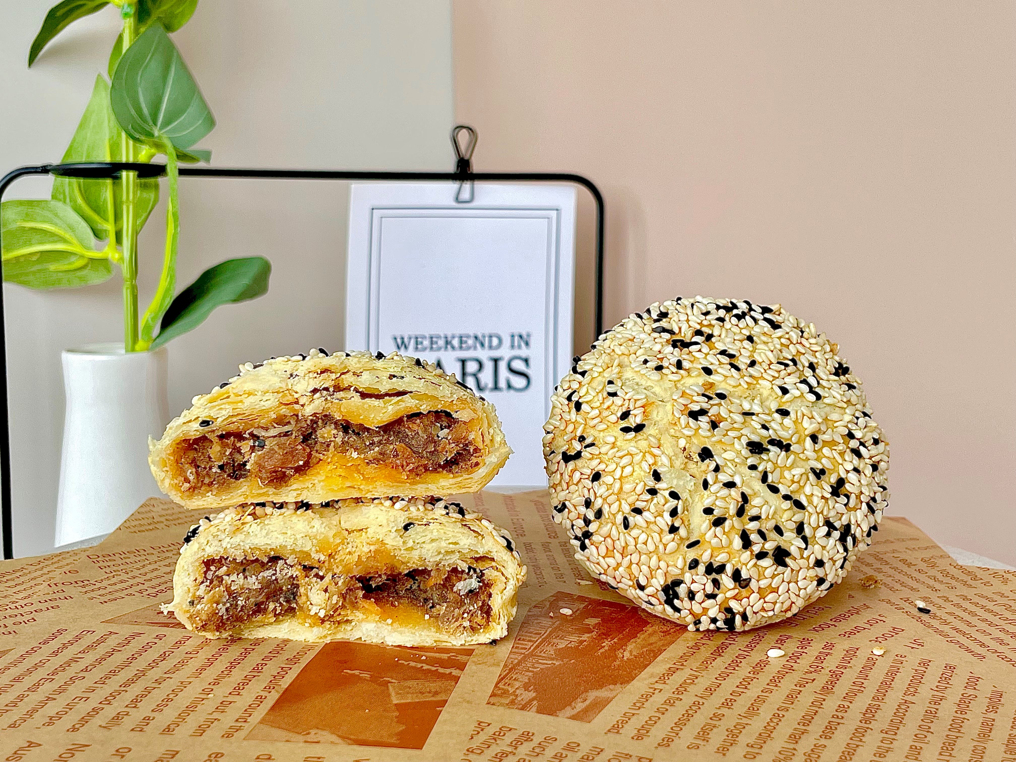 产品:现烤月饼1粒(芋泥肉松酥/牛肉芝麻酥/菠萝蛋黄酥三种口味选1粒)