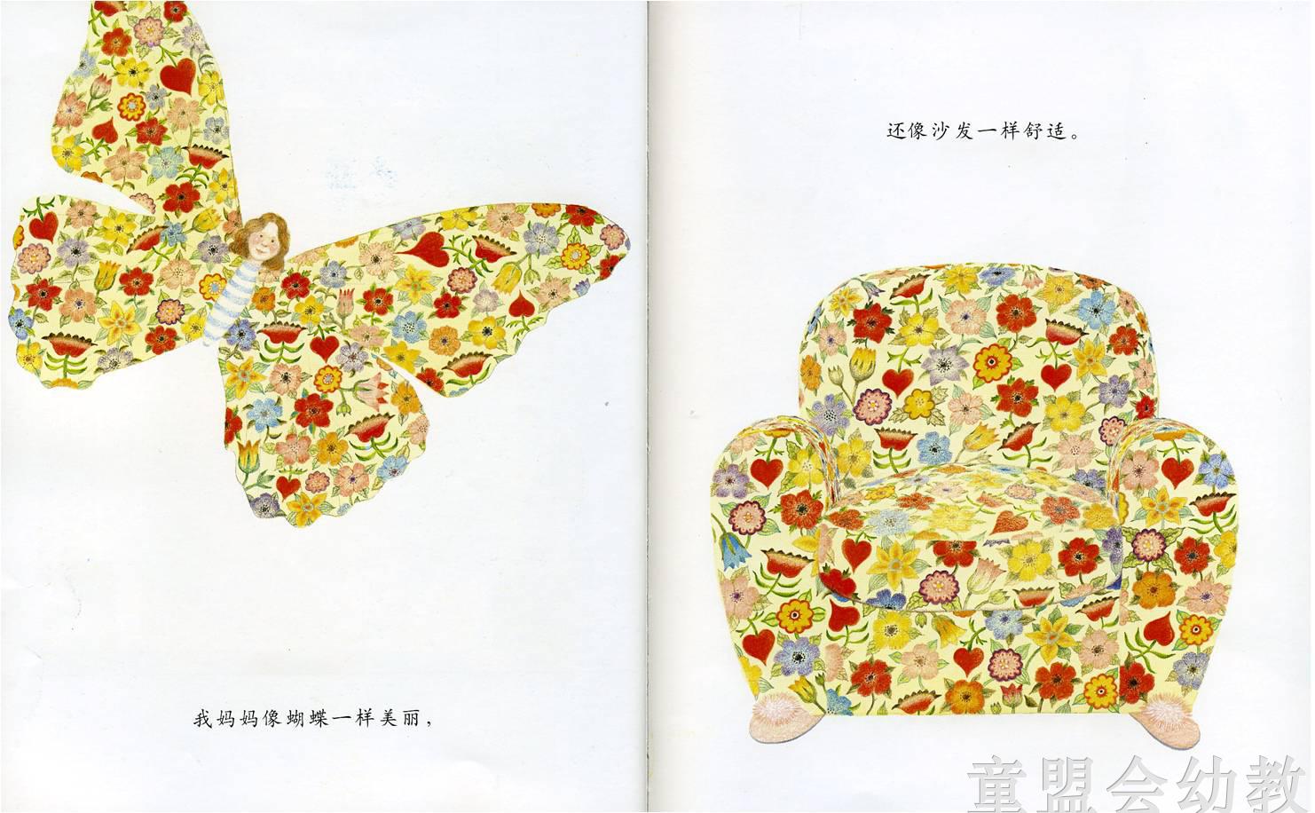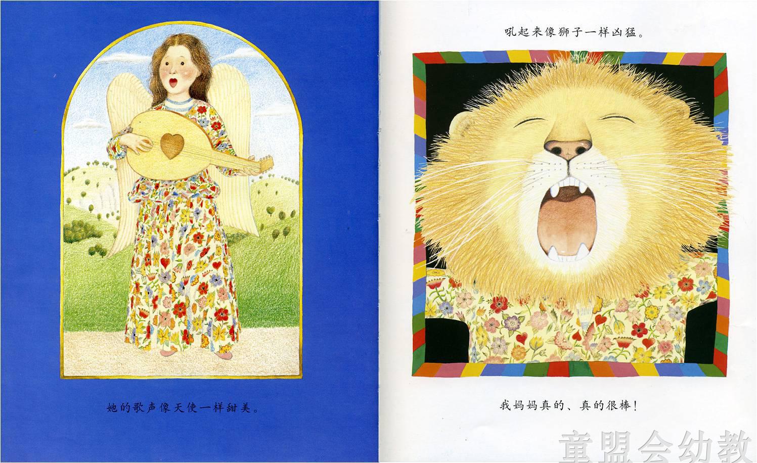 《我妈妈》每一个孩子心中的妈妈都是最好的:我妈妈是一个棒极了的厨师;她是一个伟大的化妆师;她是全世界最强壮的女人;她还是一个奇异的园艺师,可以让任何植物生长;她是一个仙女,在我沮丧的时候她总是有办法让我开心起来;她的歌可以唱得像天使一样好;她吼起来像一头狮子;我的妈妈像蝴蝶一样漂亮,又舒适的像一把扶手沙发……她常常逗我大笑。我爱我妈妈,而且你知道吗?妈妈也爱我,而且会永远爱我。