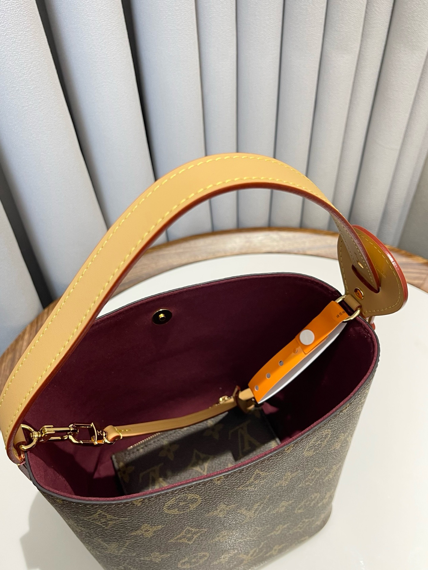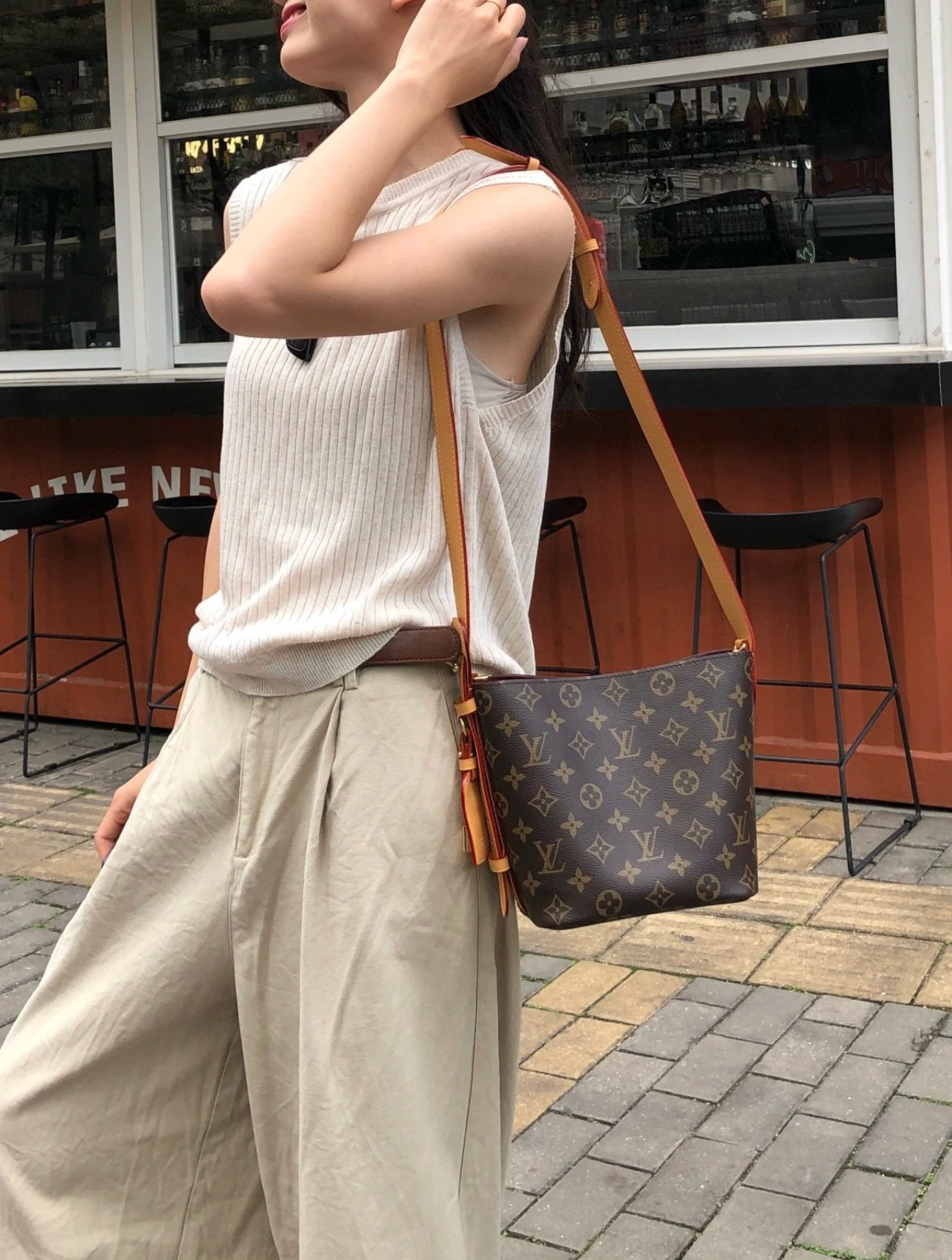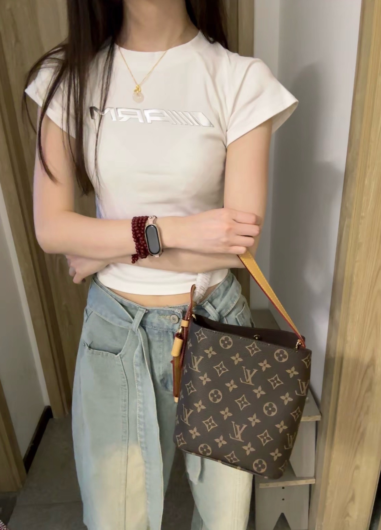 采用具有精美纹理的牛皮皮革 柔软细腻的同时 韧性十足 耐磨防刮,独特的水桶外观设计 时髦个性 让穿搭一秒吸睛~包型软而不塌 饱满有型,搭配Lv经典金色锁扣挂件超显精致贵气!磁扣的开和设计让存放更加便捷安全,容量非常够用,可调节可拆卸的肩带手提斜挎都好看 小个子女生也能轻松驾驭,库存有限 喜欢的时髦精们拼手速吧!
