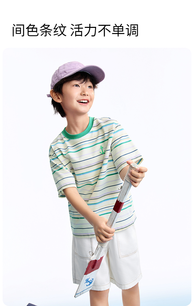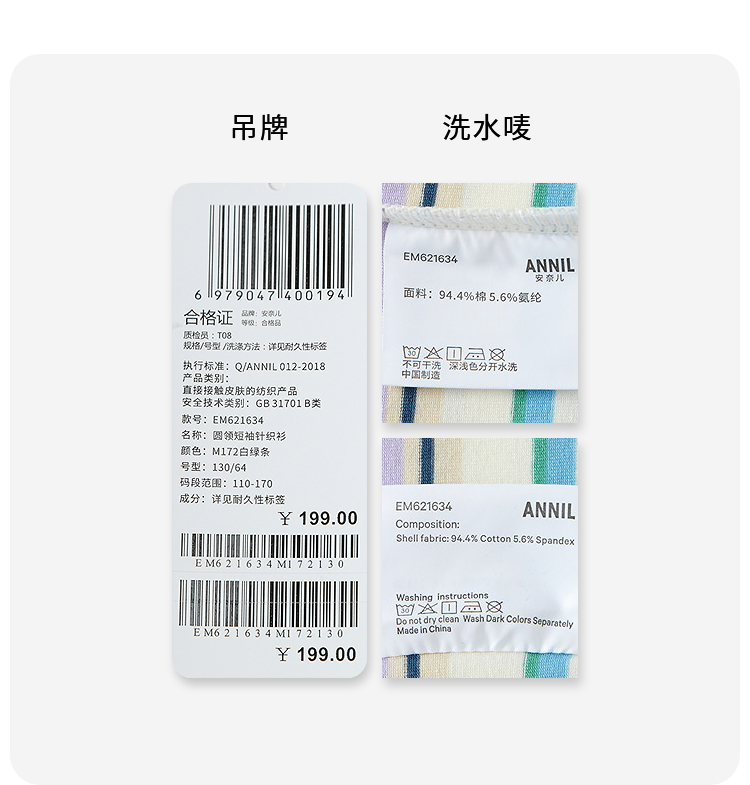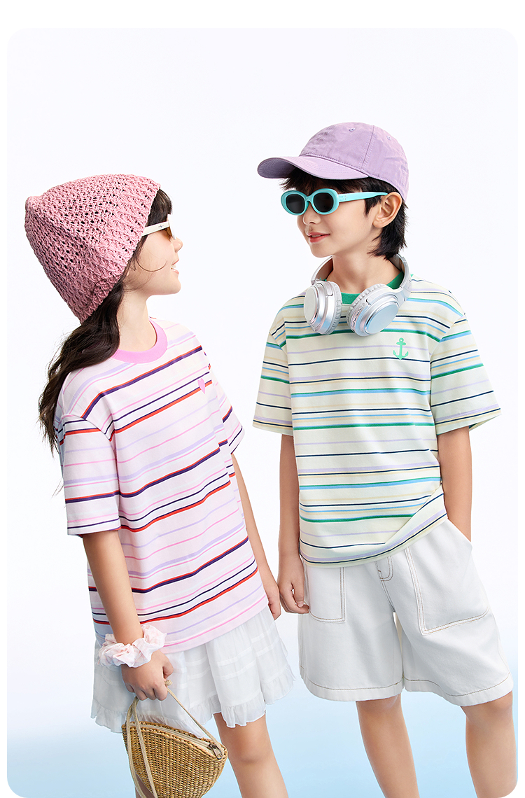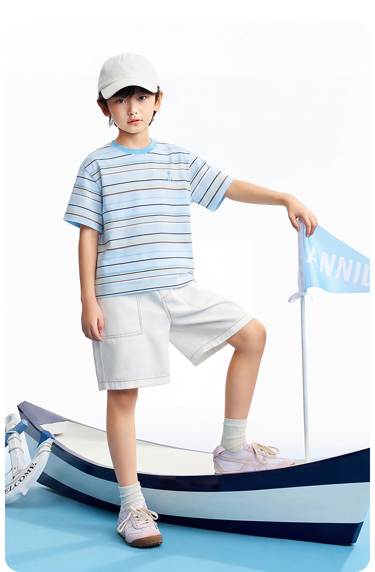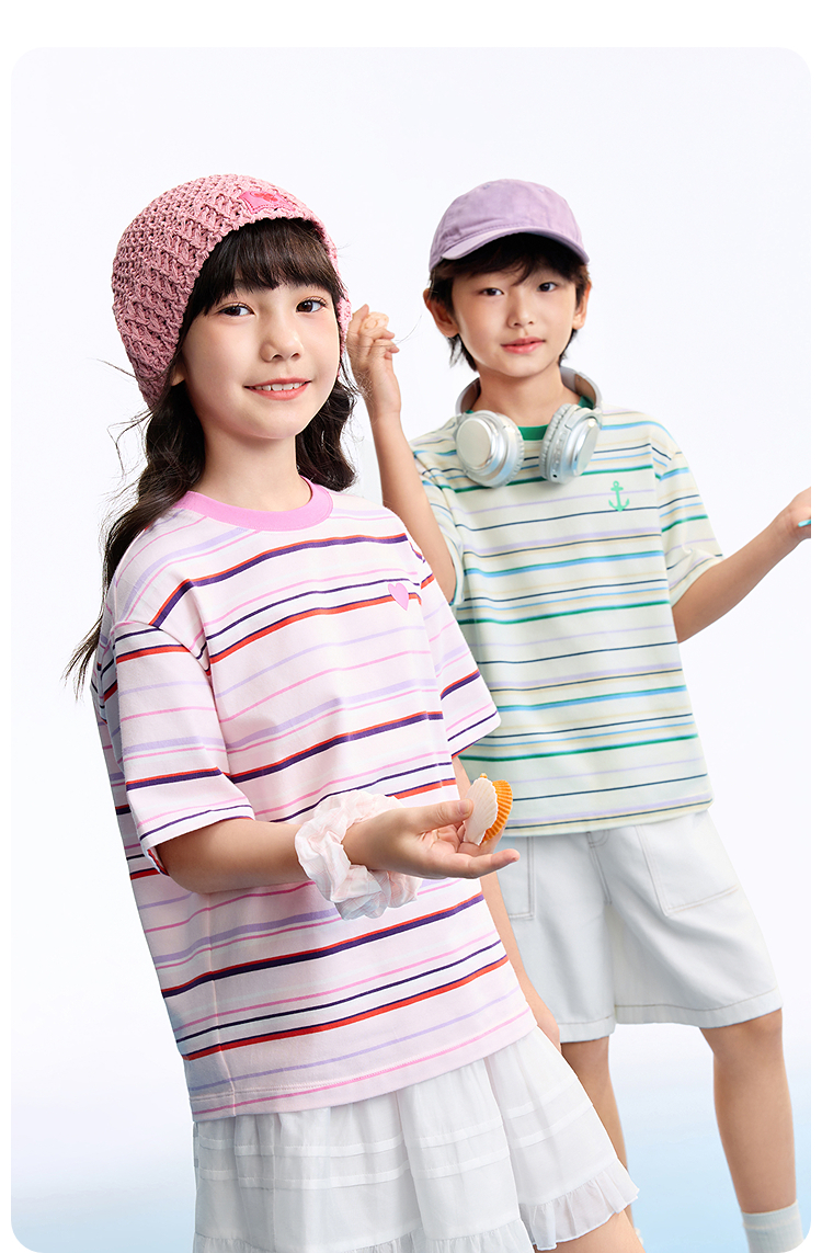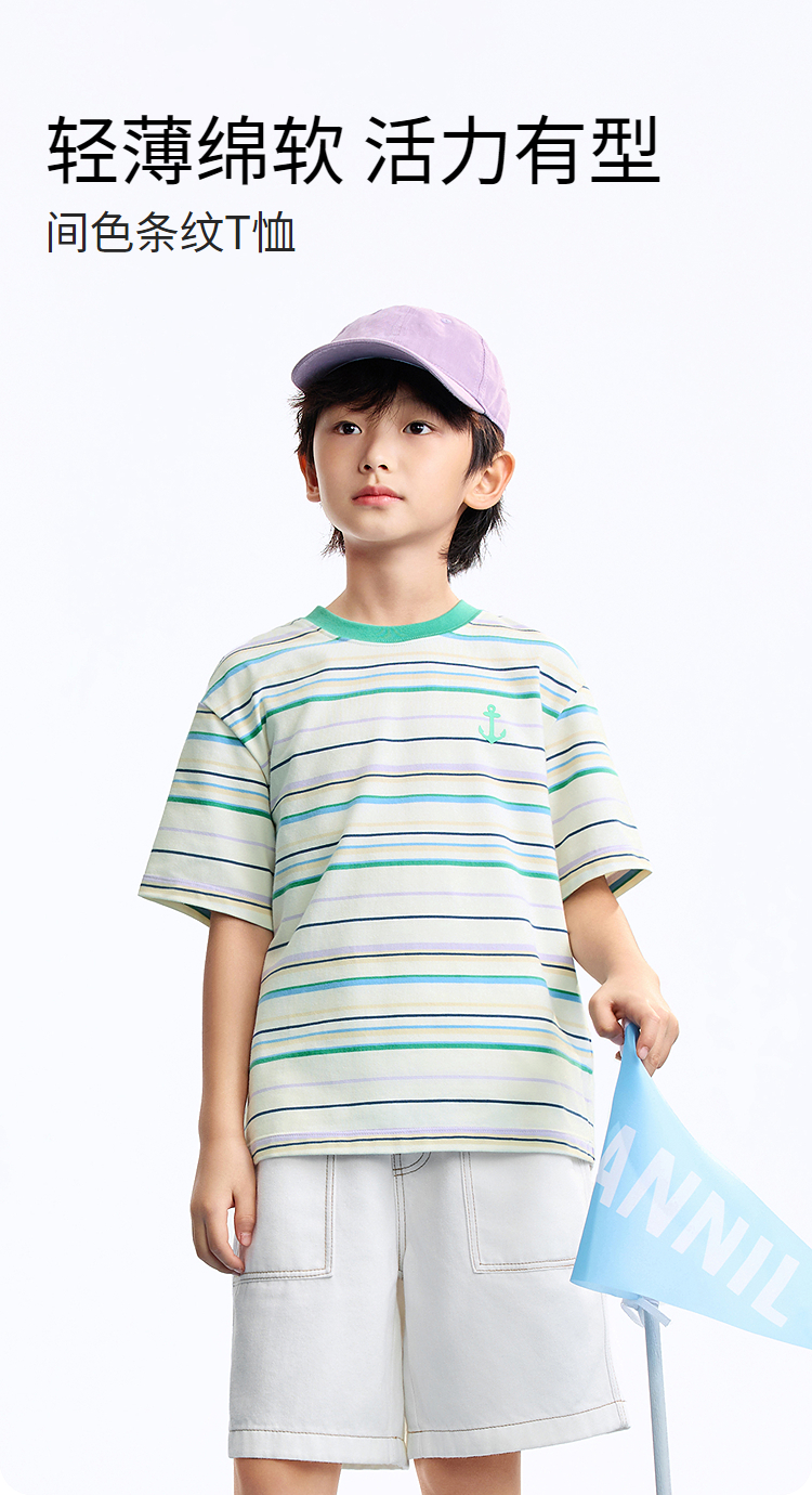 男女童圆领短袖针织衫夏季新款安奈儿童装EM621634
