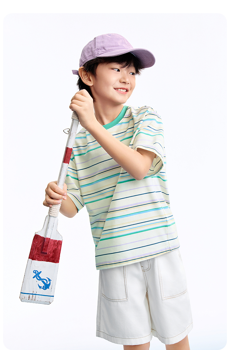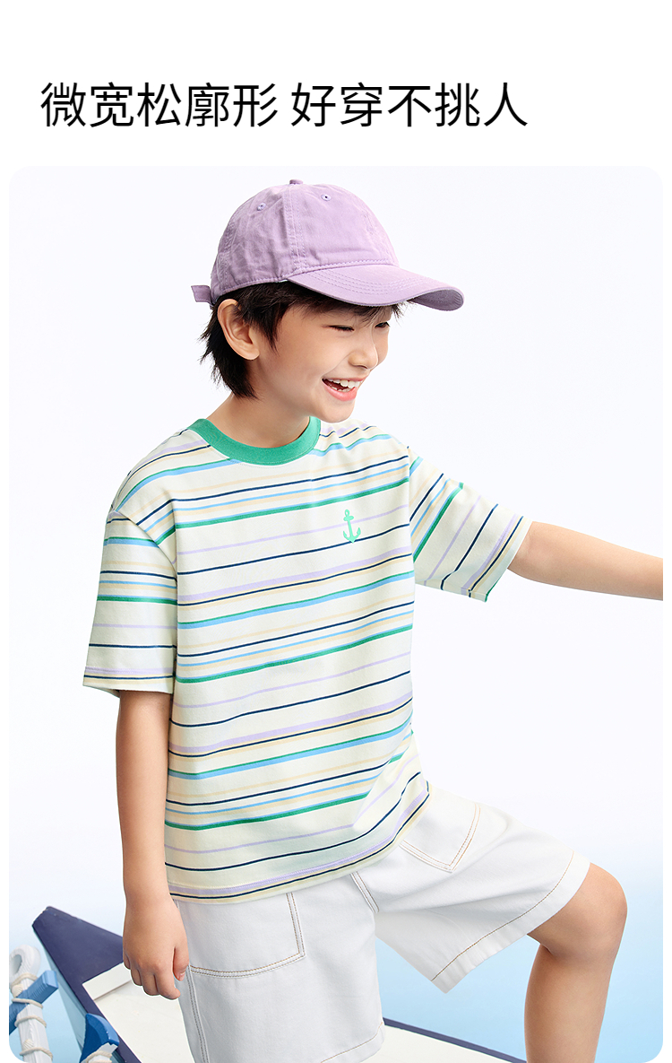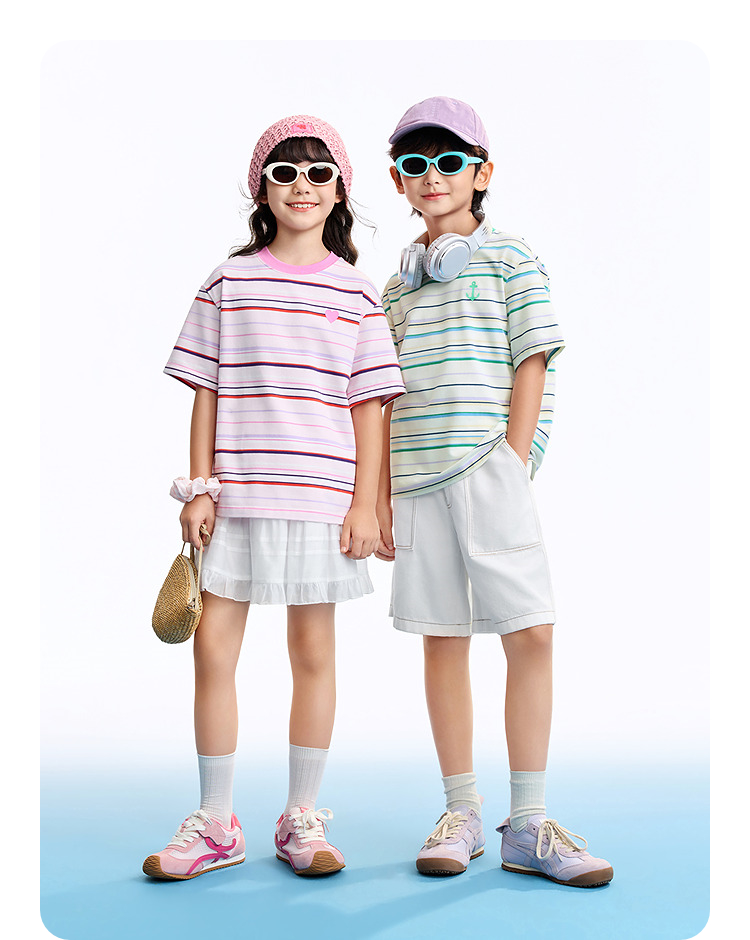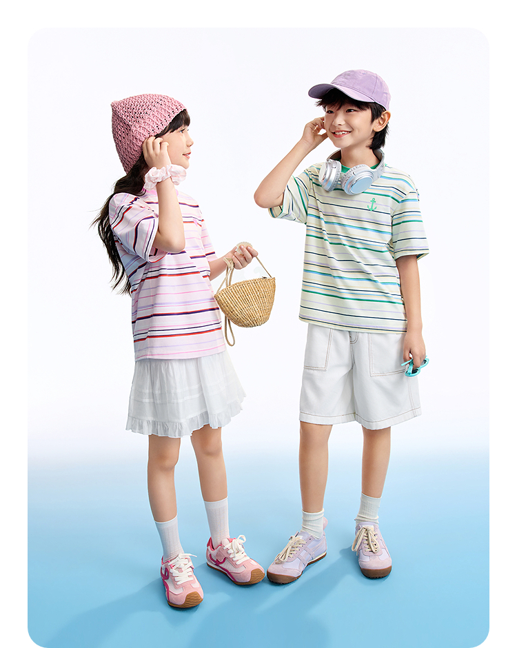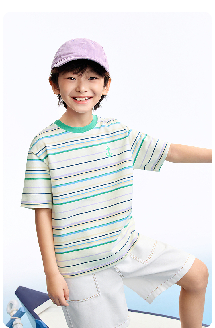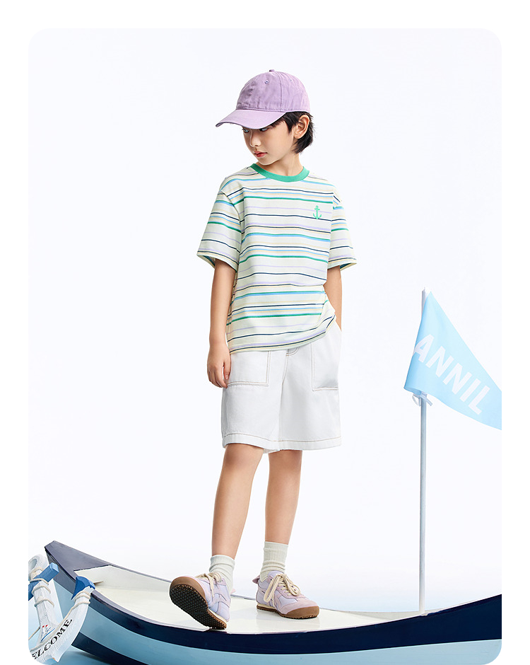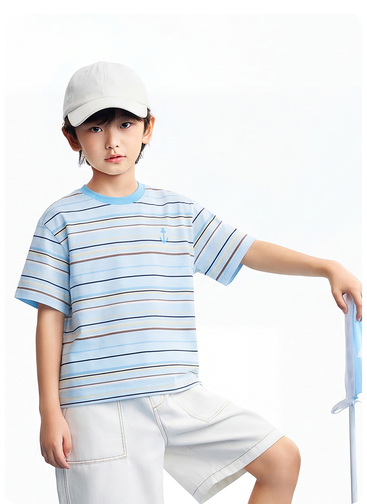 男女童圆领短袖针织衫夏季新款安奈儿童装EM621634