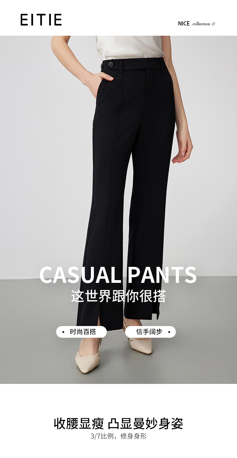 EITIE爱特爱时尚职业干练通勤百搭显瘦开叉长裤女裤B2405304