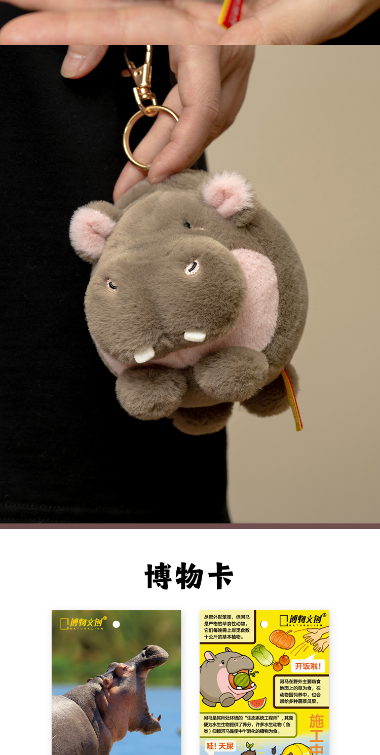 博物文创 小圆宝 河马 毛绒玩具挂件 节日礼物