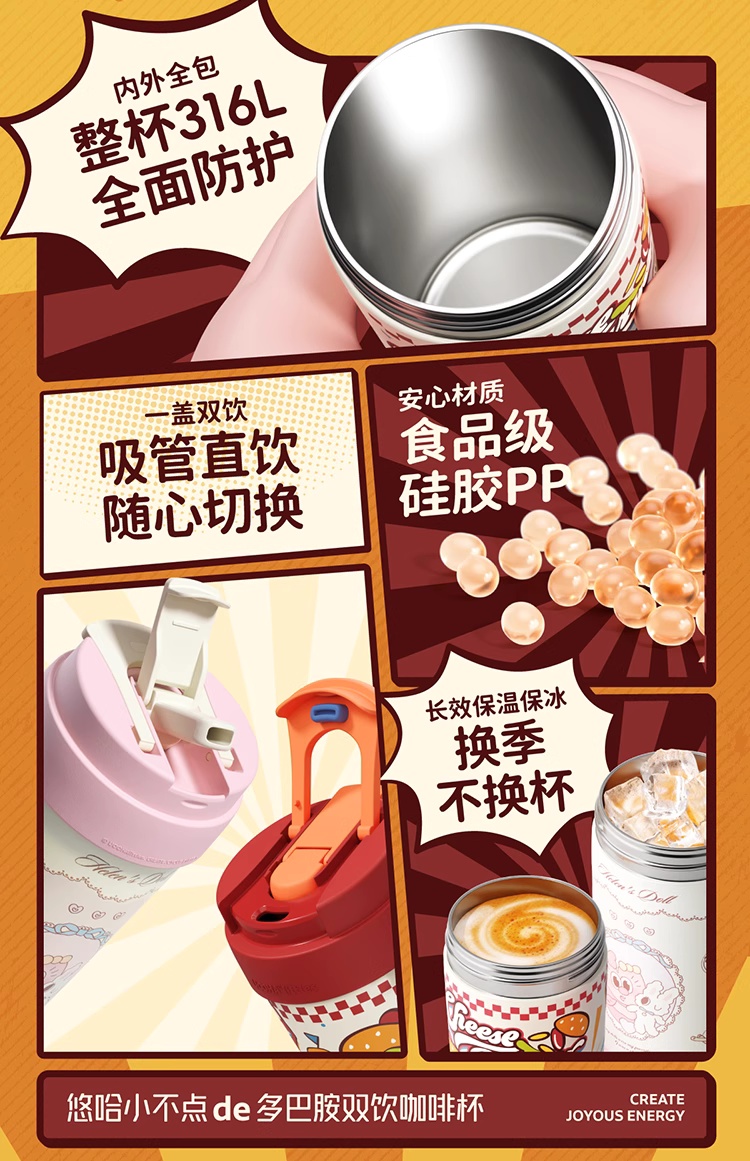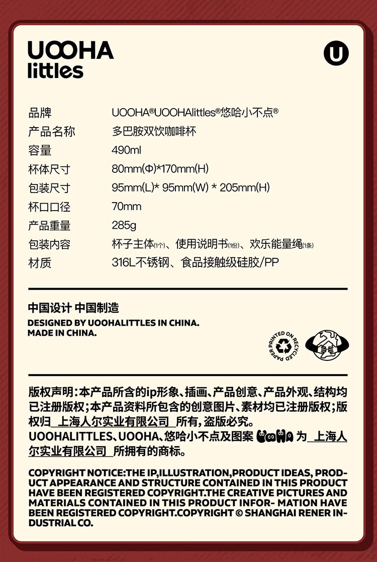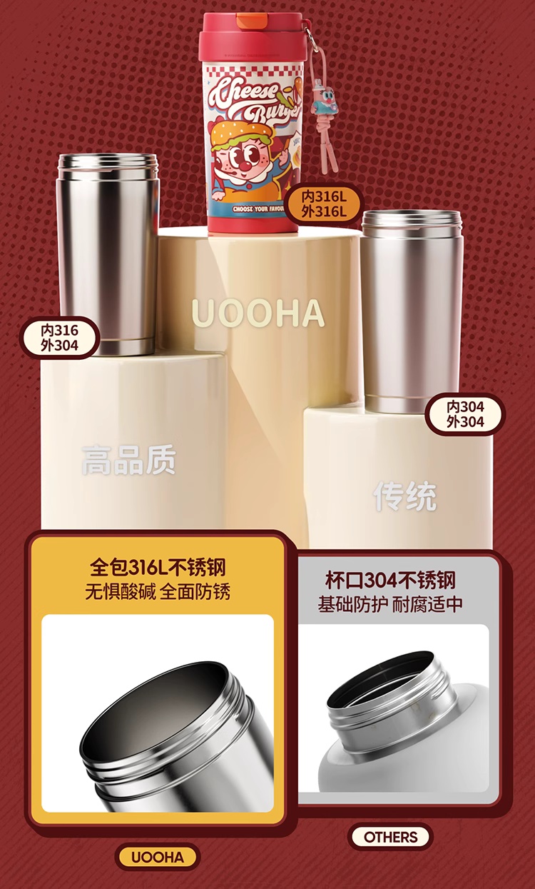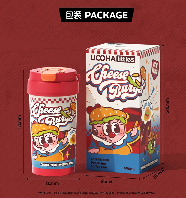 uooha多巴胺不锈钢双饮咖啡杯满分巨无霸-红 (490ml)