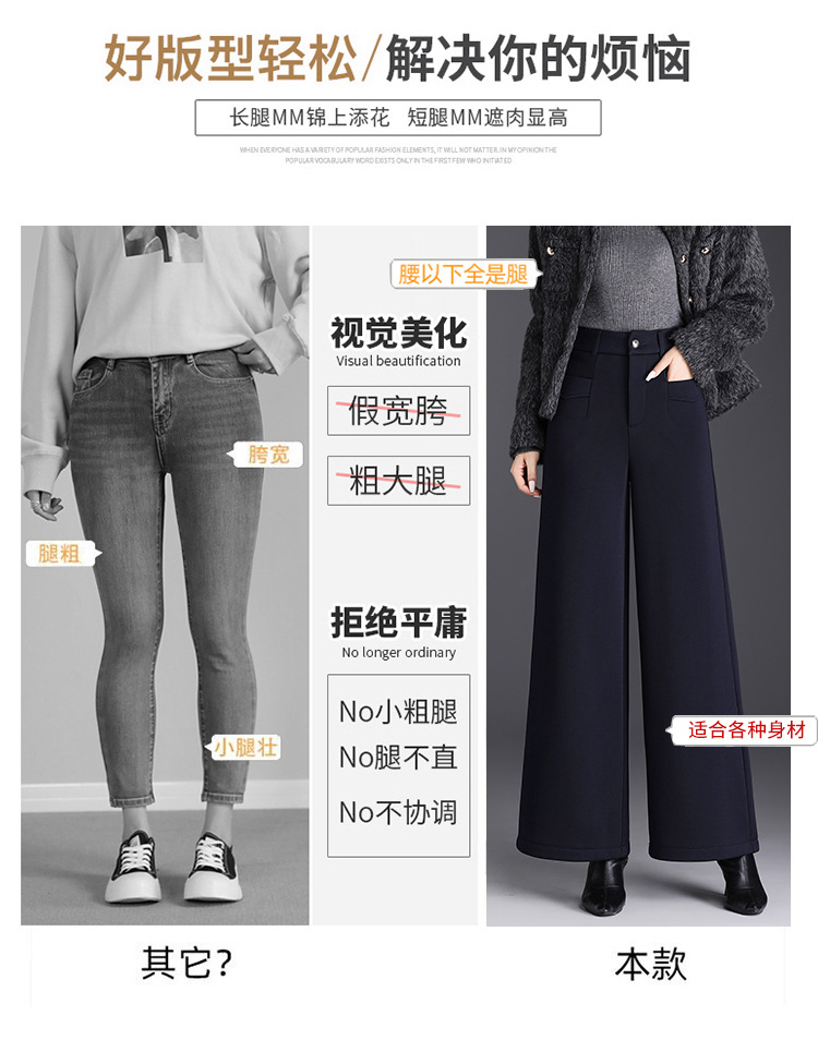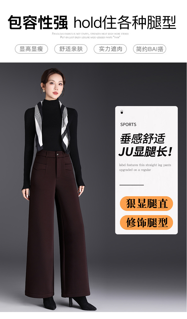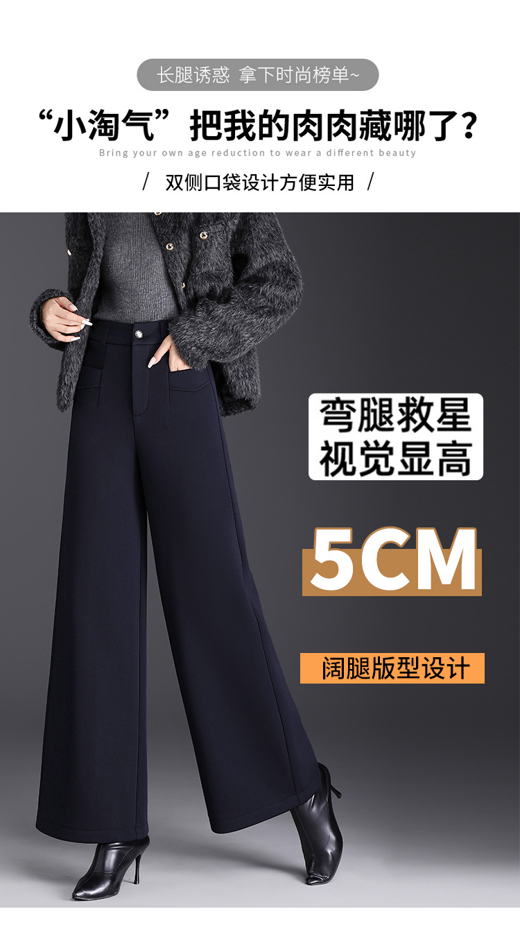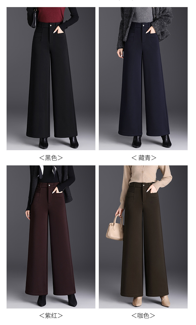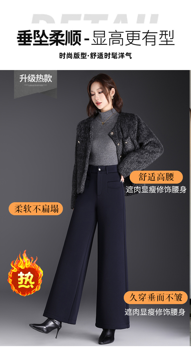QYM 3568-Y加绒阔腿裤厚款保暖休闲裤宽松大码