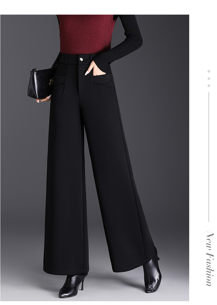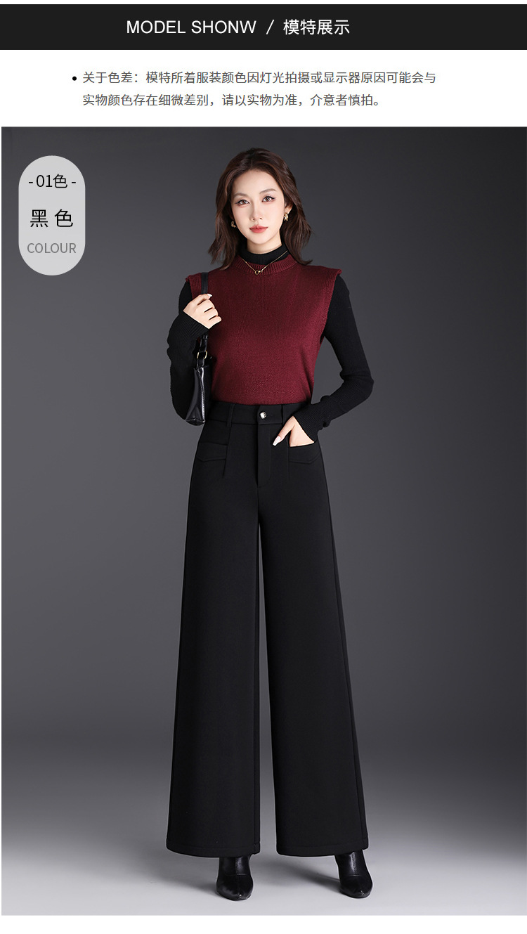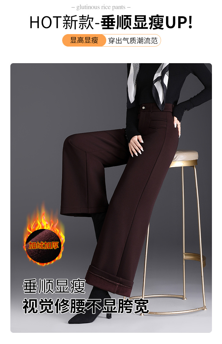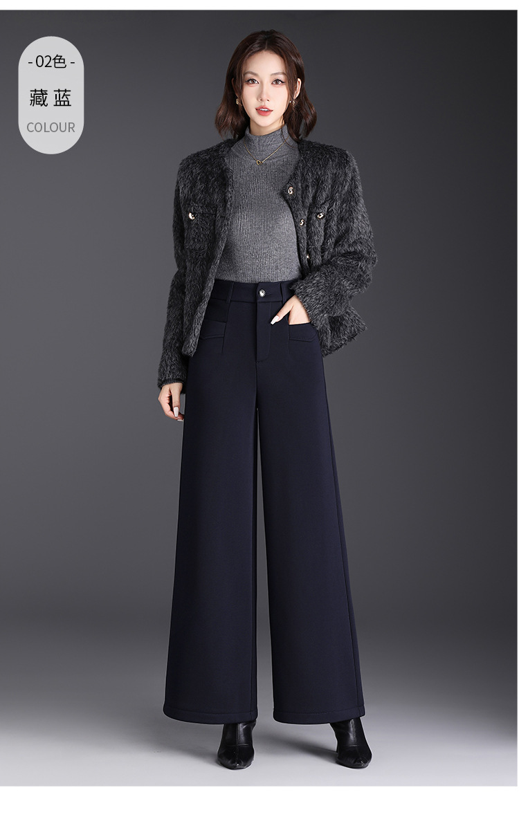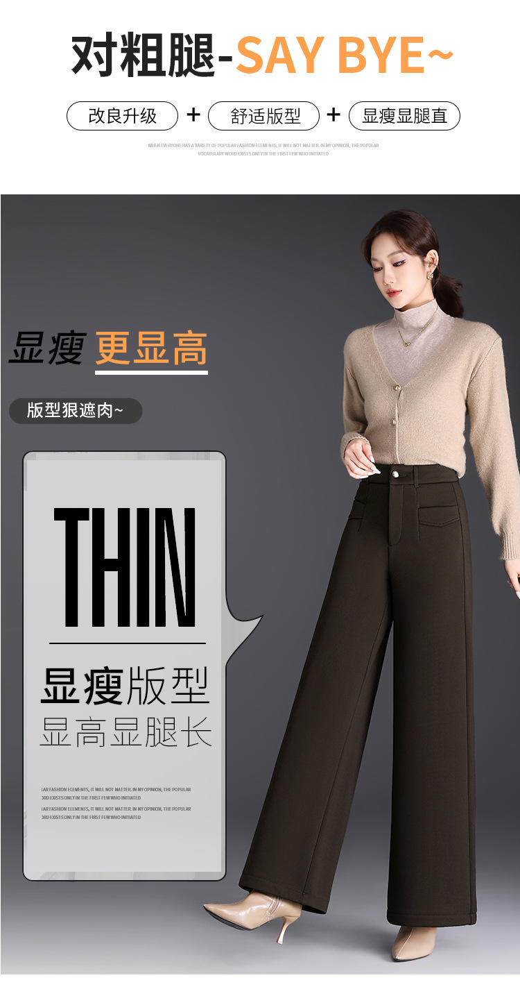 QYM 3568-Y加绒阔腿裤厚款保暖休闲裤宽松大码