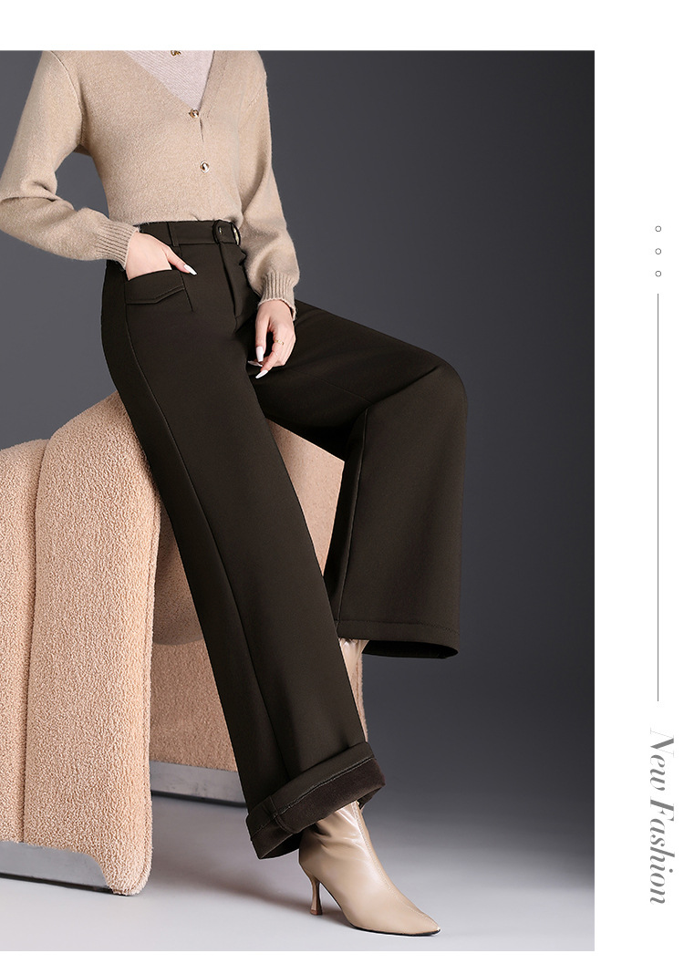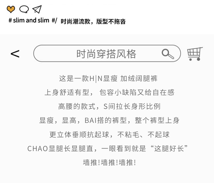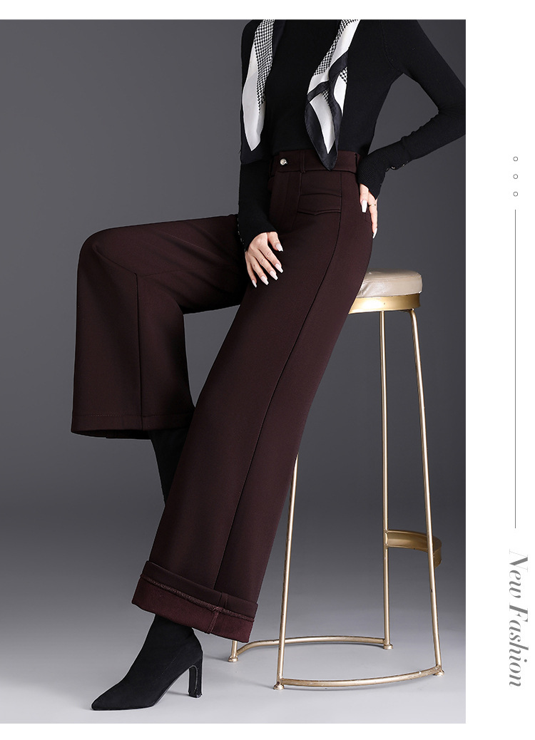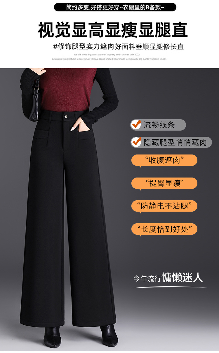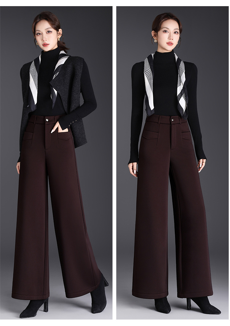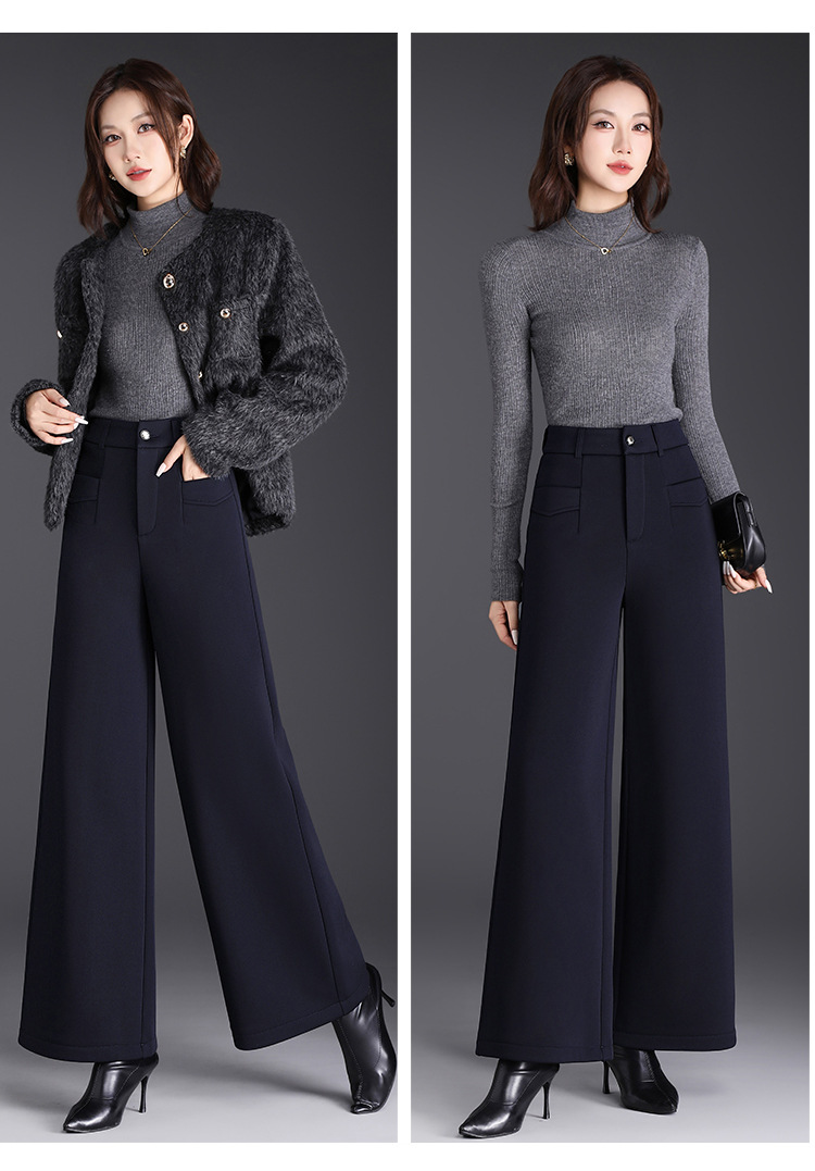 QYM 3568-Y加绒阔腿裤厚款保暖休闲裤宽松大码