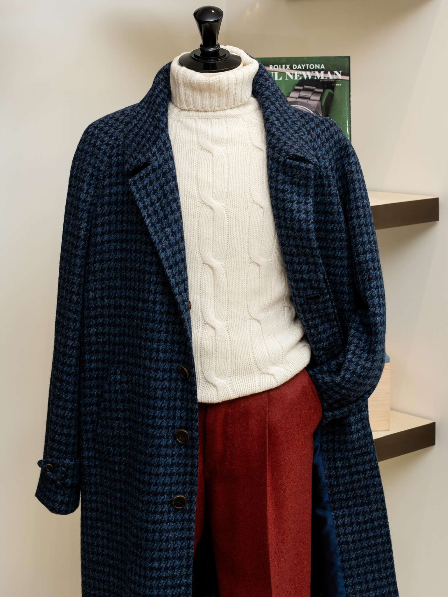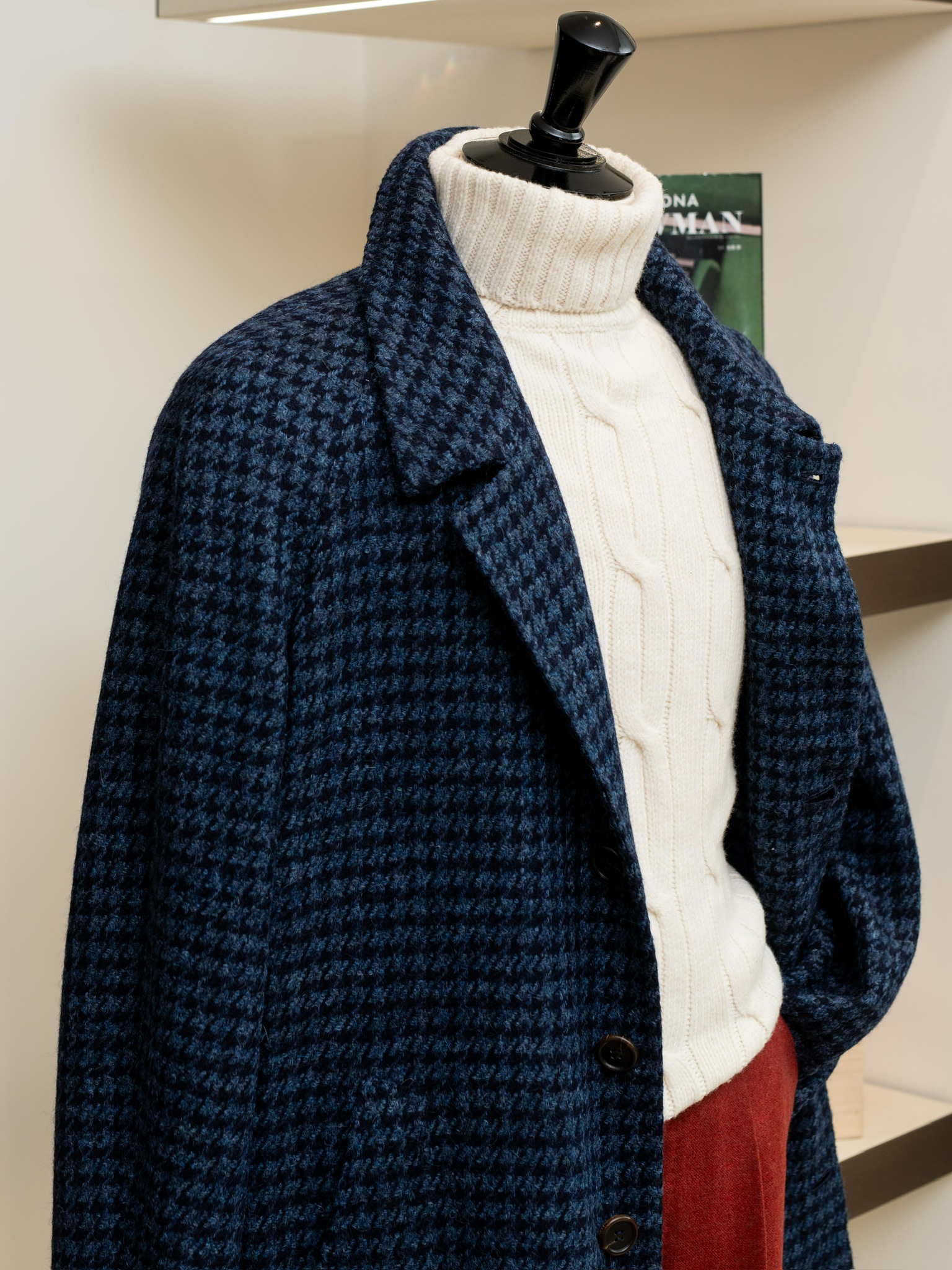 Orazio Luciano 蓝色千鸟格插肩袖大衣