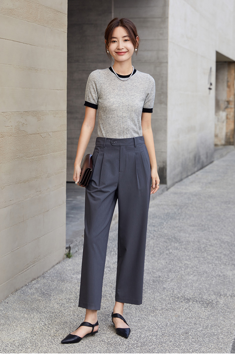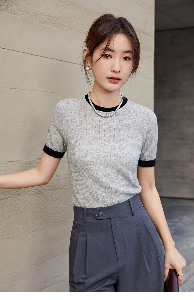 显瘦刚需!短款撞色短袖针织衫,轻松勾勒好比例