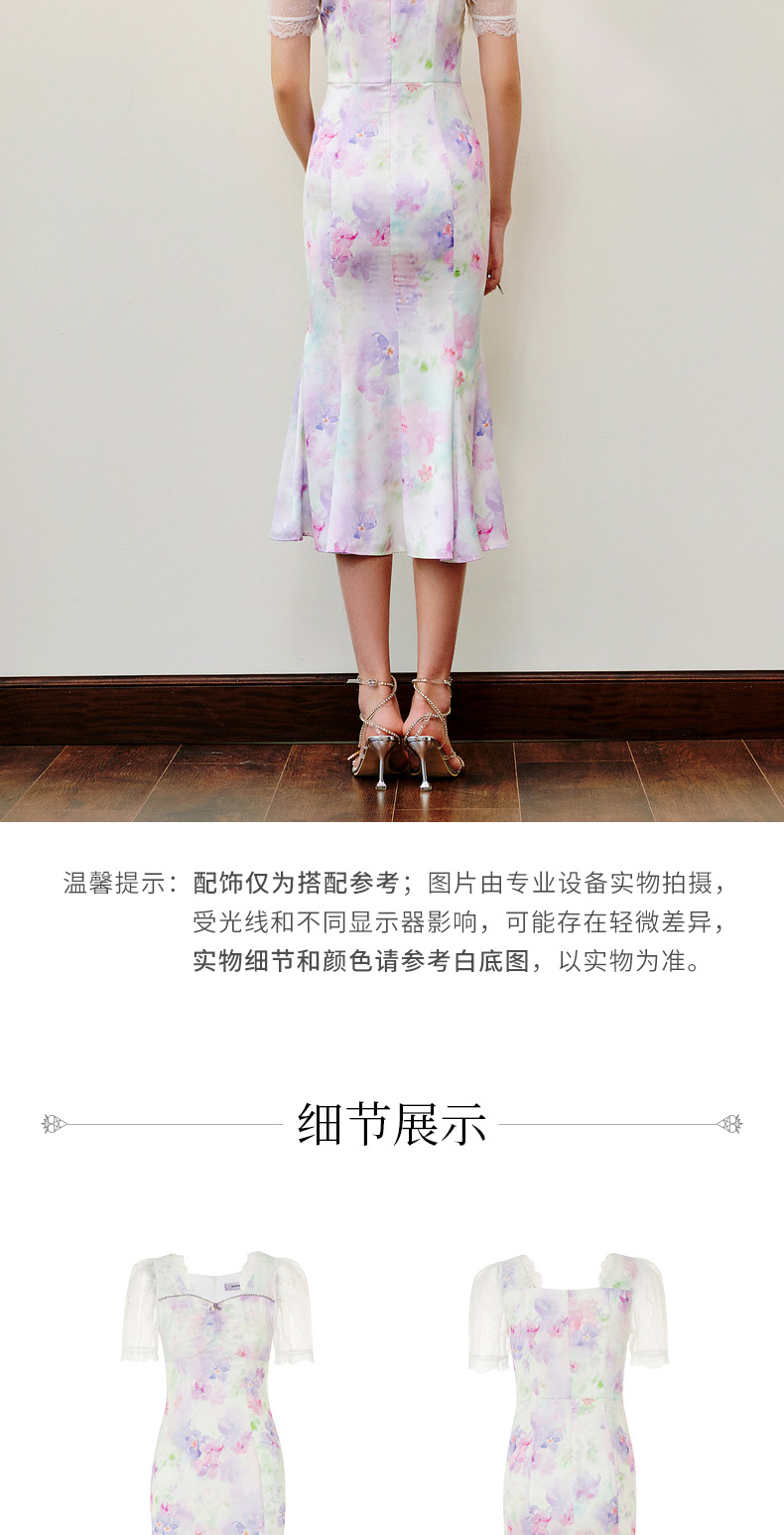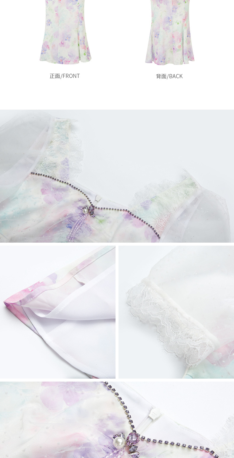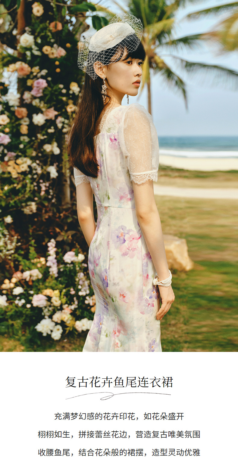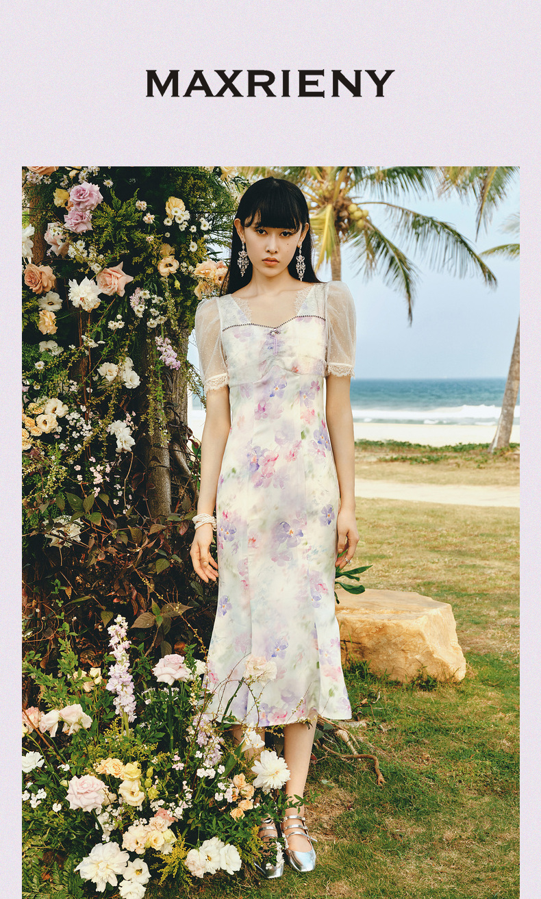 MAXRIENY小众鱼尾裙子甜美雪纺裙茶歇裙碎花连衣裙(货号:MS88DR286)