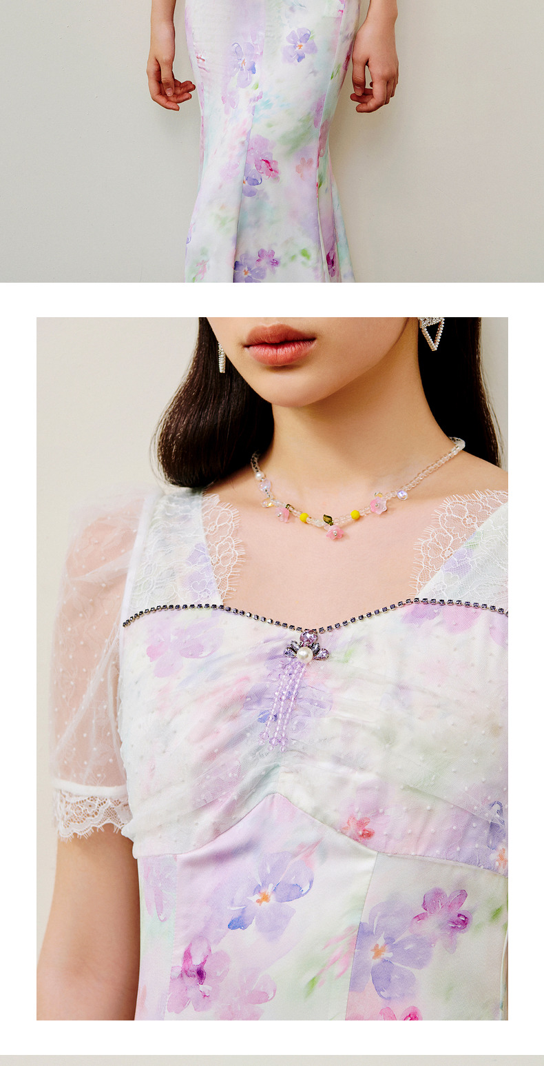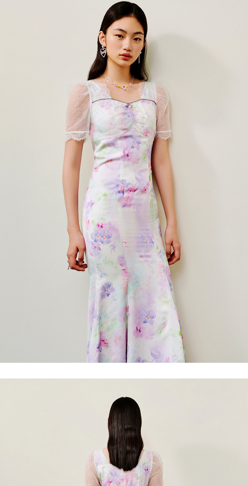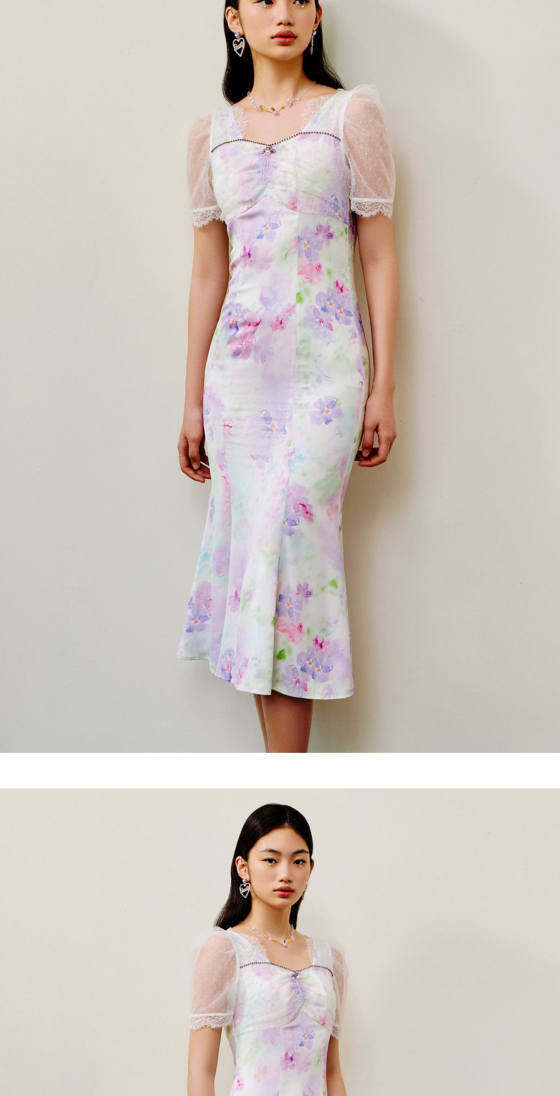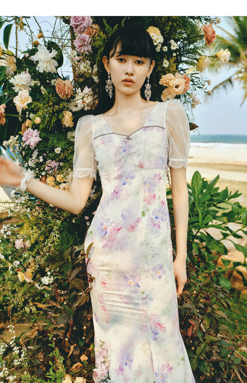 MAXRIENY小众鱼尾裙子甜美雪纺裙茶歇裙碎花连衣裙(货号:MS88DR286)