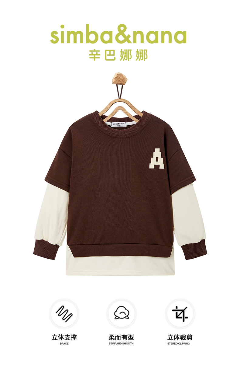 【辛巴娜娜】simbanana男童上衣秋装新款中大童假两件卫衣