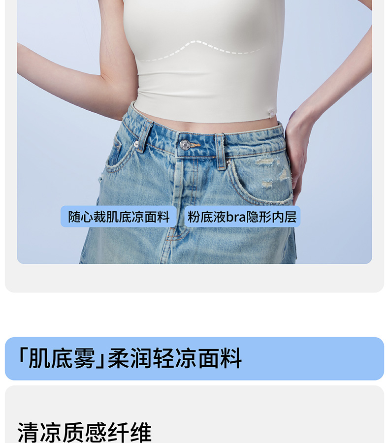 半练无痕花纹边平口吊带TA066 带胸垫舒适内搭细肩带遮副乳可外穿背心