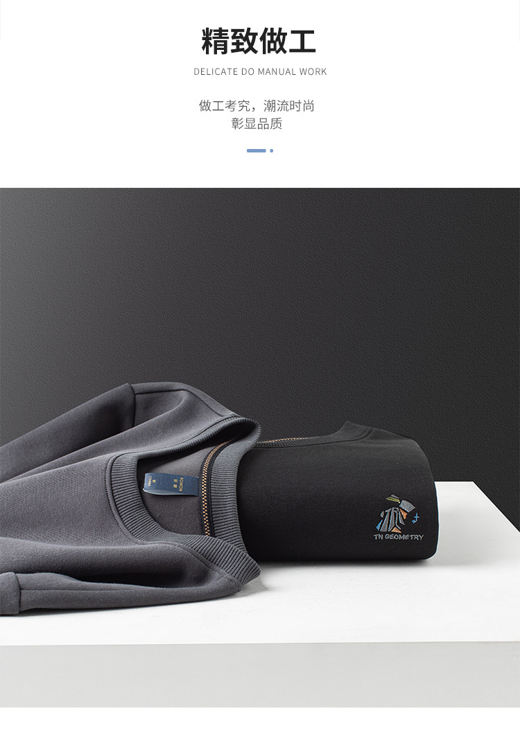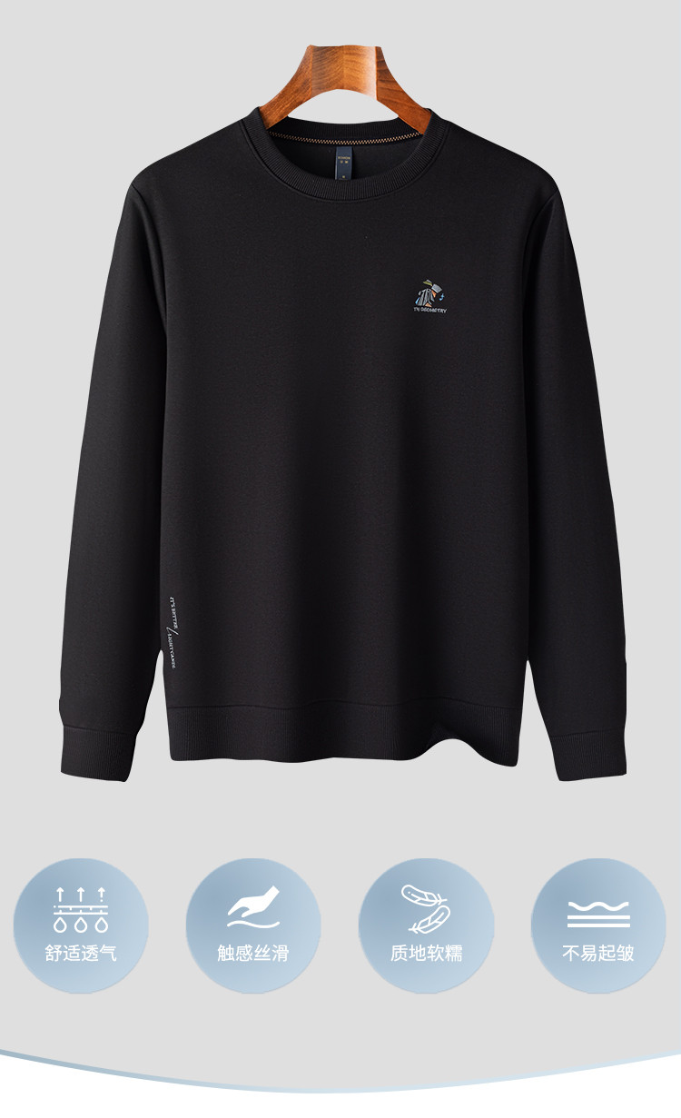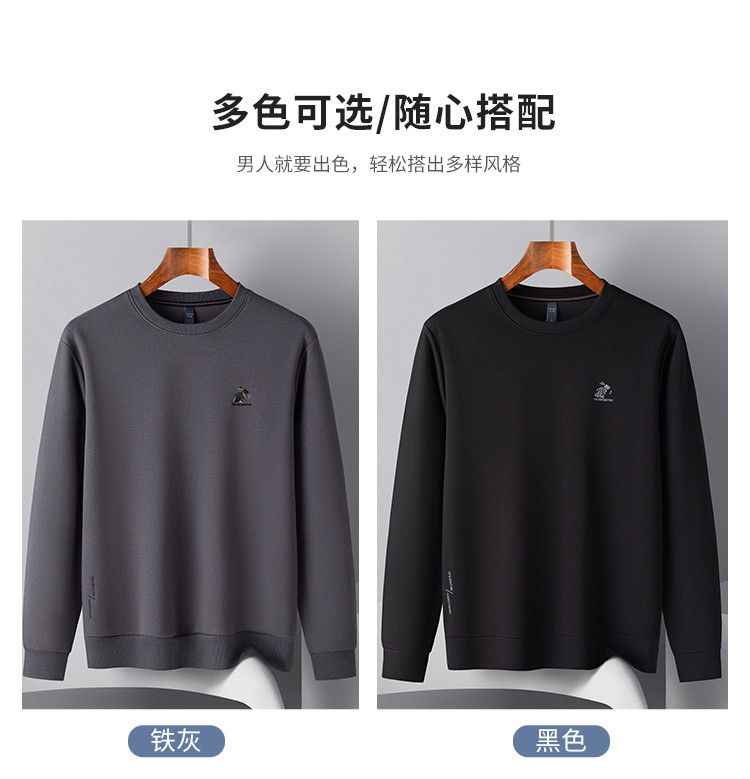 14LP3723914LP37239【桑蚕丝混纺】罗蒙春秋绣花胸标卫衣男舒适休闲百搭卫衣男长袖圆领T恤