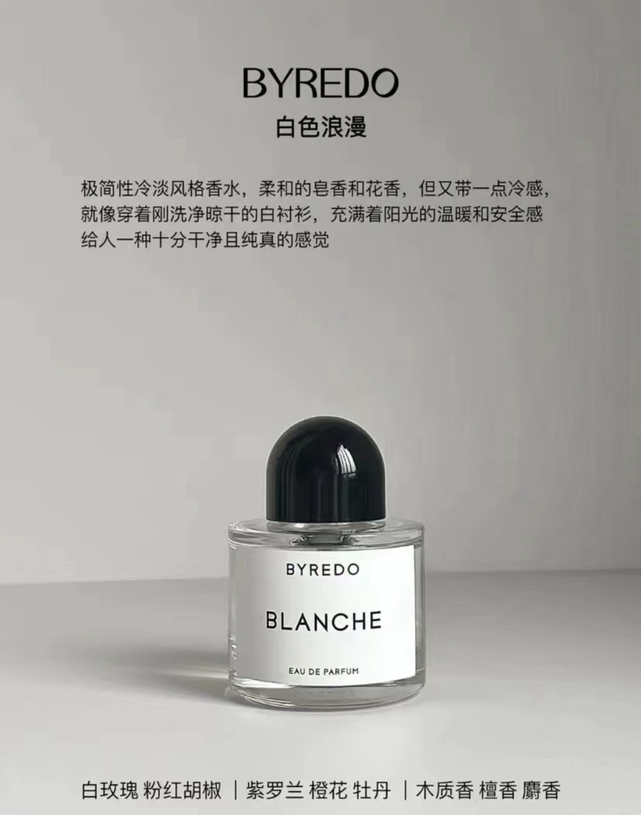 百瑞德(Byredo)是一个来自瑞典斯德哥尔摩的高端沙龙香水品牌,由Ben Gorham于2006年创立。它的香水以“简约而富有情感”为核心理念,追求纯净、自然与真实,每一款香水都像一个故事,旨在唤起人们的情感与记忆。