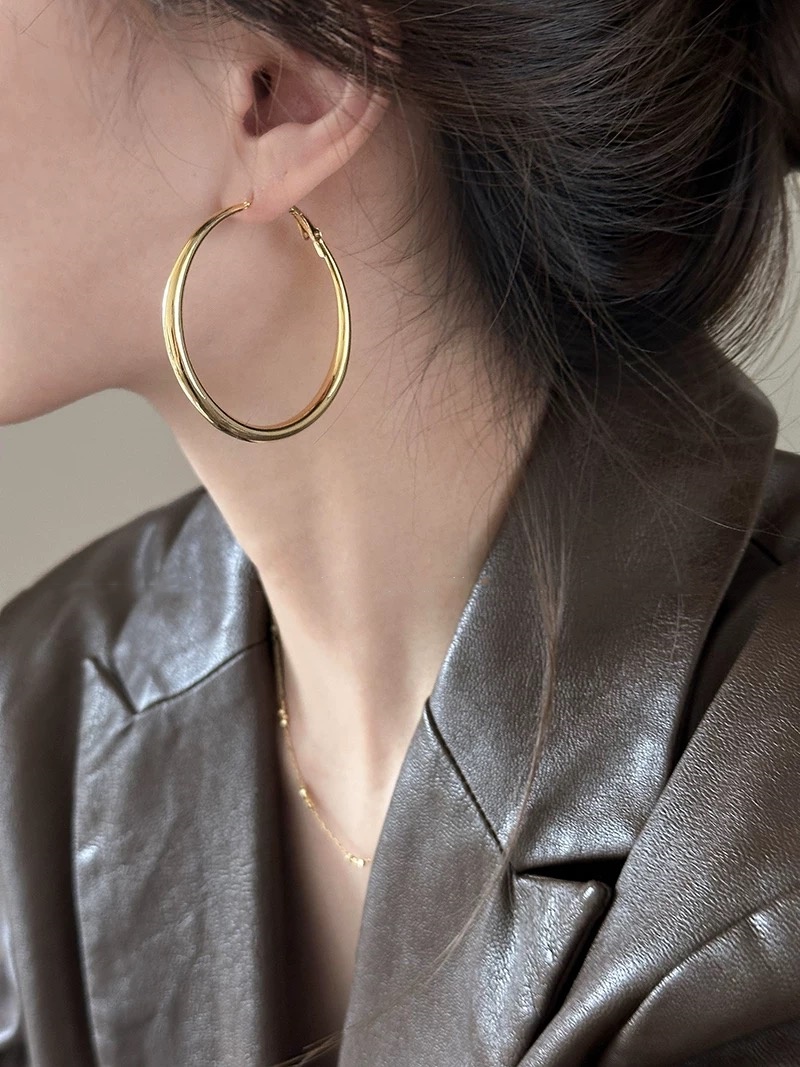 Oflye潮流饰品 赵露思许妍同款夸张素圈圈耳环新款高级感大圆圈耳饰气质轻奢独特耳圈女