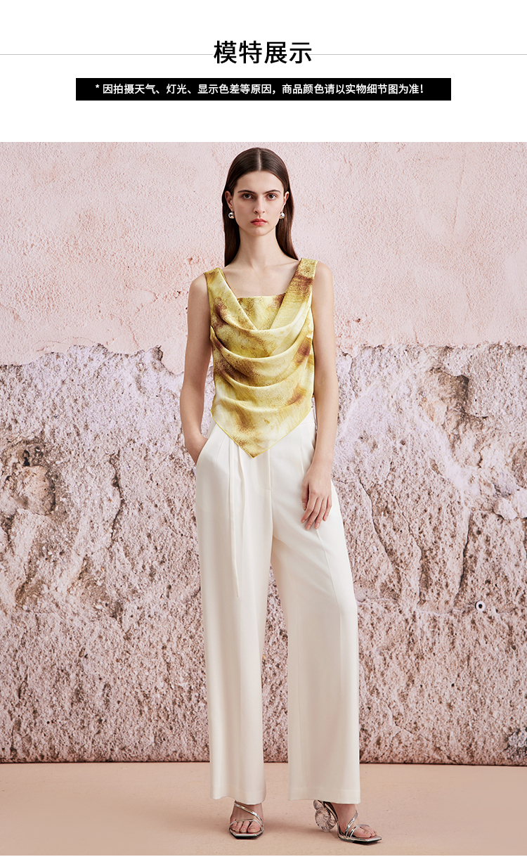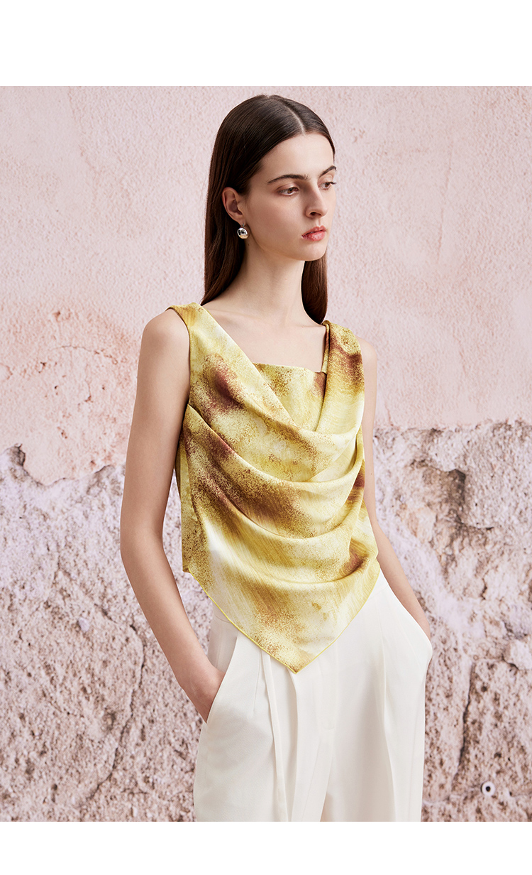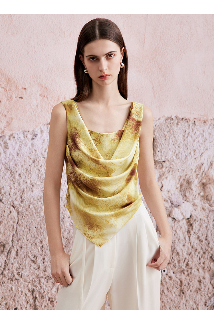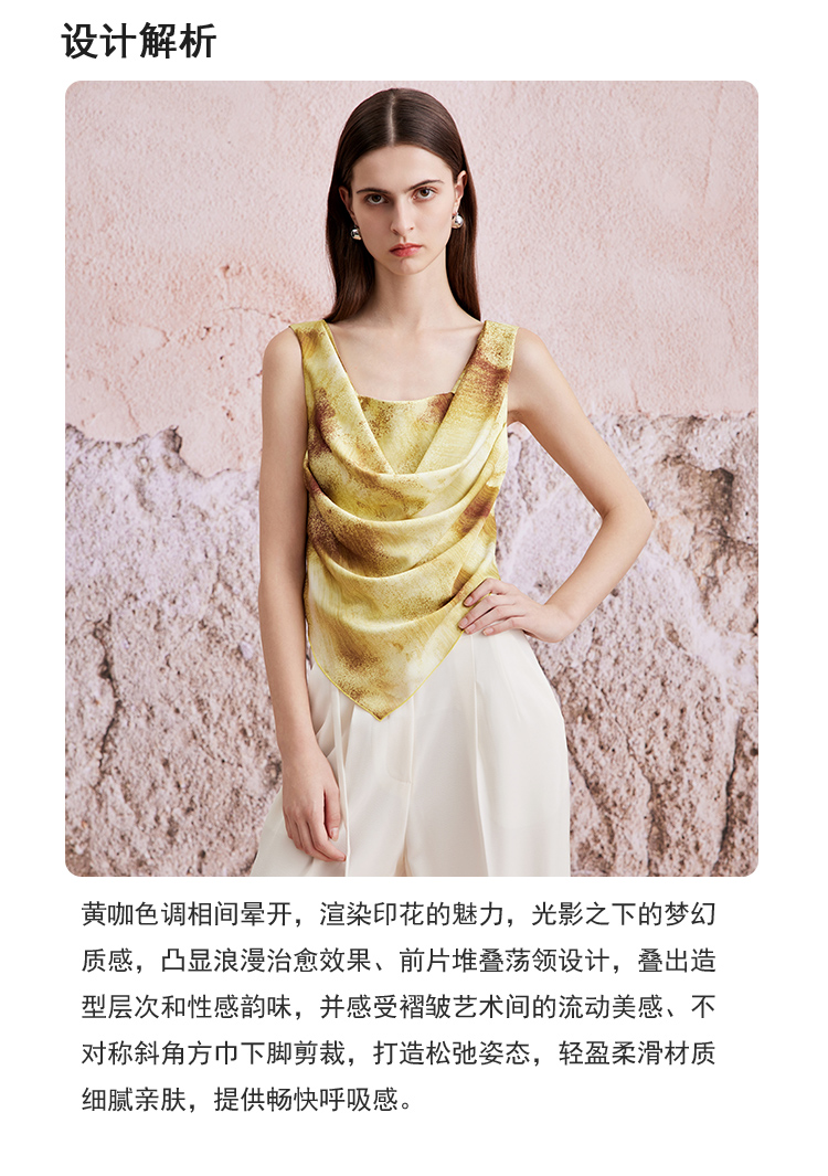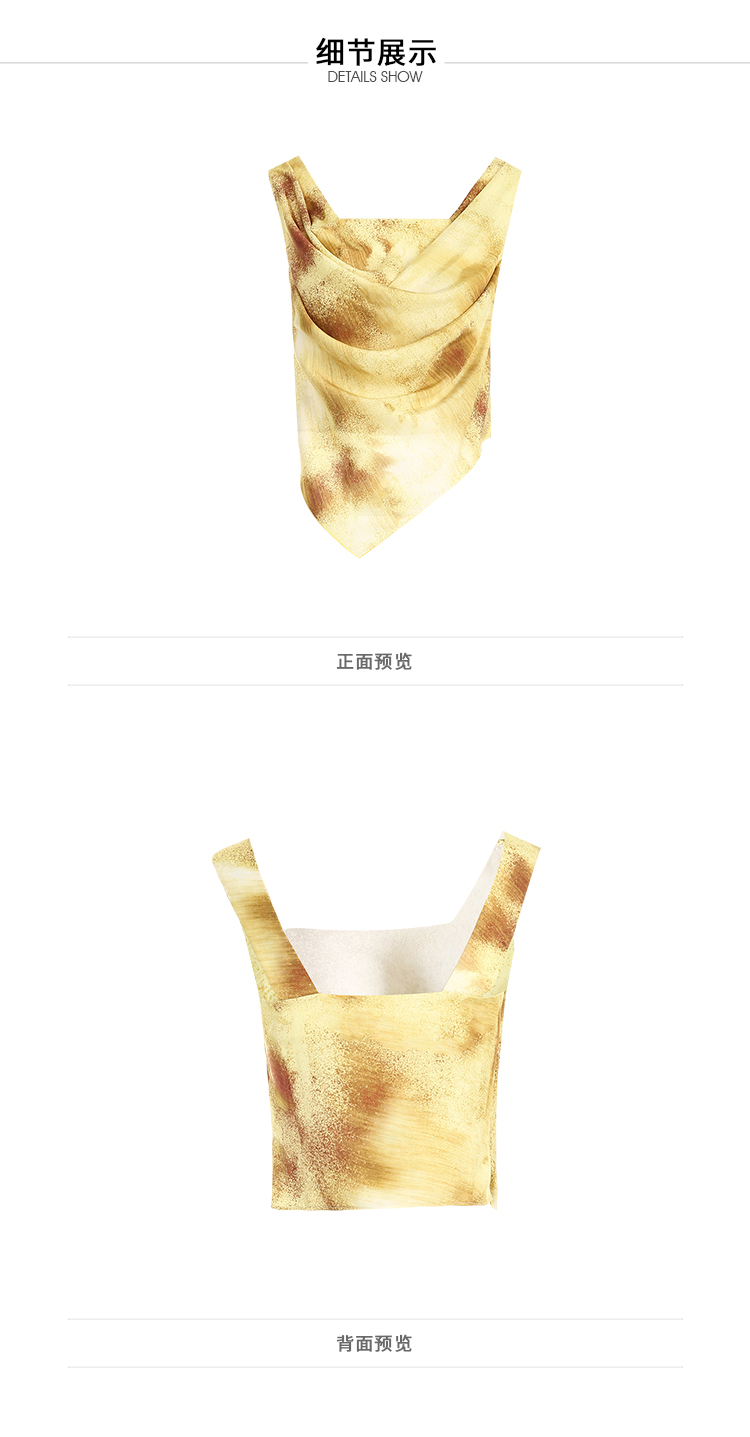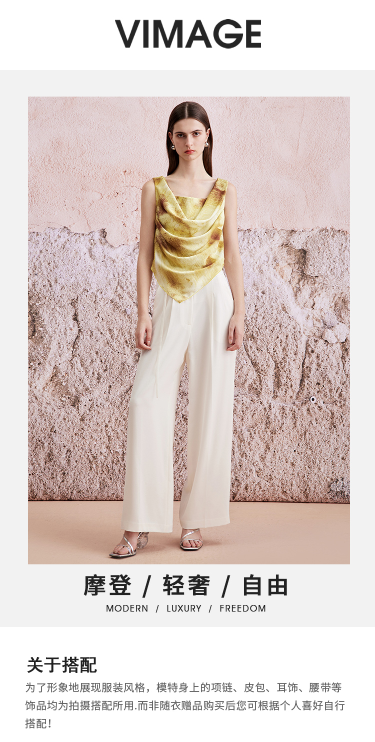 VIMAGE纬漫纪夏季新款设计感晕染印花显瘦无袖雪纺背心上衣V2113711