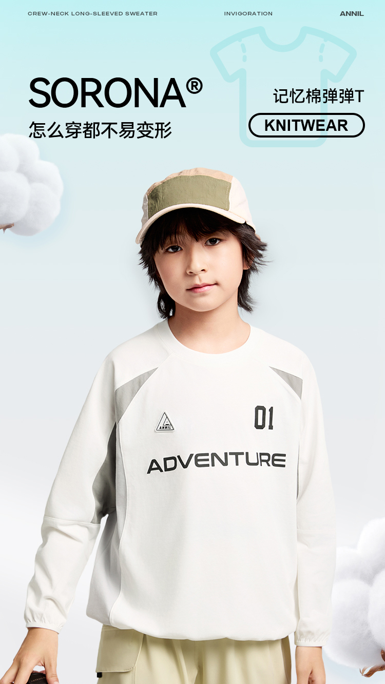 男童SORONA圆领长袖T恤春季新款安奈儿童装EB511035