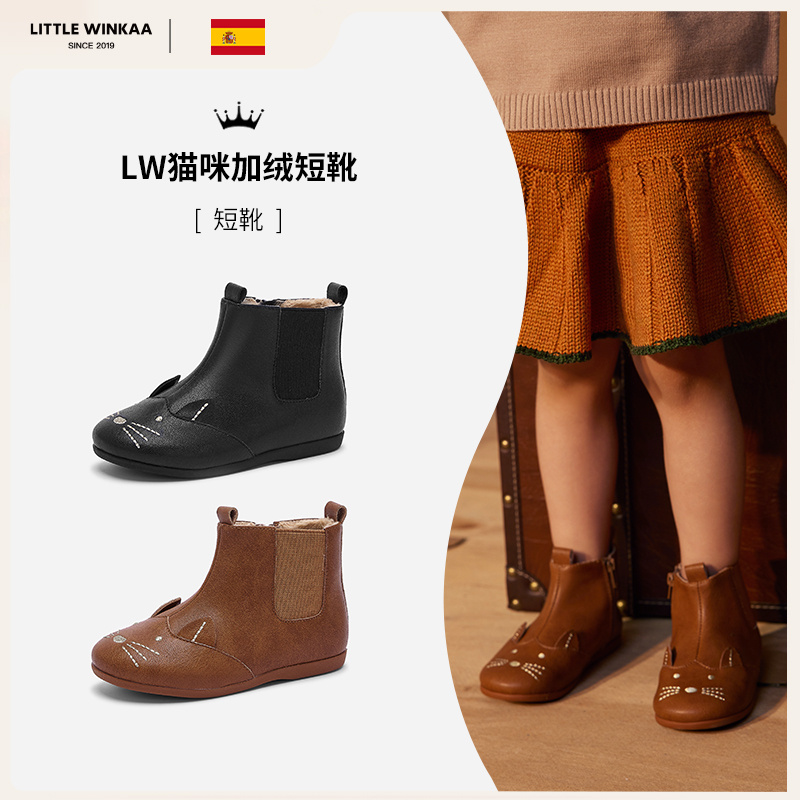 春节不打烊-西班牙little winkaa 正版高端秋冬猫咪儿童加绒皮靴保暖百搭洋气棉靴