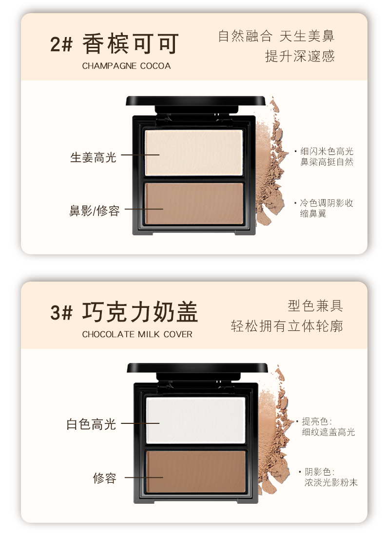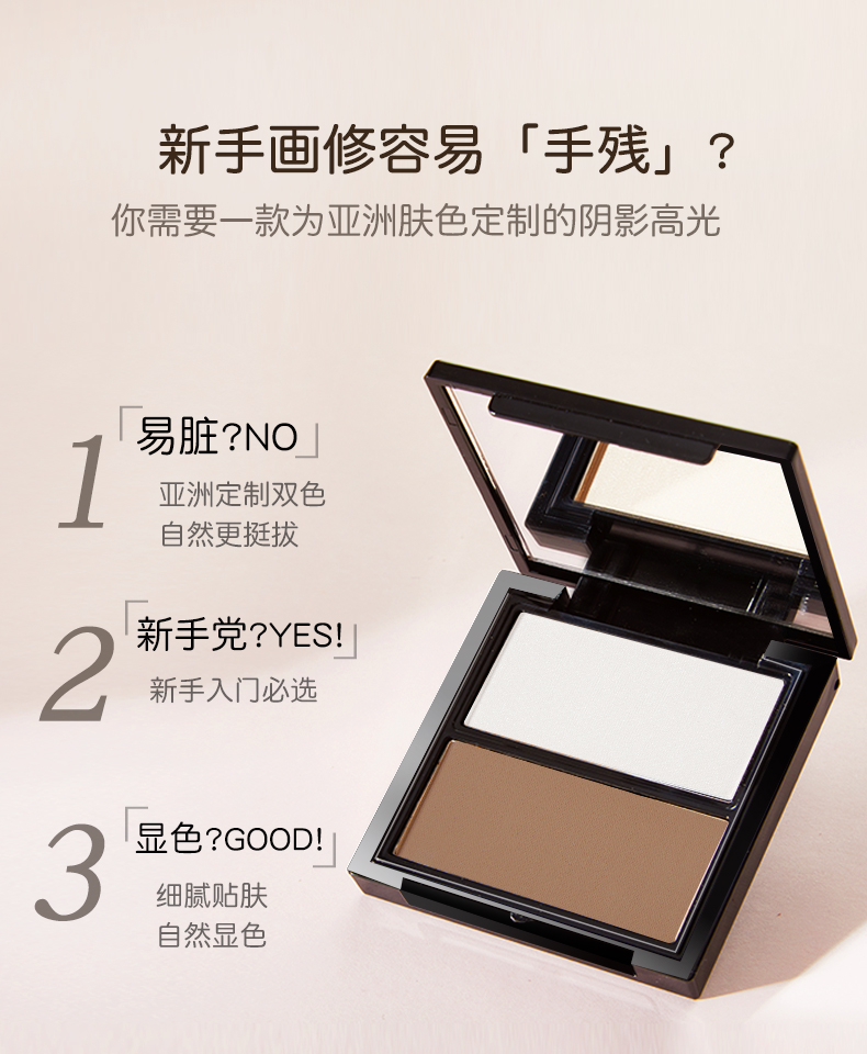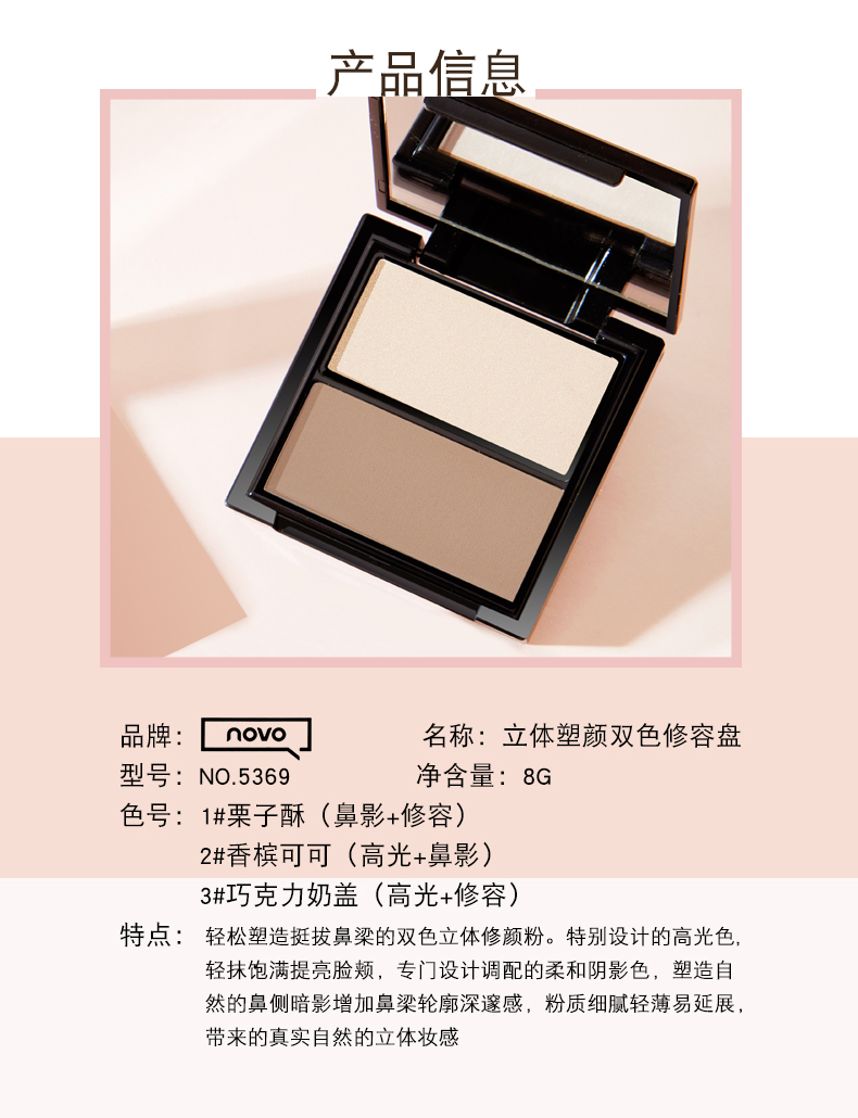 【团购秒杀】彩妆NOVO立体塑颜双色修容盘 高光修容一体盘脸部提亮鼻影阴影粉
