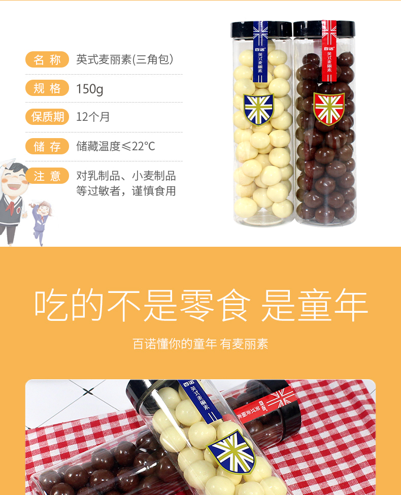 【值此一价】150g百诺麦丽素牛奶巧克力味/蓝莓/白牛奶/牛奶巧克力混合