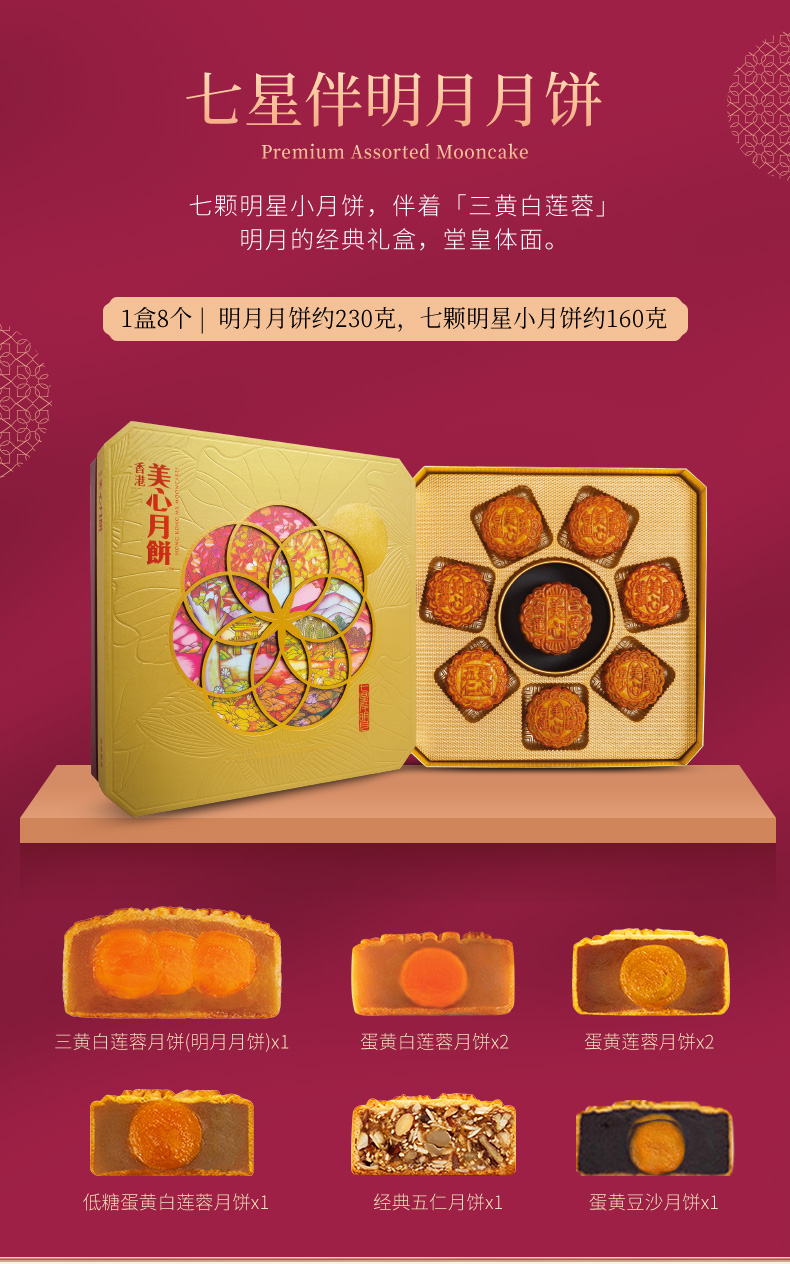 中国香港美心七星伴明月月饼礼盒1350g中秋港式糕点零食