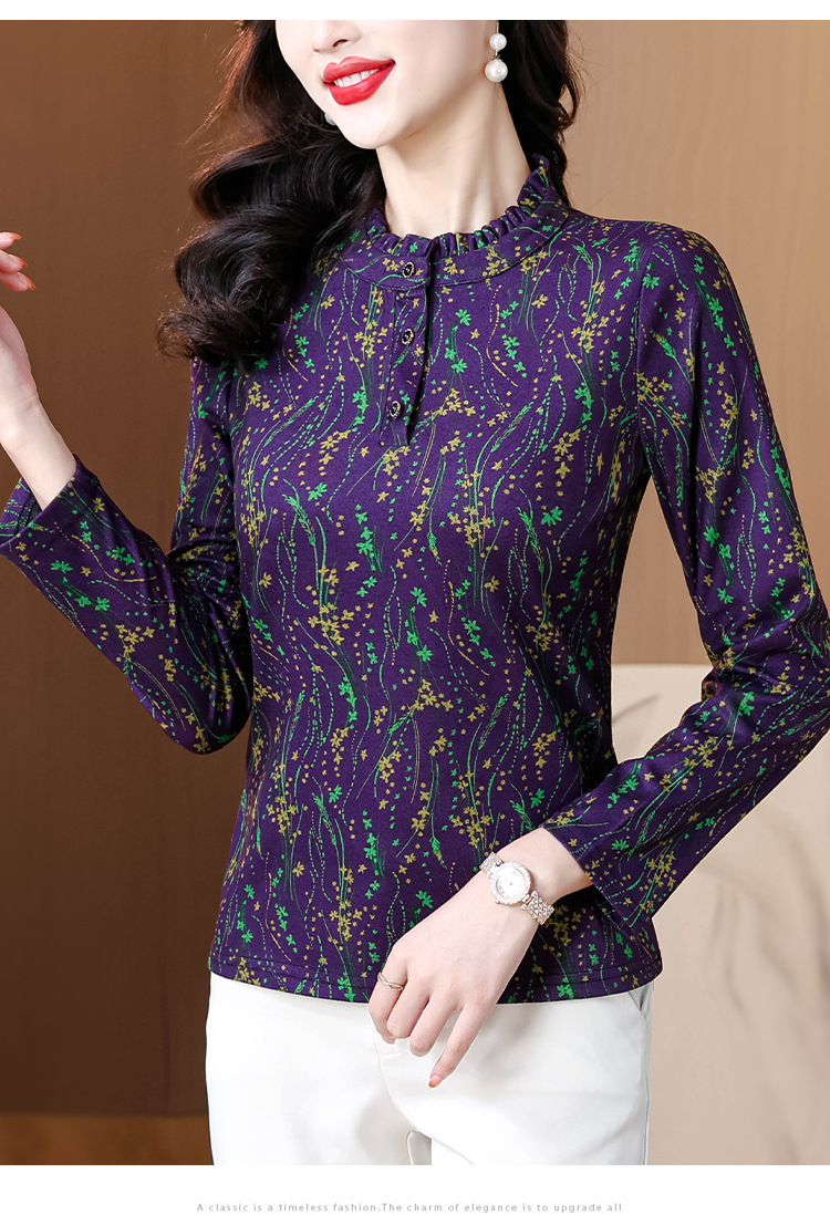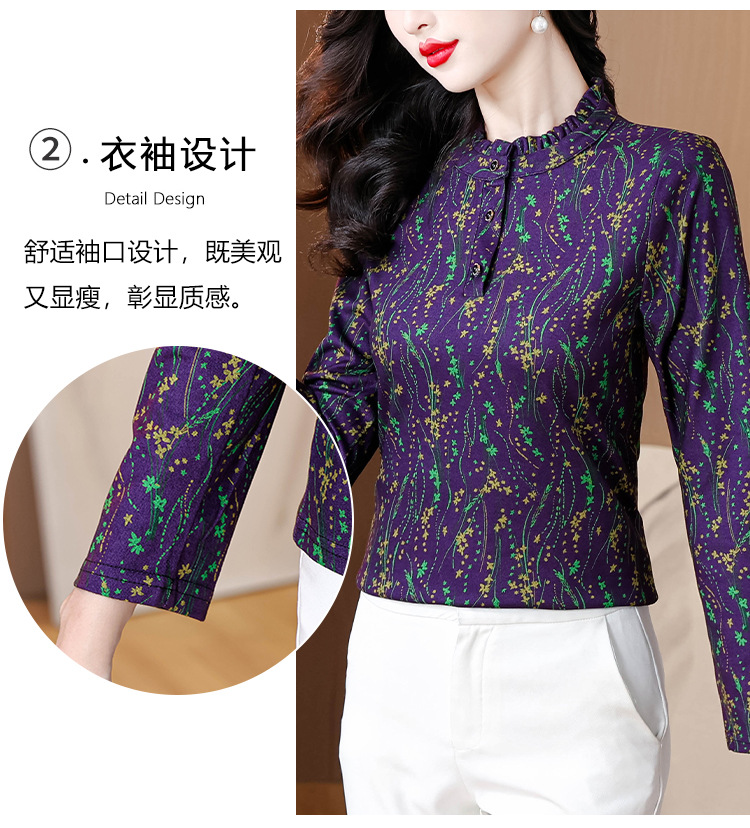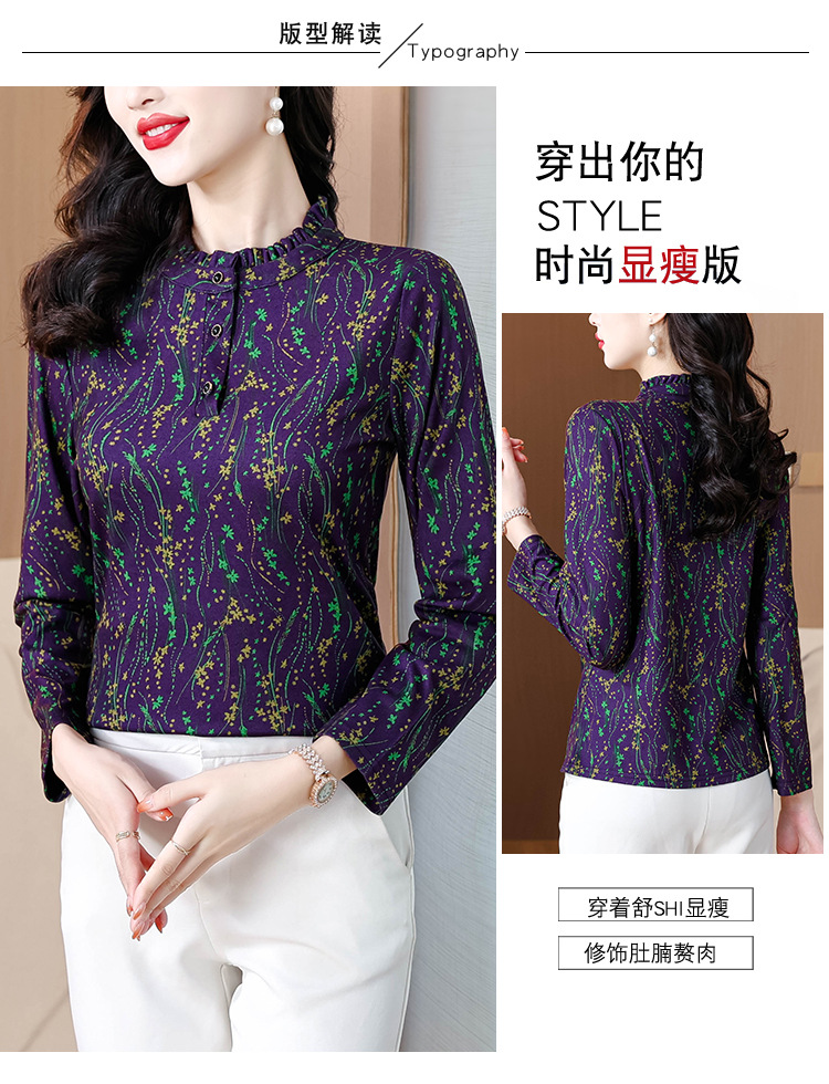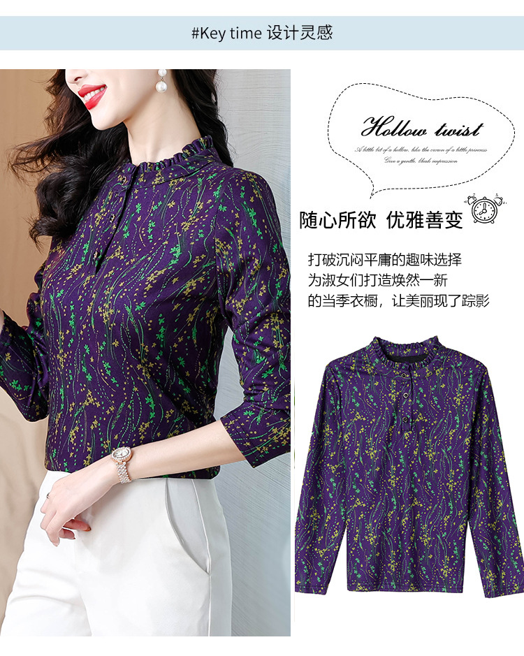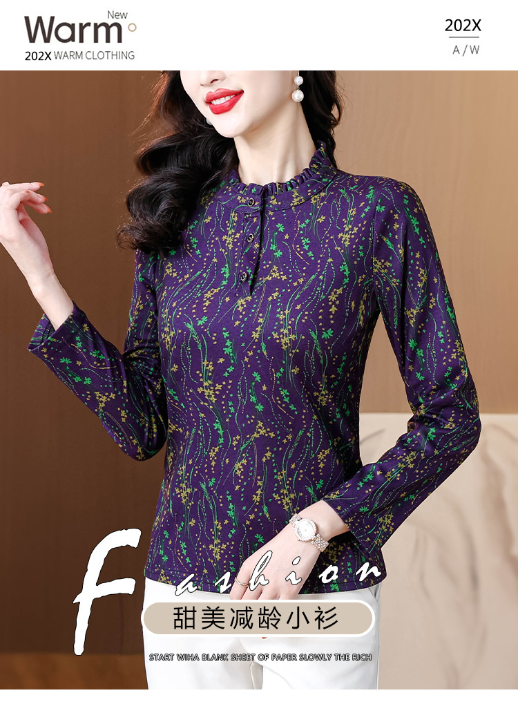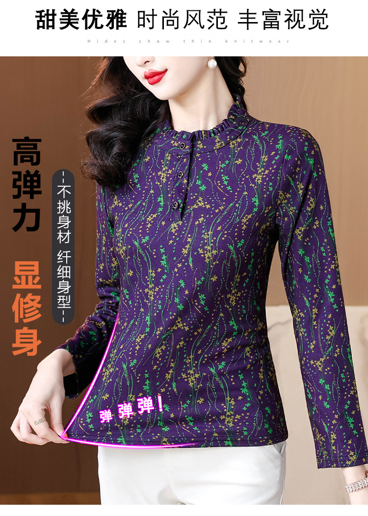 KQL E333M3133洋气百搭长袖立领小衫减龄T恤大码