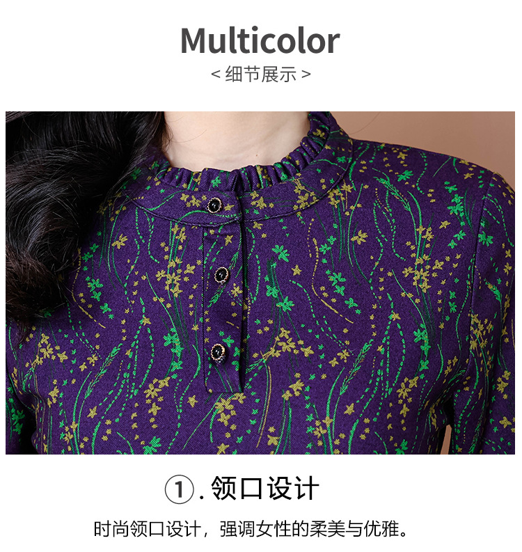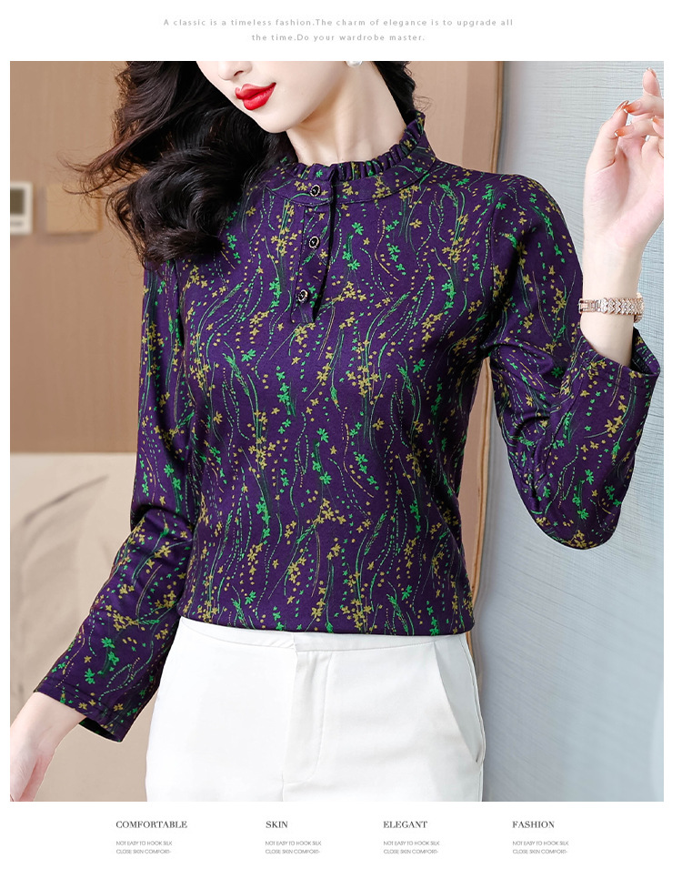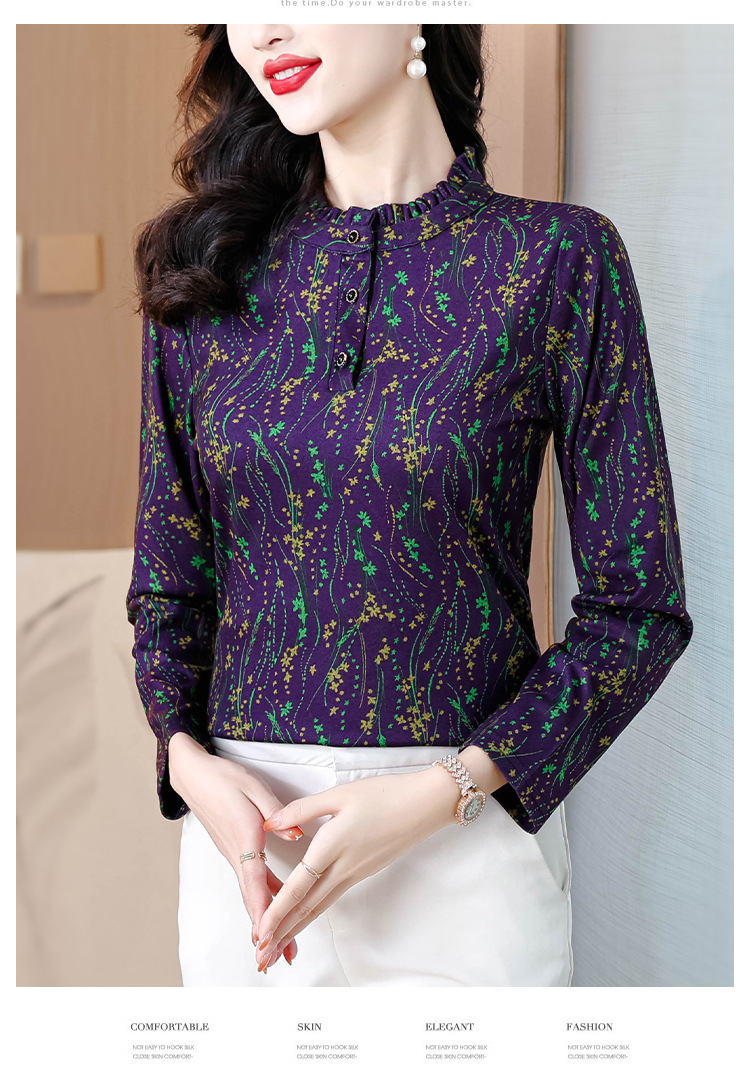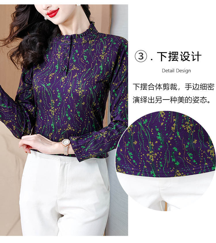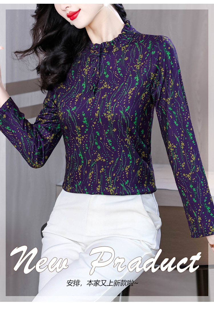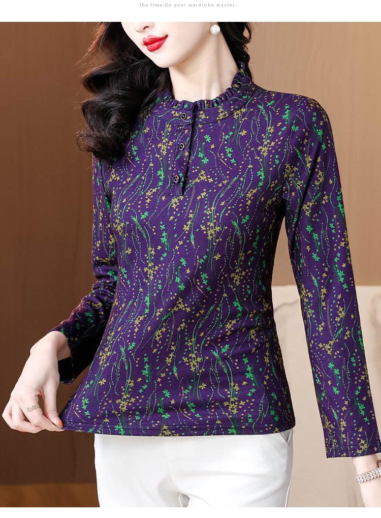KQL E333M3133洋气百搭长袖立领小衫减龄T恤大码