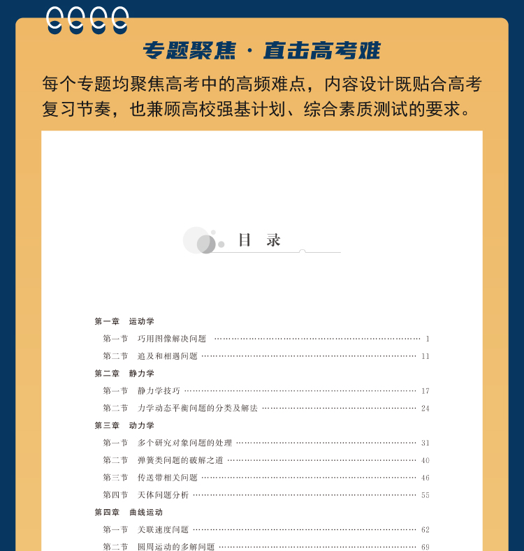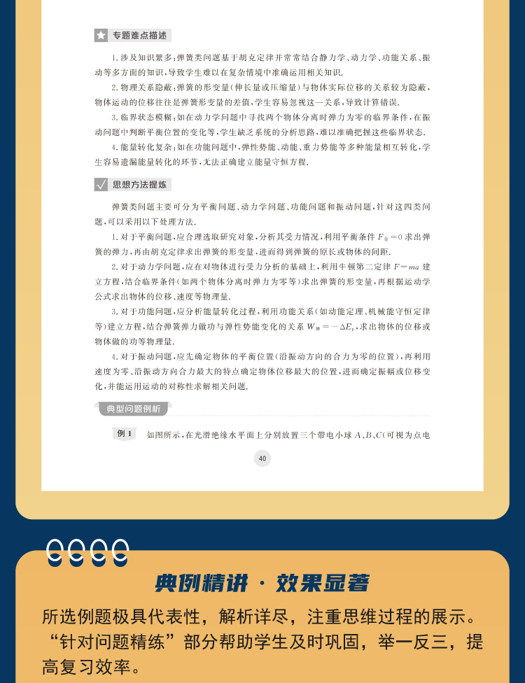 很多学生在完成一轮复习后,往往缺乏具有指导性的二轮复习材料,市面上的二轮复习材料往往将知识内容按单元体系单独呈现,不具有融合性。本书旨在设计一套更合理的二轮复习体系,在一轮复习的基础上,将高中物理中的重难点专题进行融合整理,以难点专题的形式推出,帮助学生更好地梳理高考物理中的综合难题,培养他们将知识融合贯通,将方法融入日常解题中的综合素养,帮助学生在高考前攻克难点专题,提升自身的综合素质。同时,本书也适合各学校老师用于二轮复习备课。