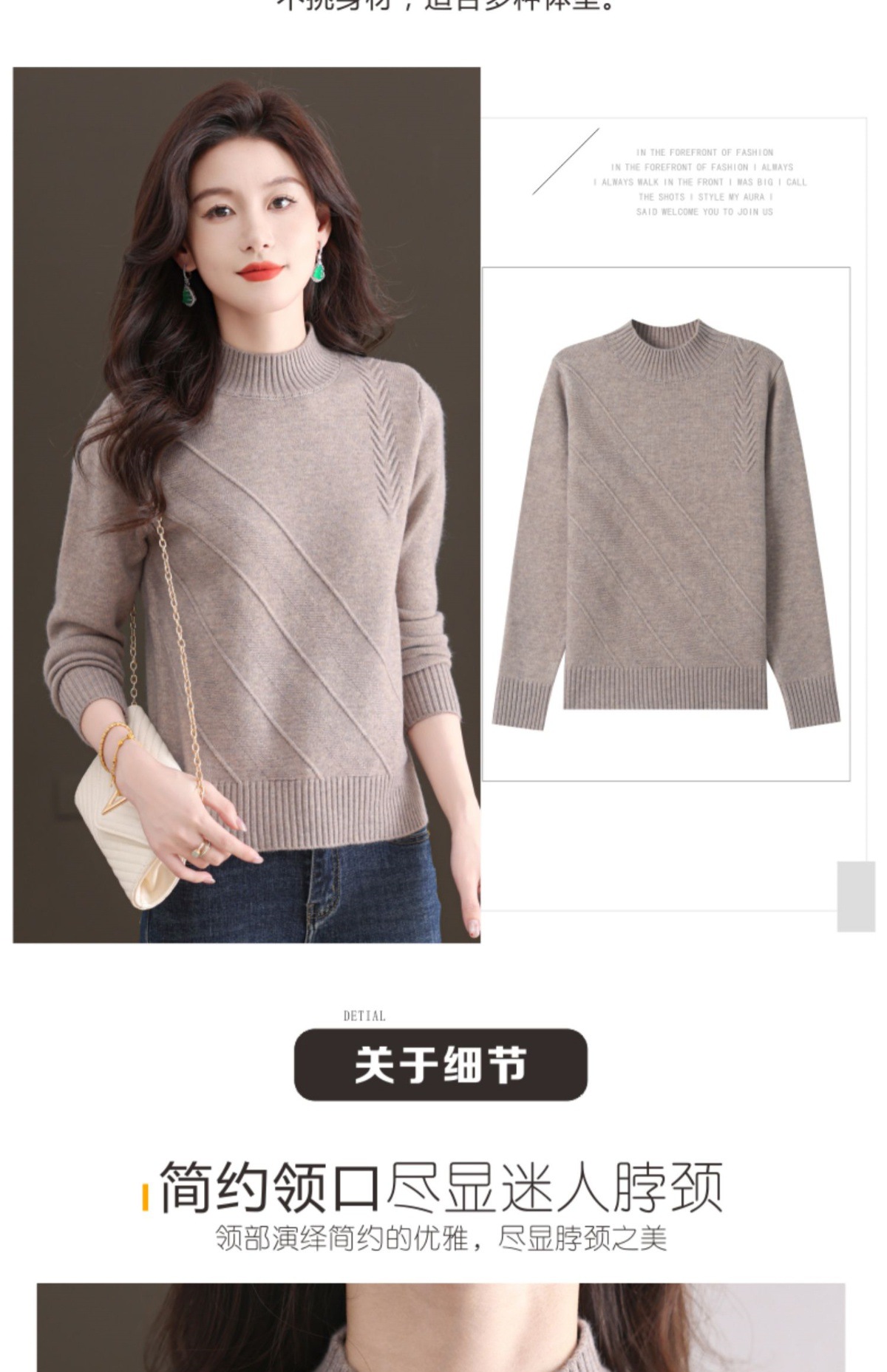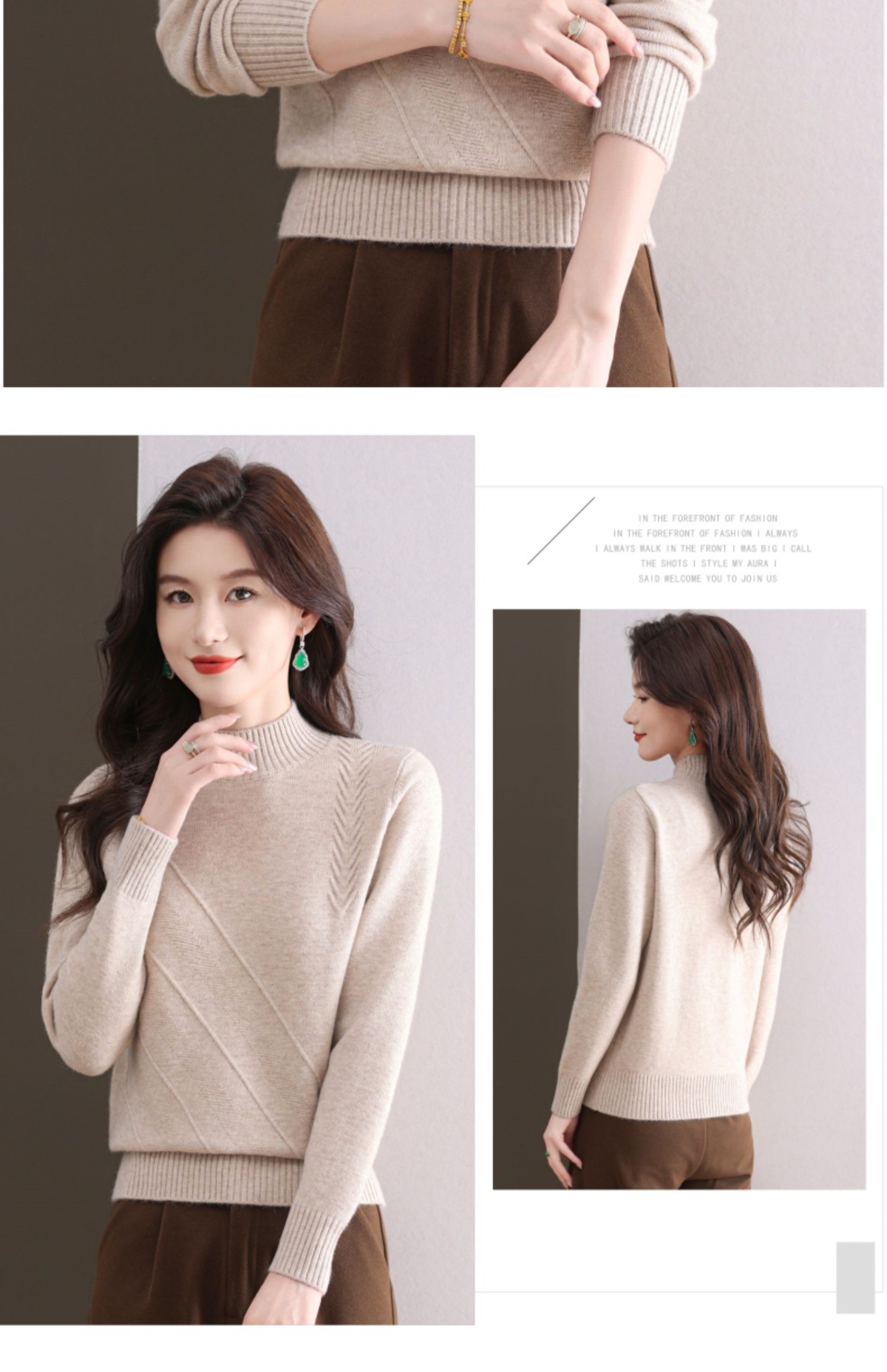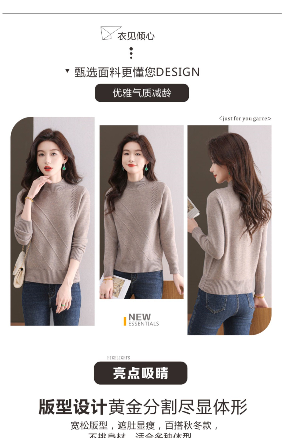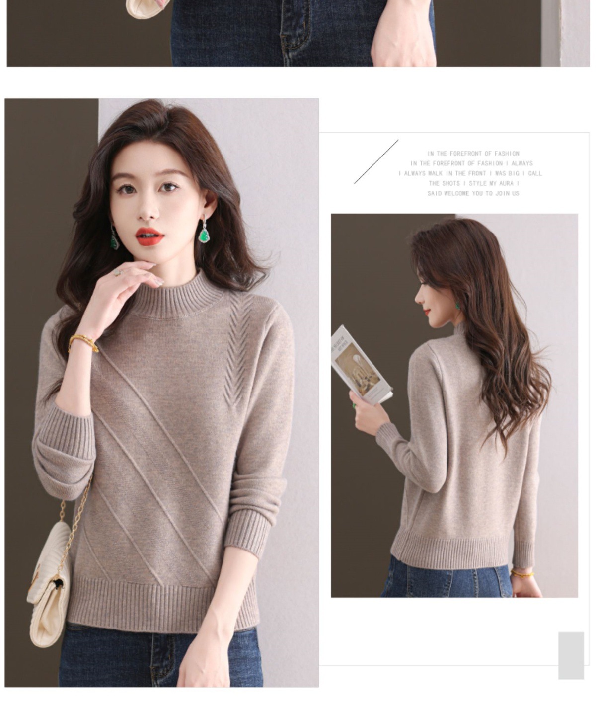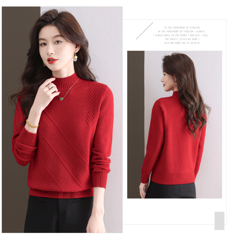 CC-103-1668半高领打底衫女士秋冬时尚洋气韩版短款针织衫2024新款内搭毛衣女