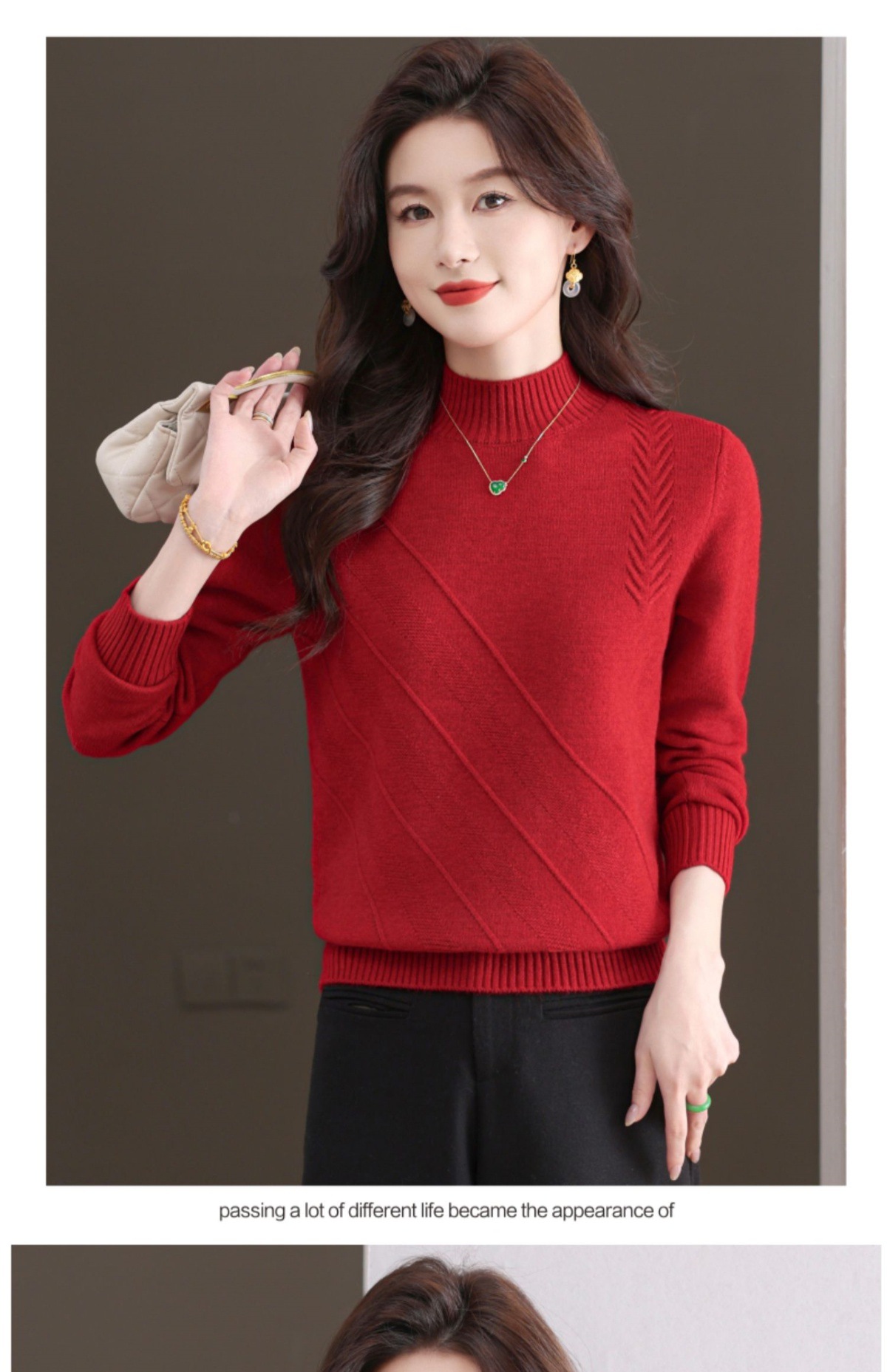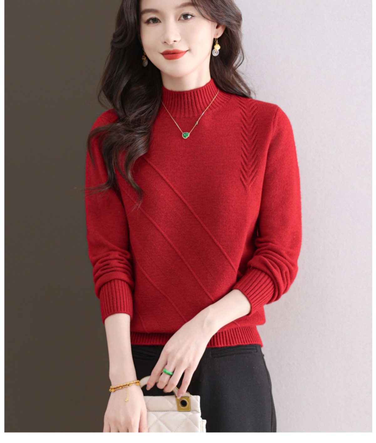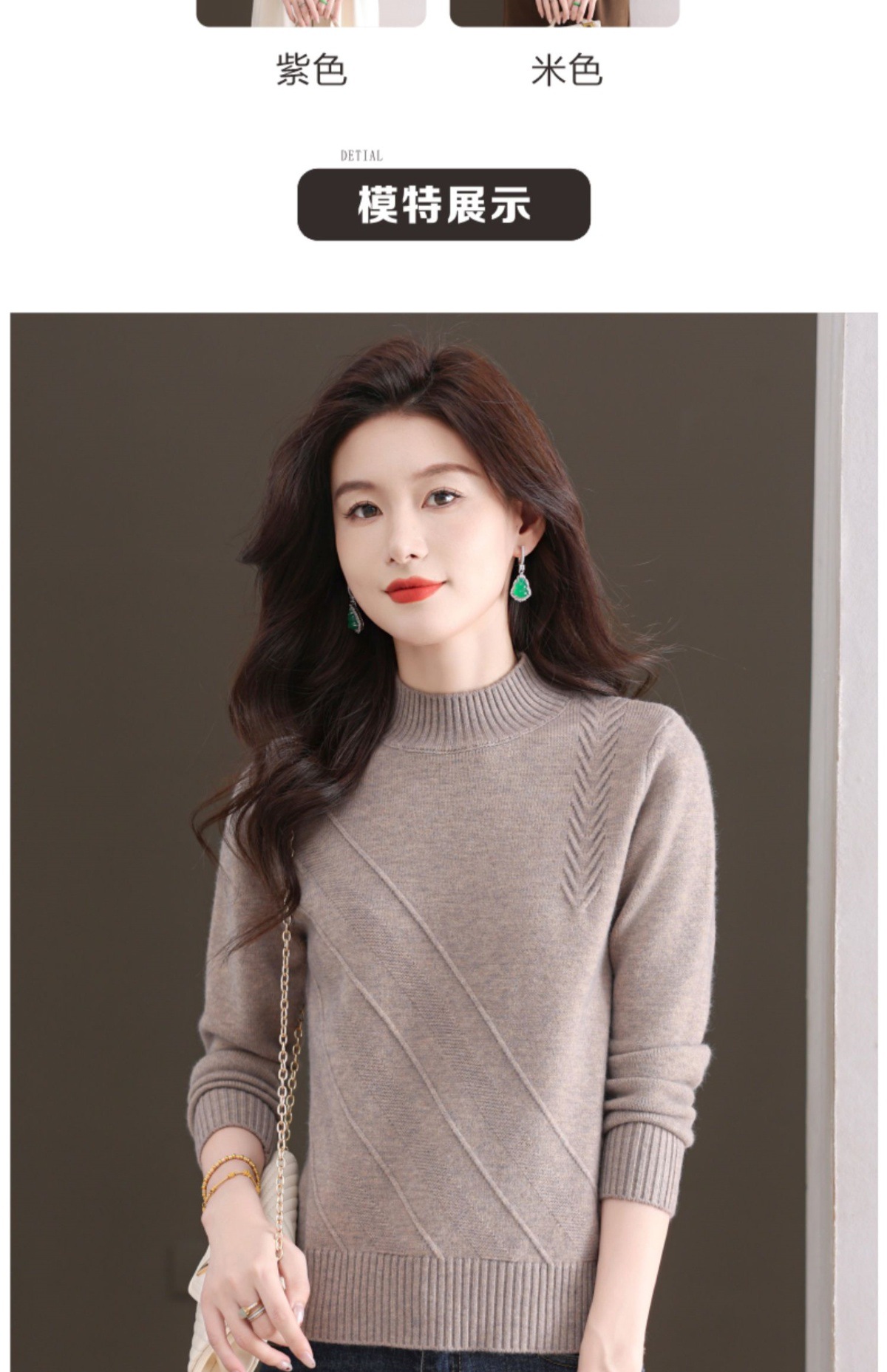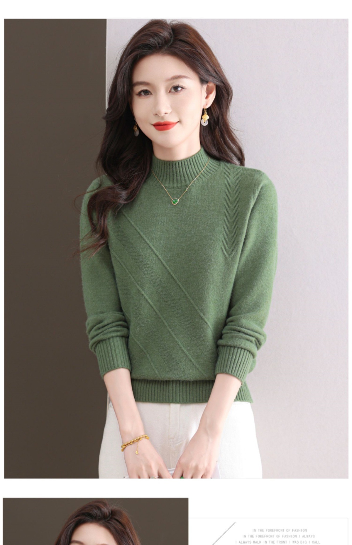CC-103-1668半高领打底衫女士秋冬时尚洋气韩版短款针织衫2024新款内搭毛衣女