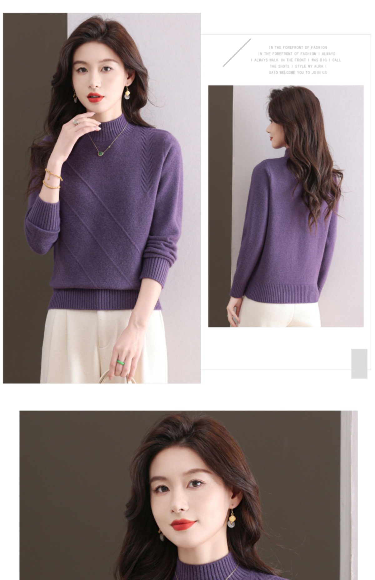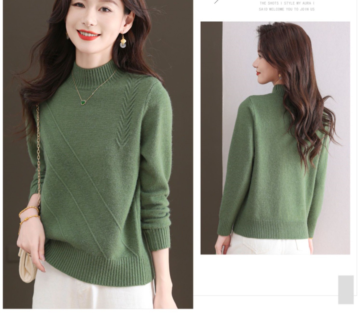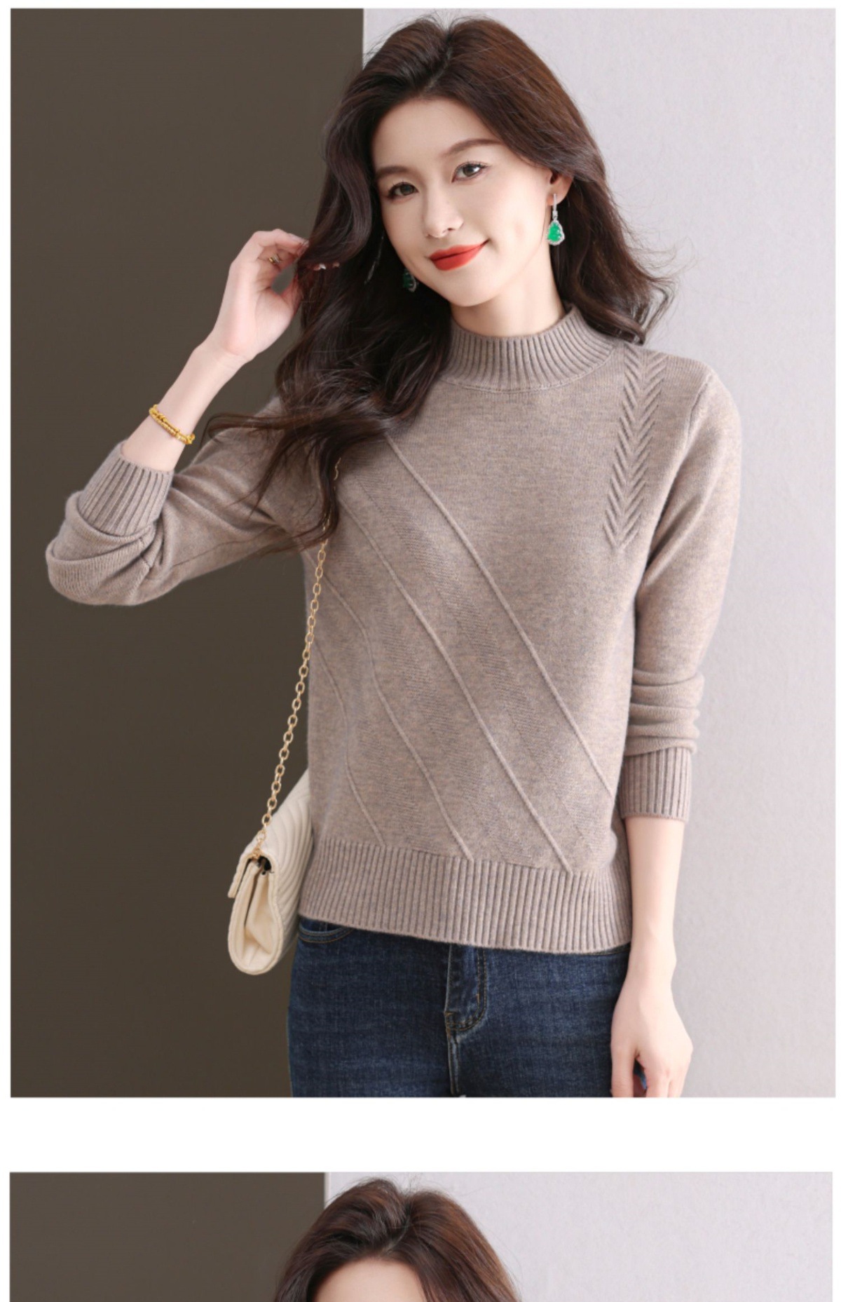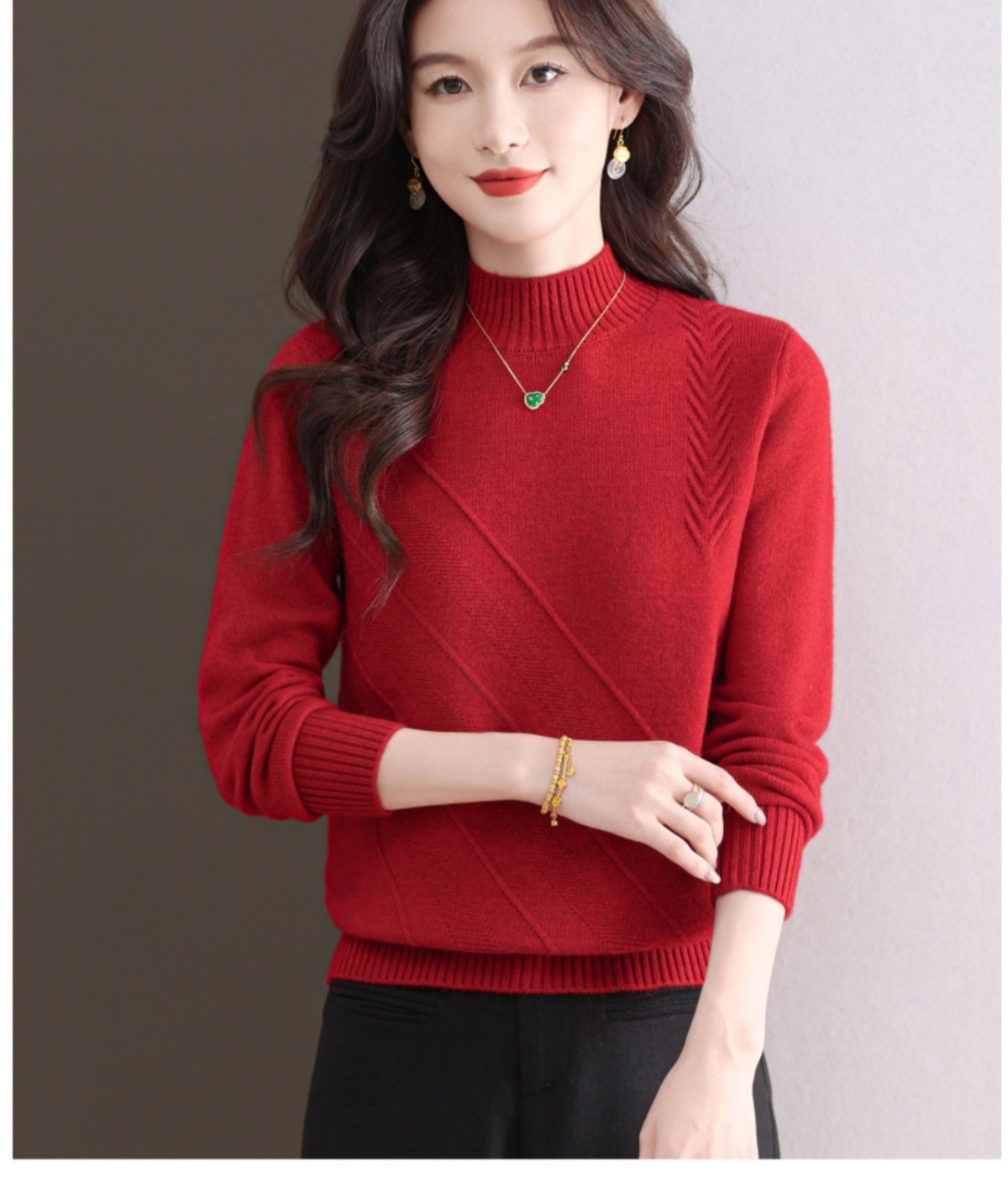 CC-103-1668半高领打底衫女士秋冬时尚洋气韩版短款针织衫2024新款内搭毛衣女