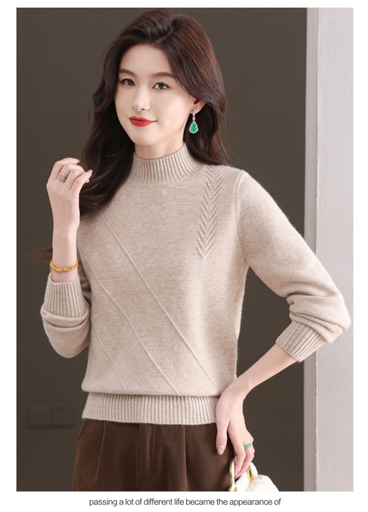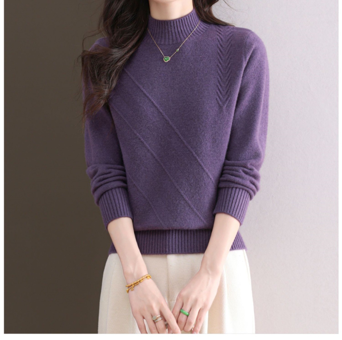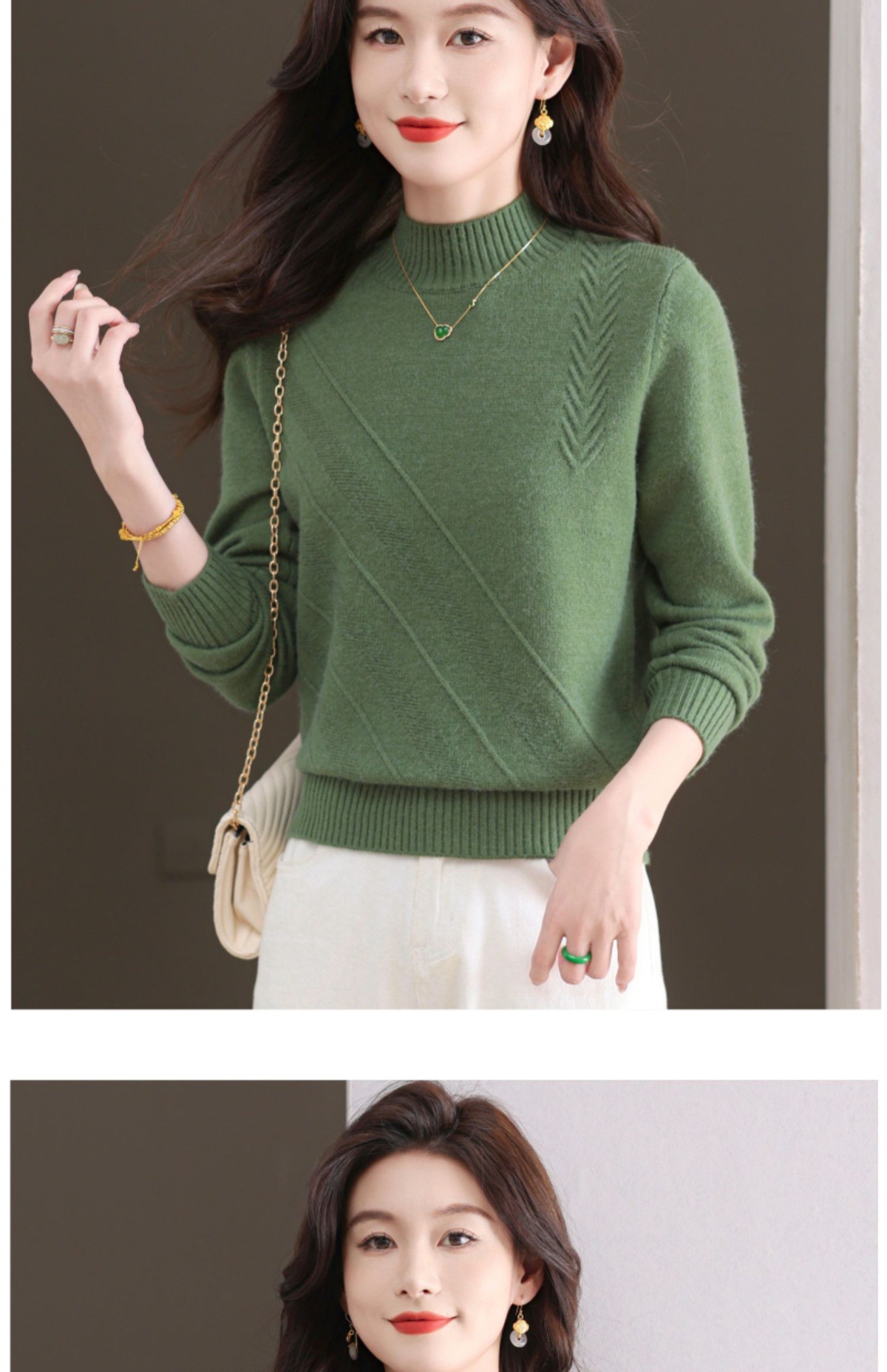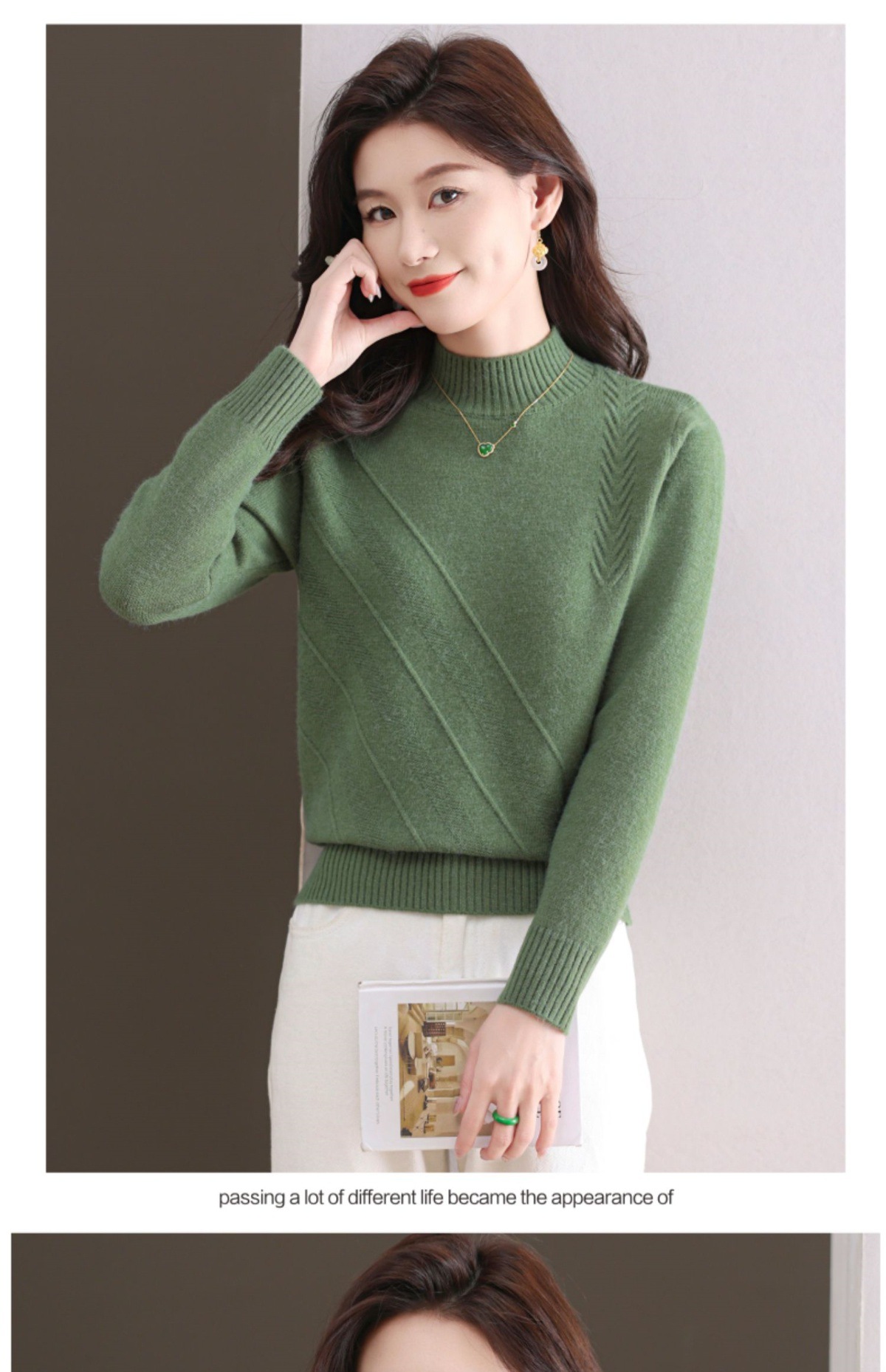 CC-103-1668半高领打底衫女士秋冬时尚洋气韩版短款针织衫2024新款内搭毛衣女