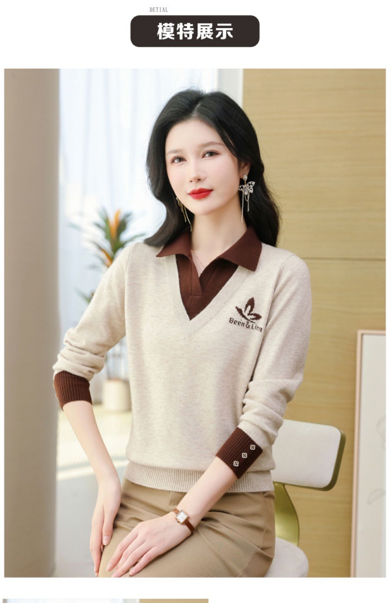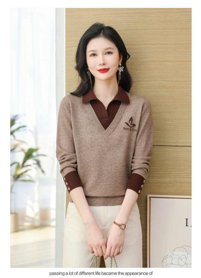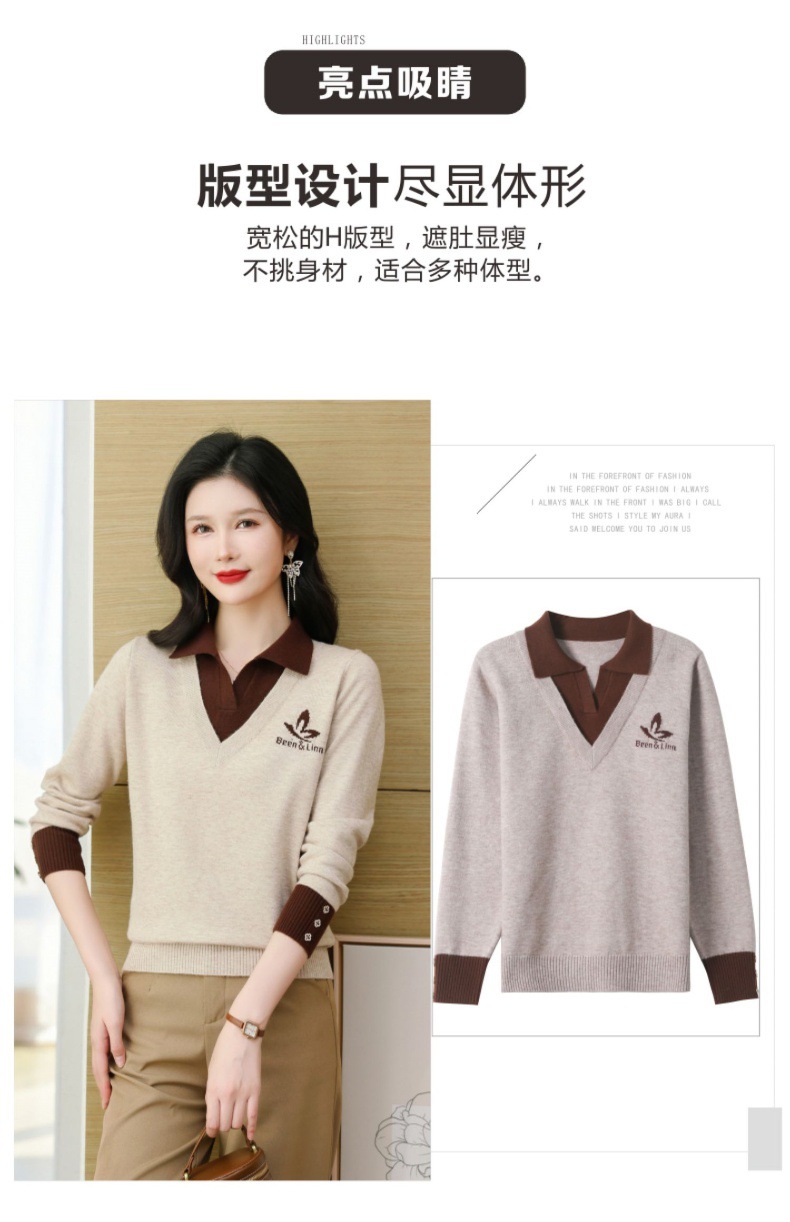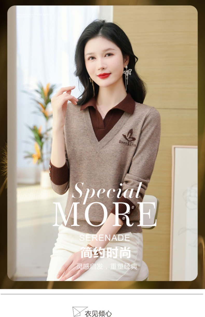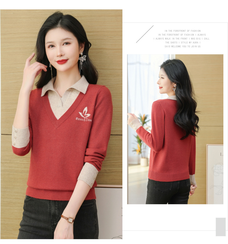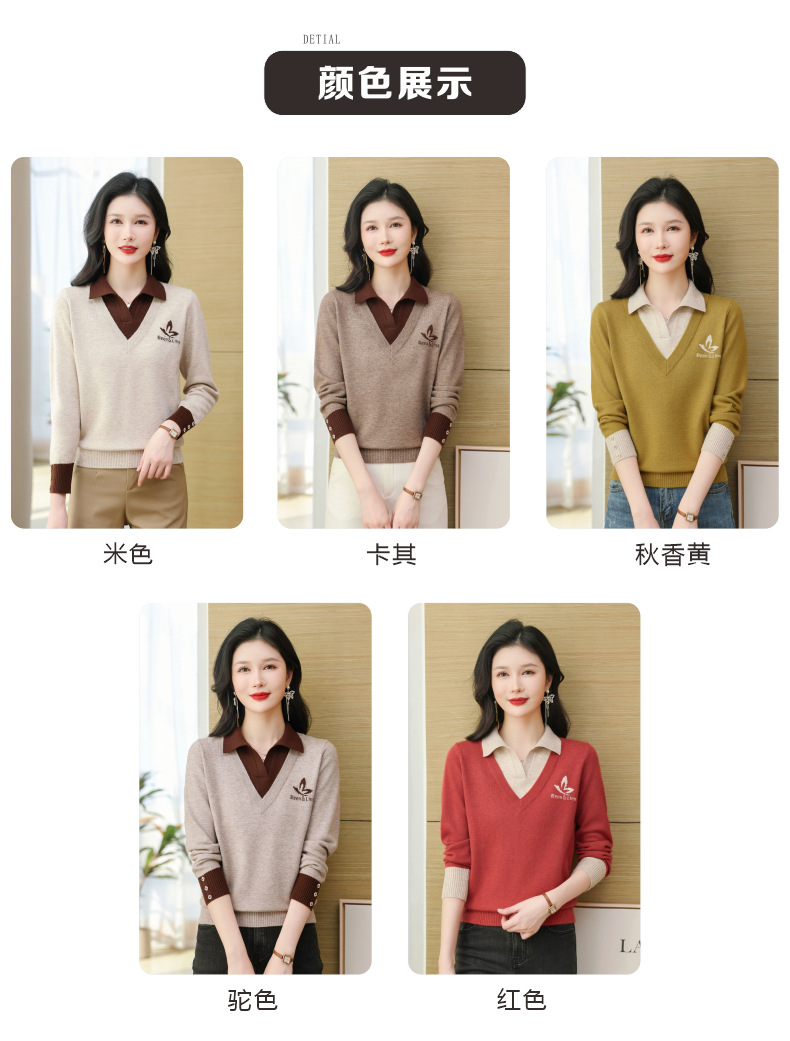 CC-101-51855假两件针织衫女春秋季毛衣2024年新款翻领长袖打底上衣设计感小众
