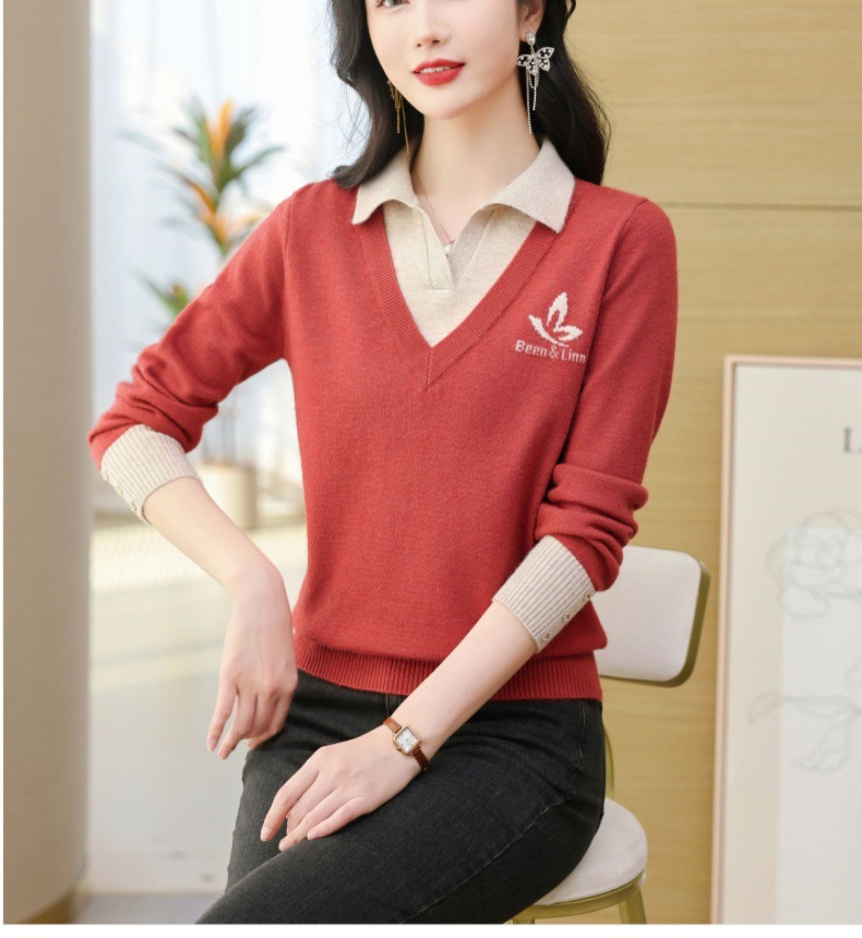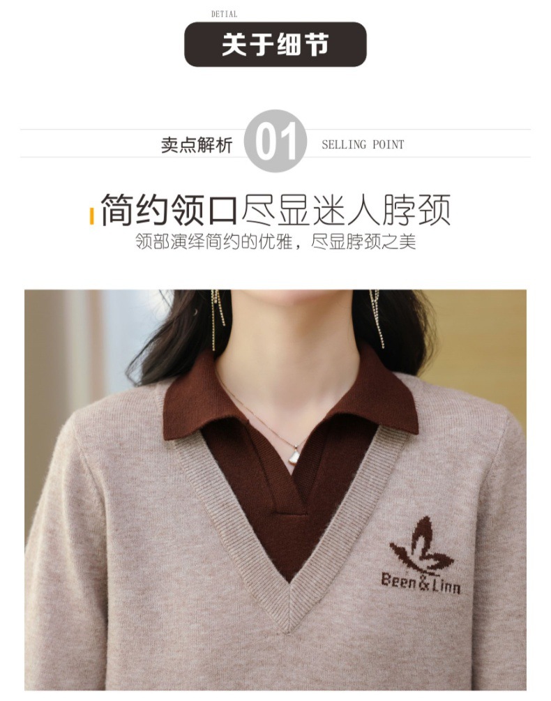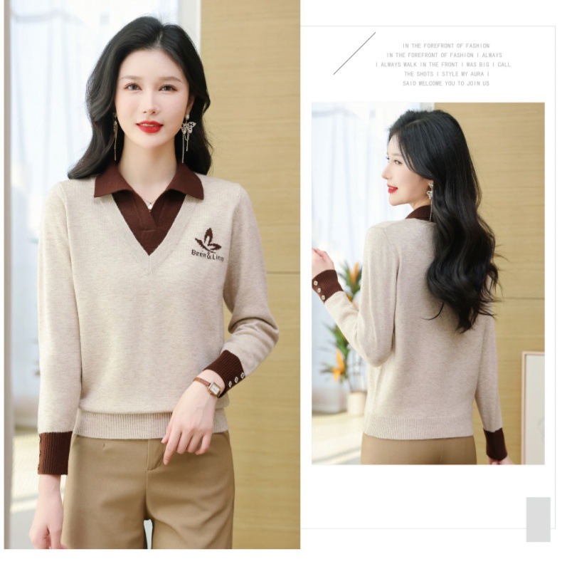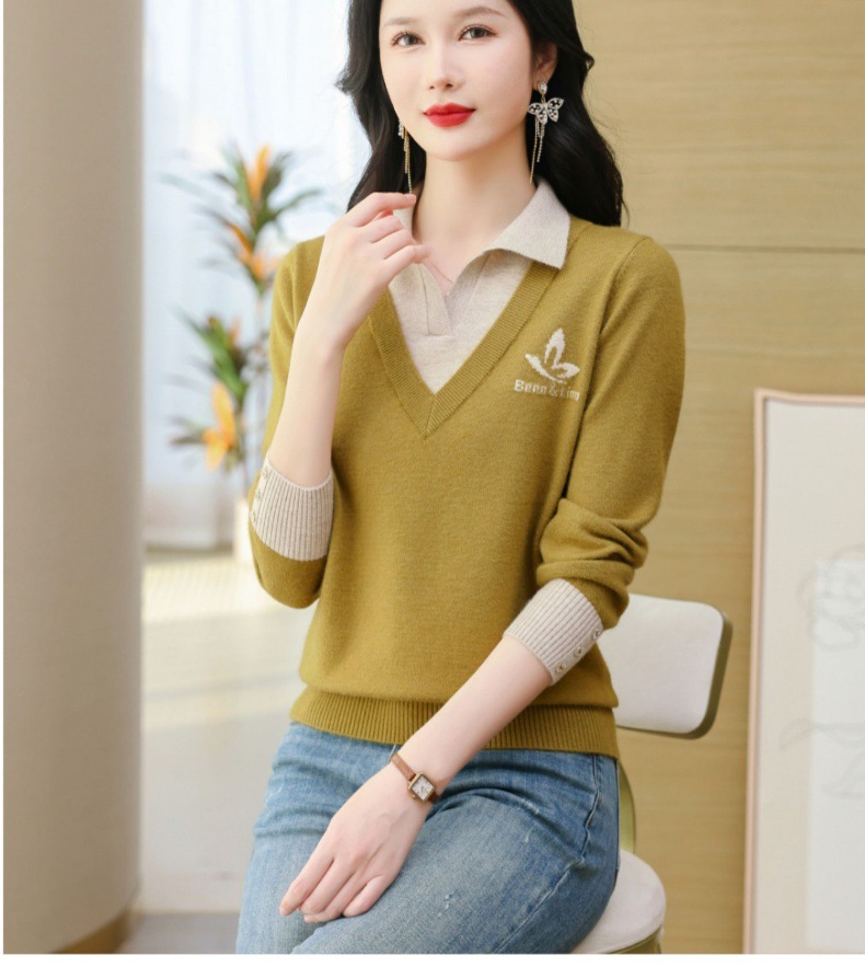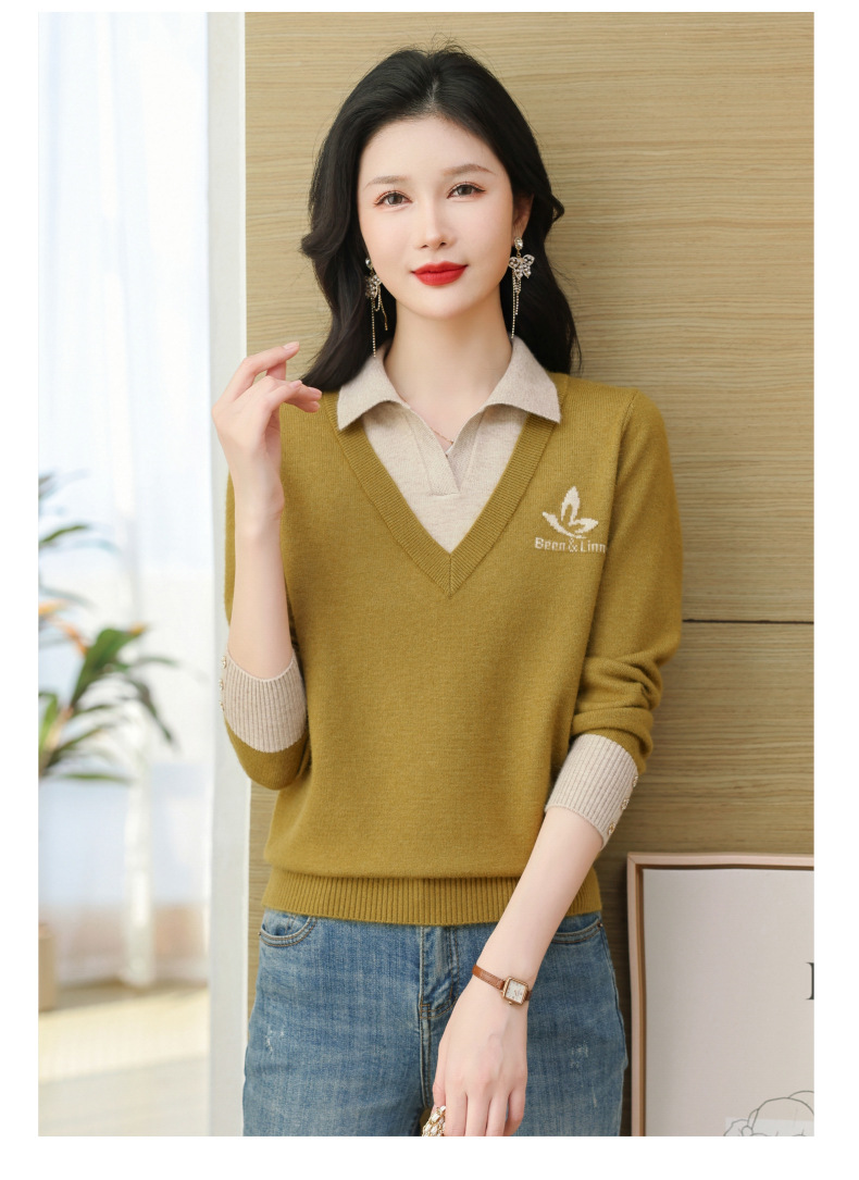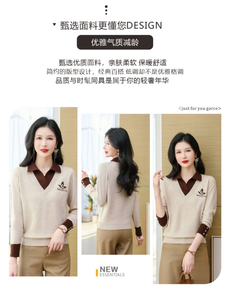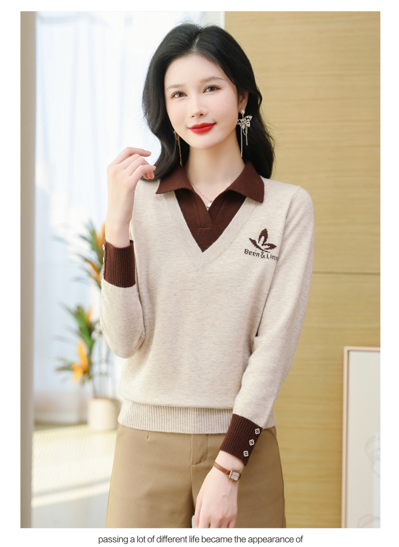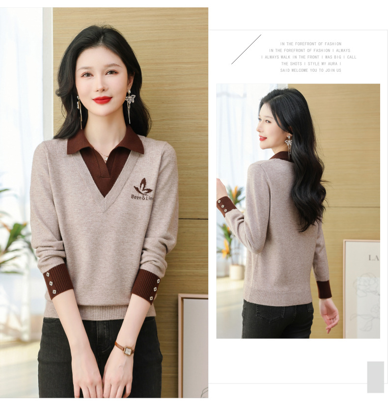 CC-101-51855假两件针织衫女春秋季毛衣2024年新款翻领长袖打底上衣设计感小众