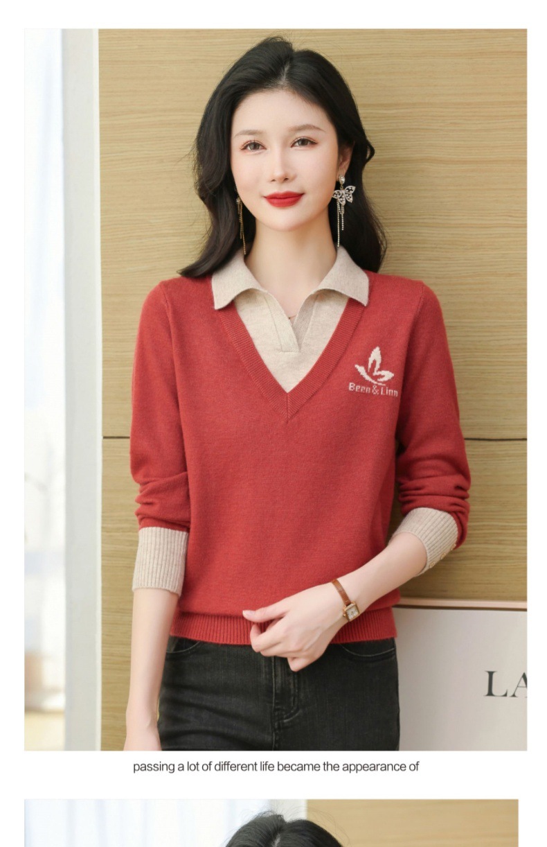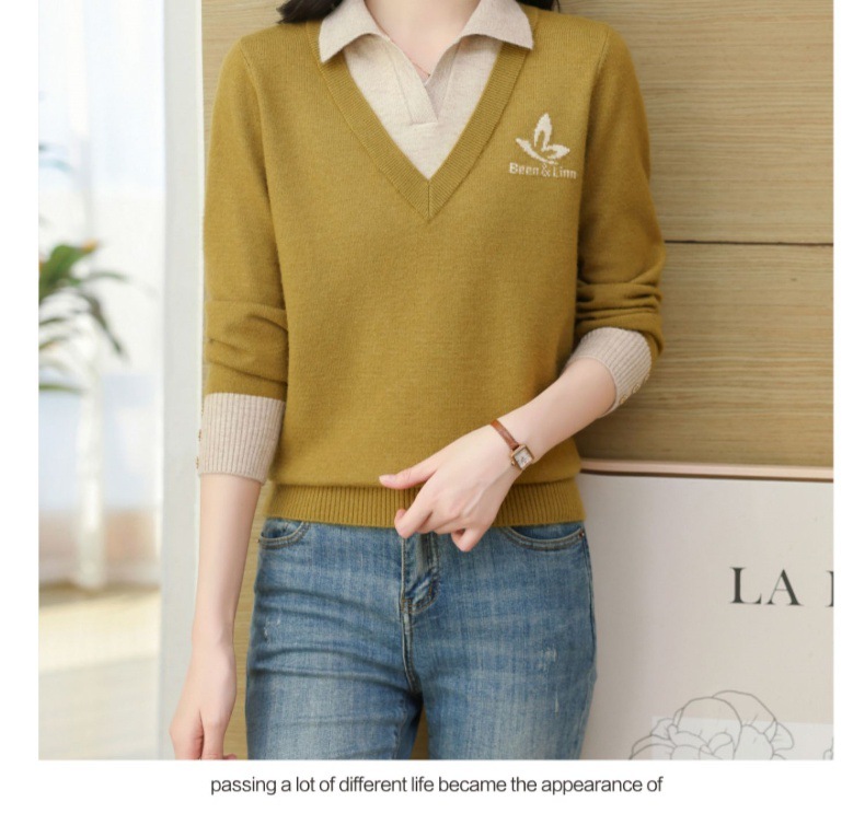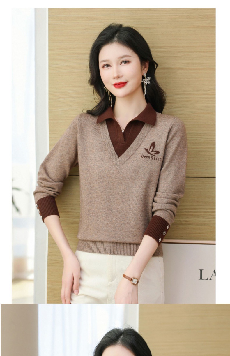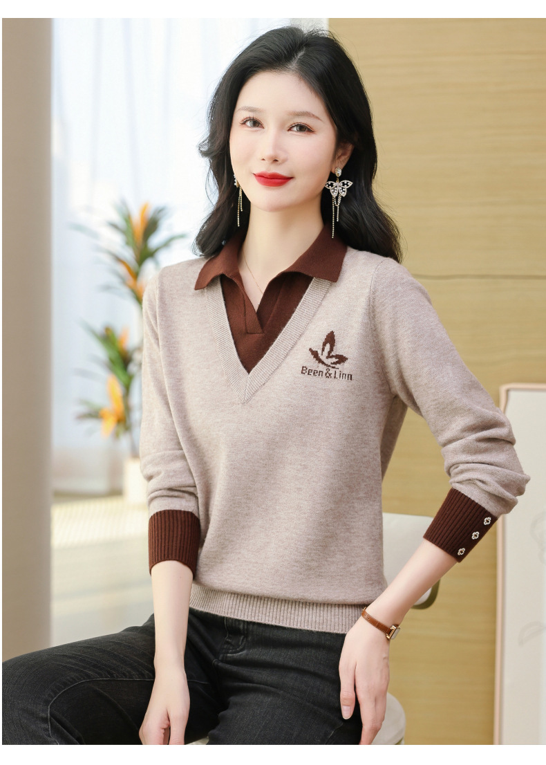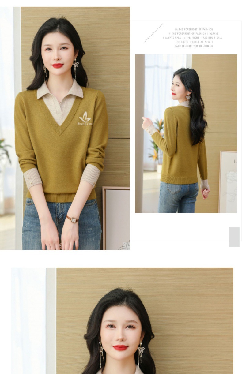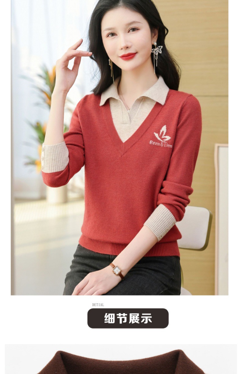 CC-101-51855假两件针织衫女春秋季毛衣2024年新款翻领长袖打底上衣设计感小众