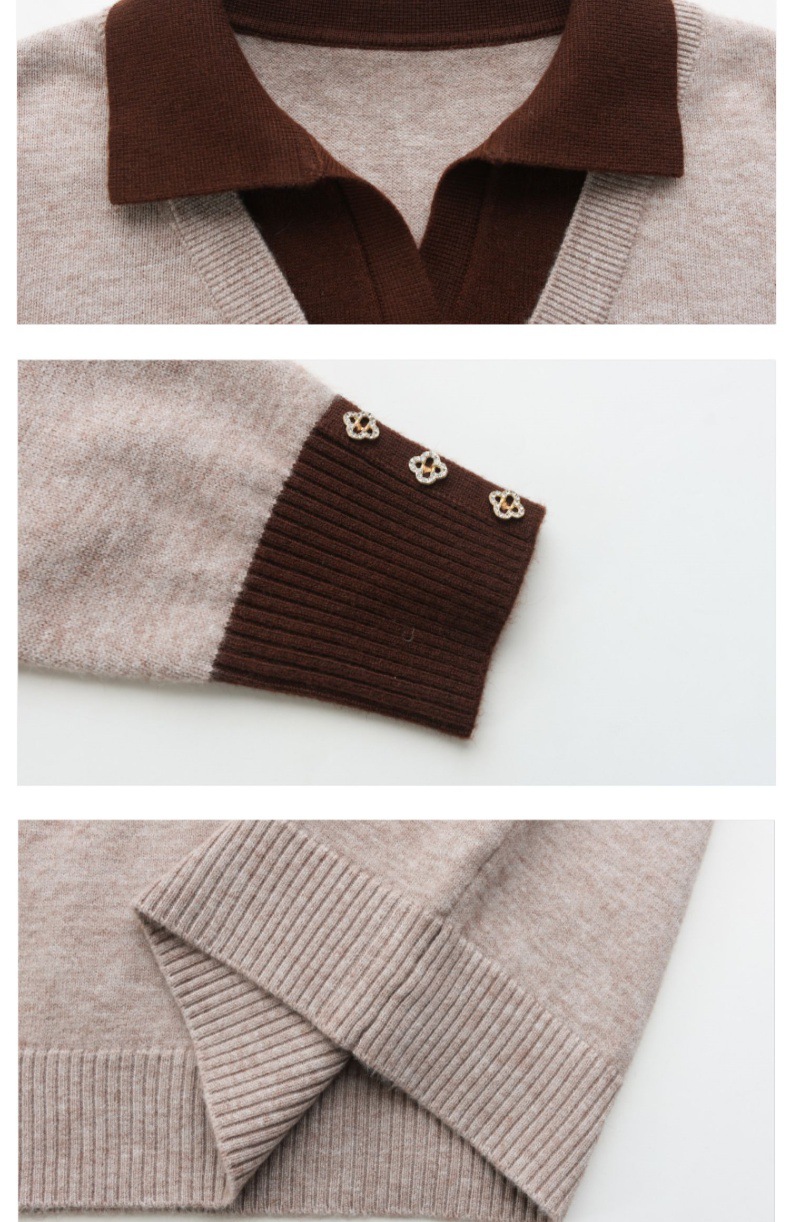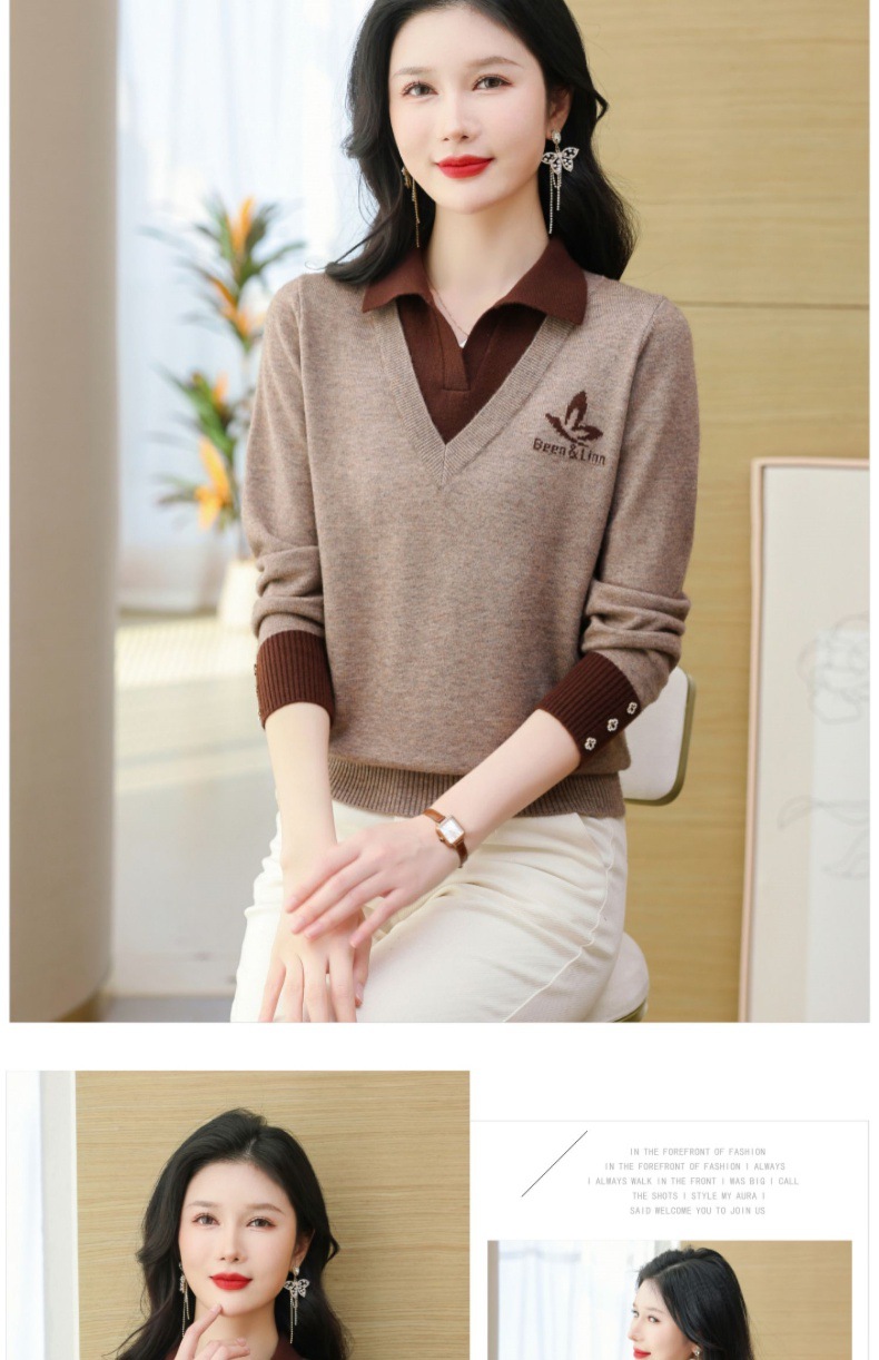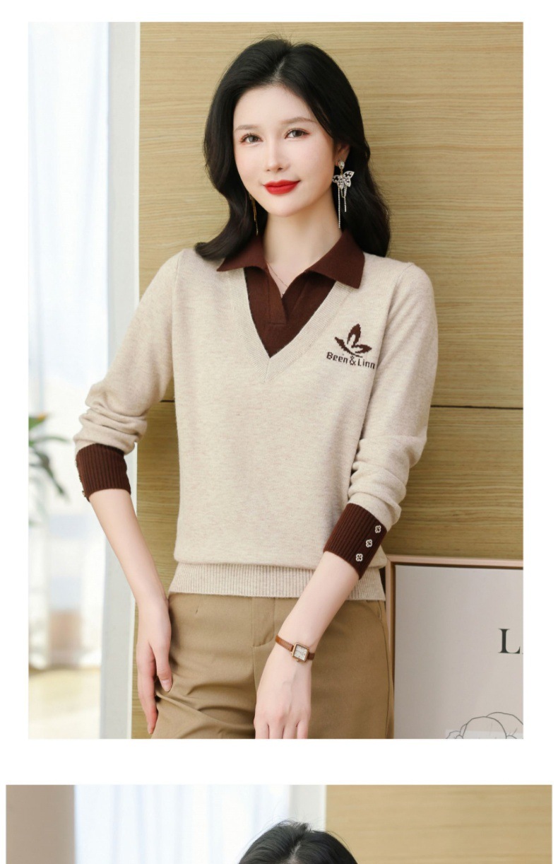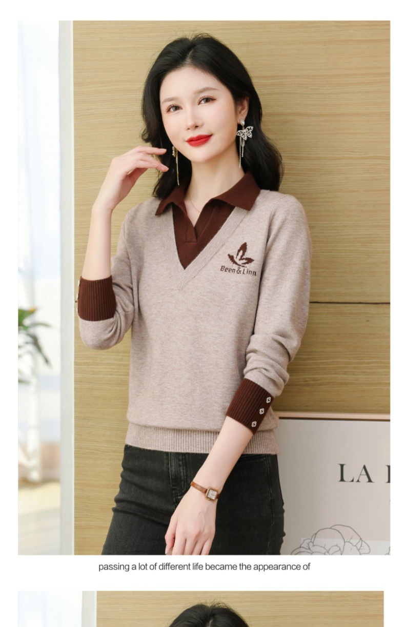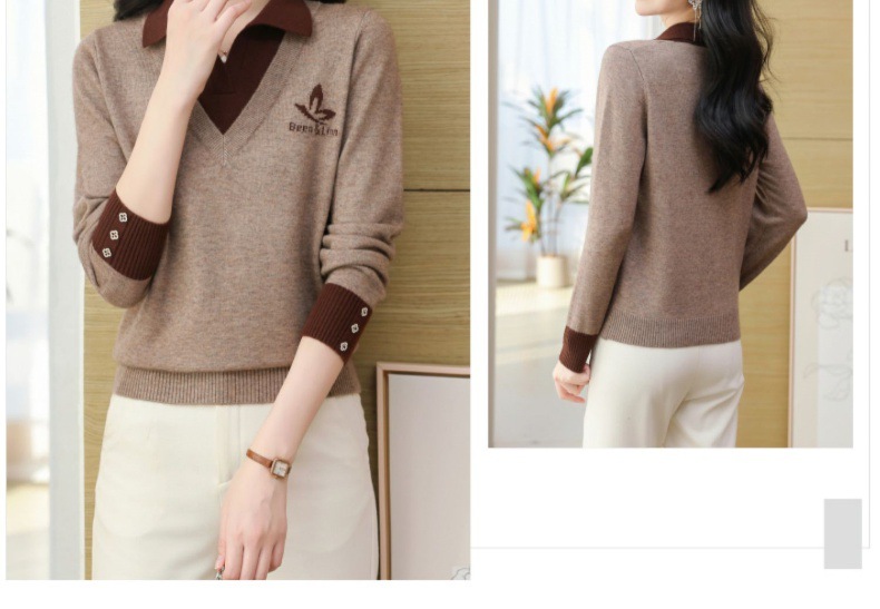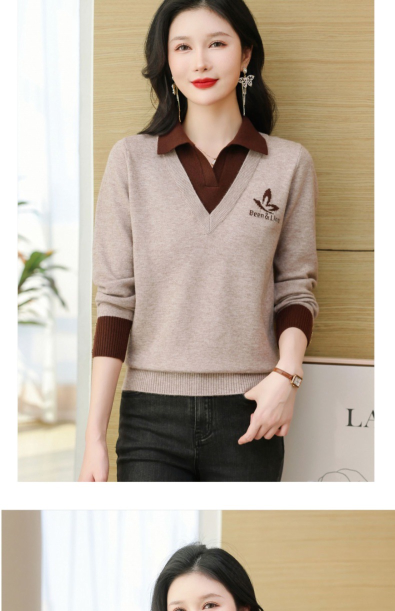 CC-101-51855假两件针织衫女春秋季毛衣2024年新款翻领长袖打底上衣设计感小众