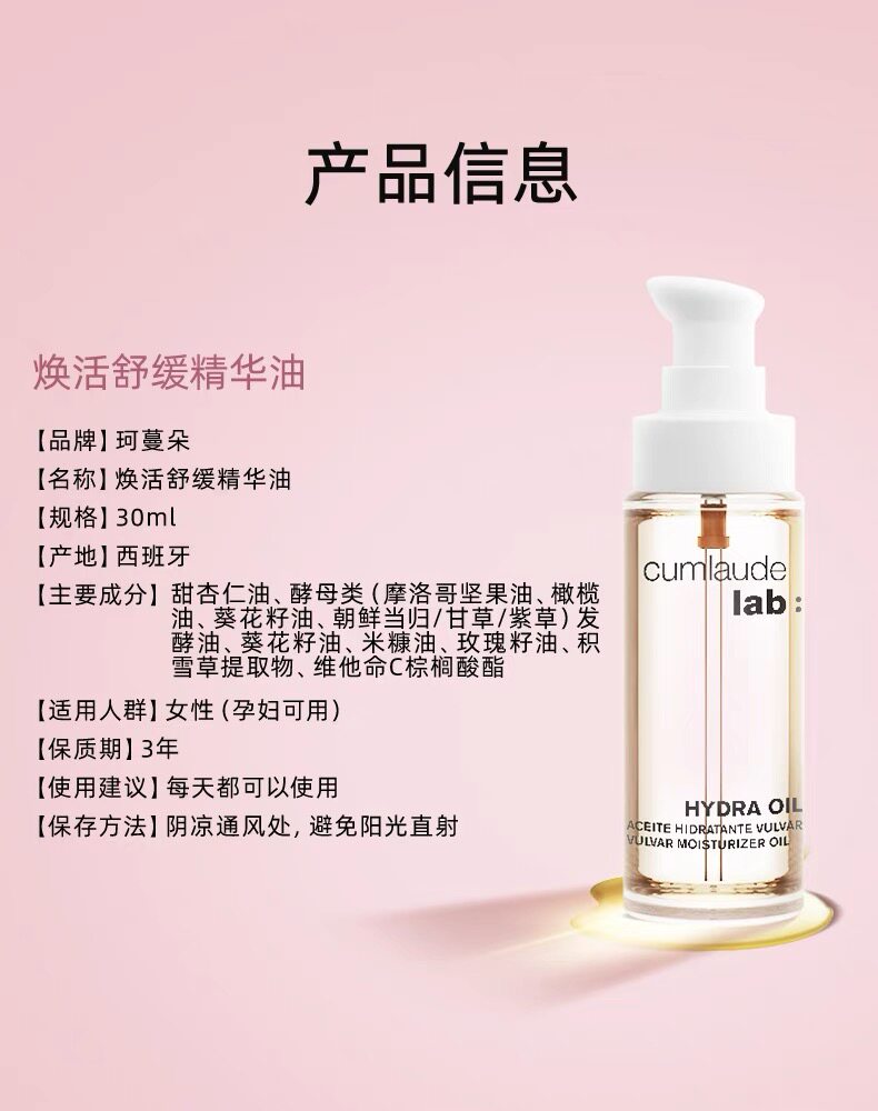 【99%天然植萃 柔嫩弹滑】Cumlaude珂蔓朵私密保湿精华油 30ml/50ml