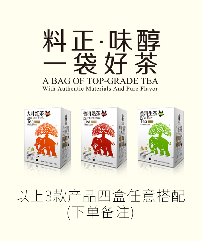品象袋泡茶普洱熟茶普洱生茶大叶红茶四盒装任意搭配(下单备注)