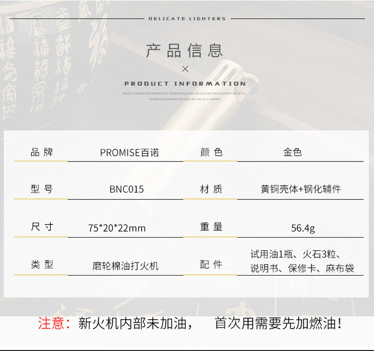 1. 打火机为新机,不含油,需要单独购买,请知悉!